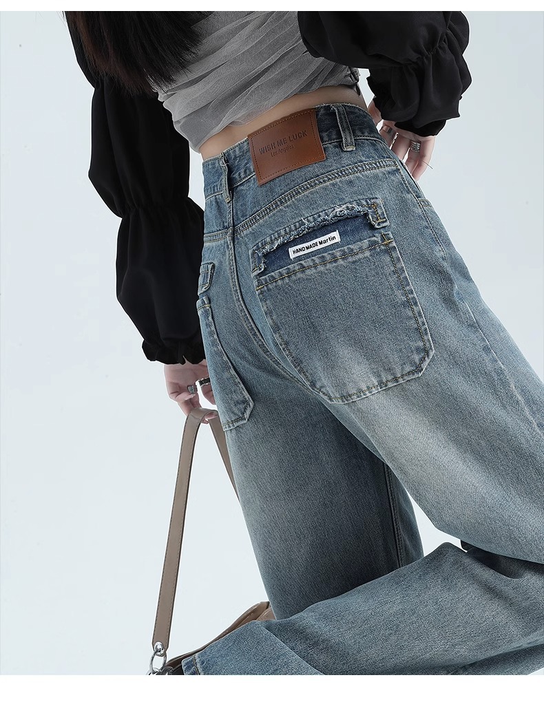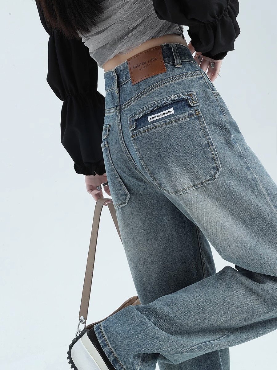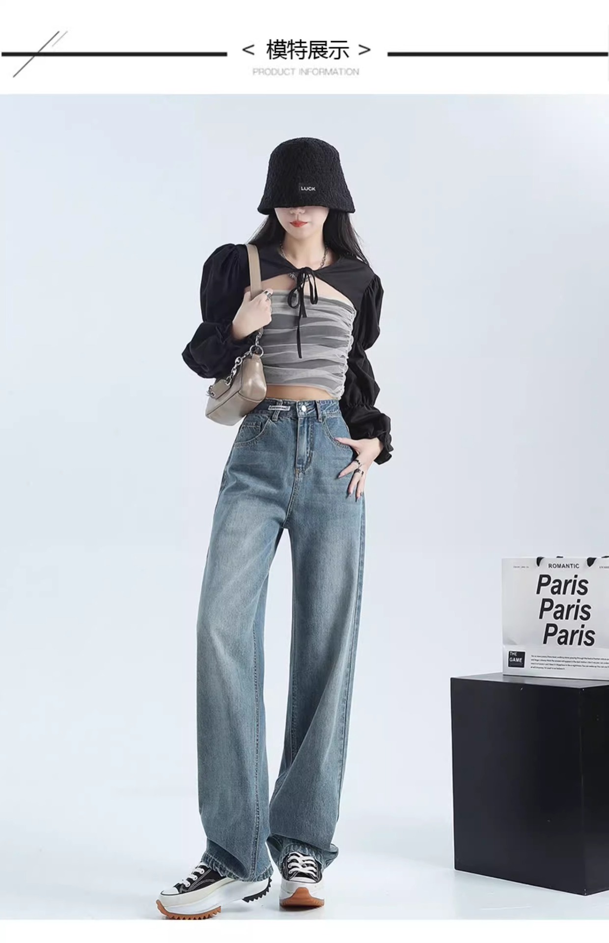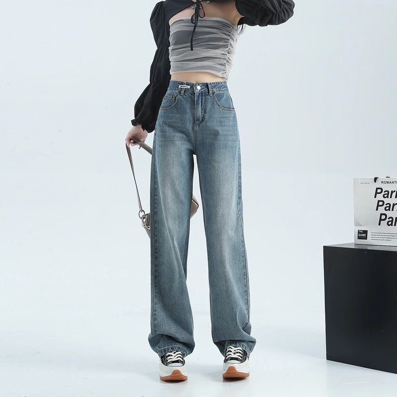 좁은 높은 허리 스트레이트 청바지 여성용 가을 배 모양의 바디 루즈 캐주얼 슬림 핏 넓은 다리 바지스토어 가기