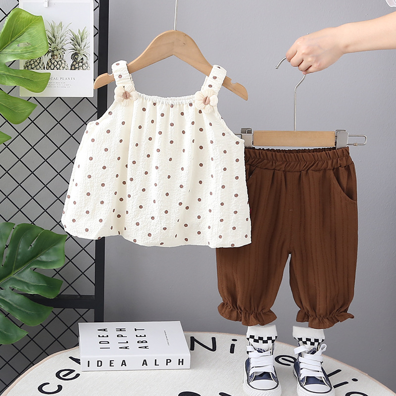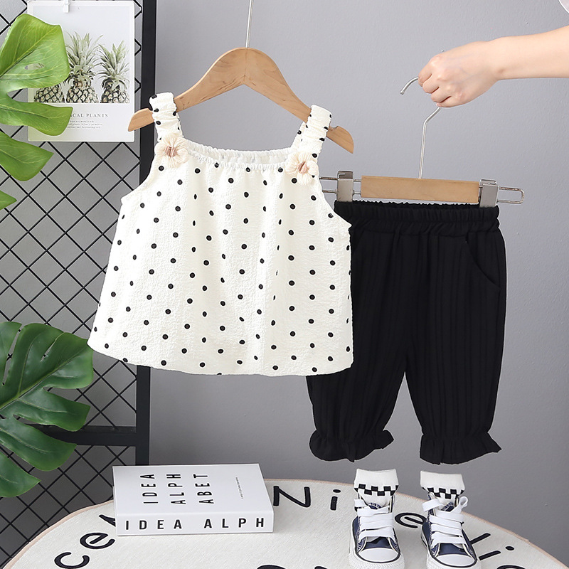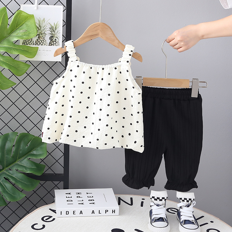 어린 소녀 세련된 작은 점 슬링 세트 2025 여름 새로운 아기 소녀 유행 여름 옷 1 어린이 의류스토어 가기