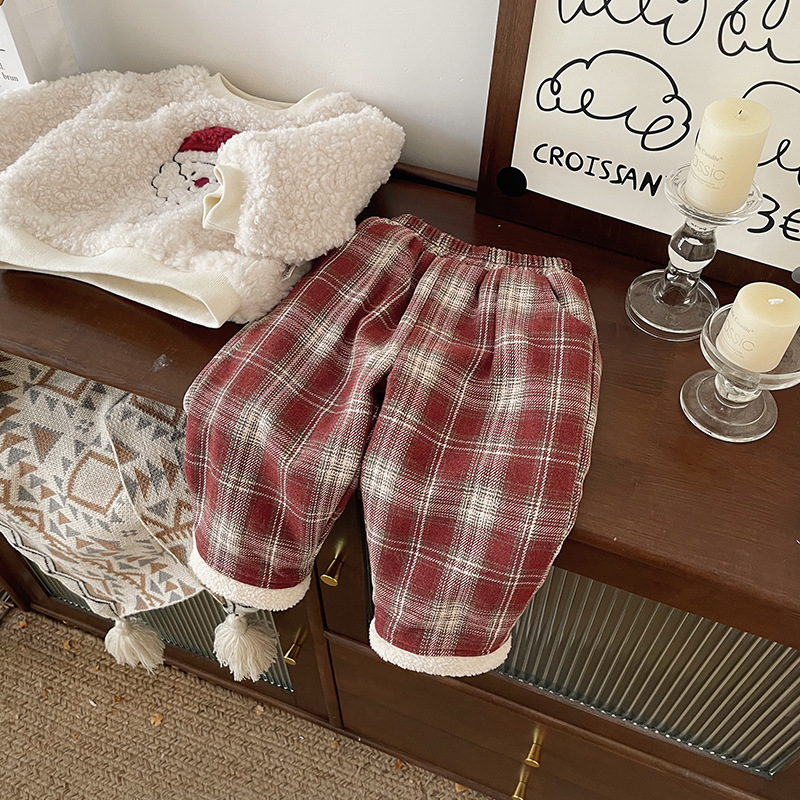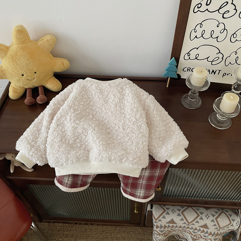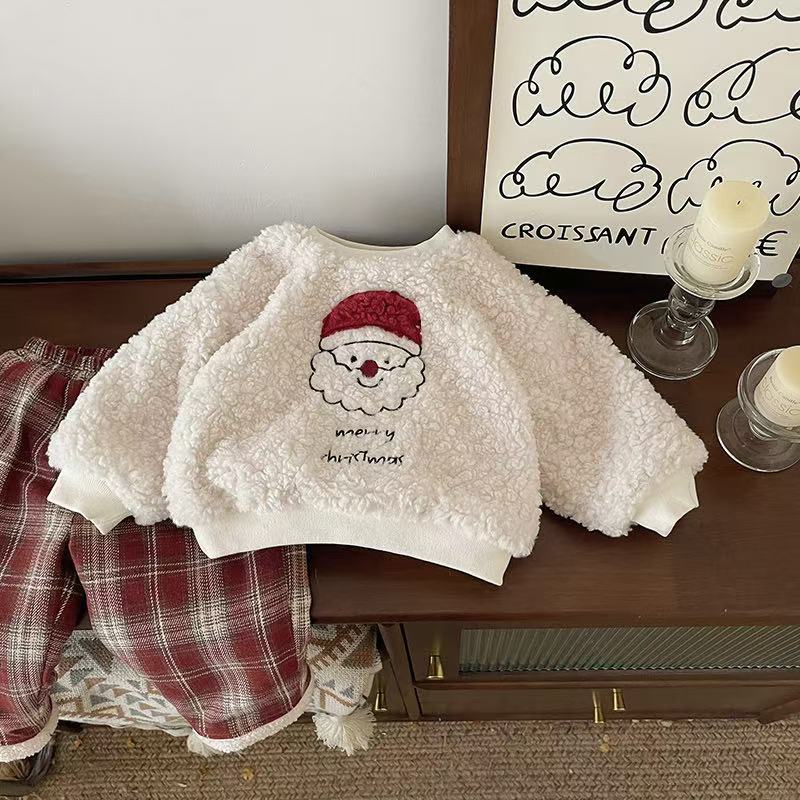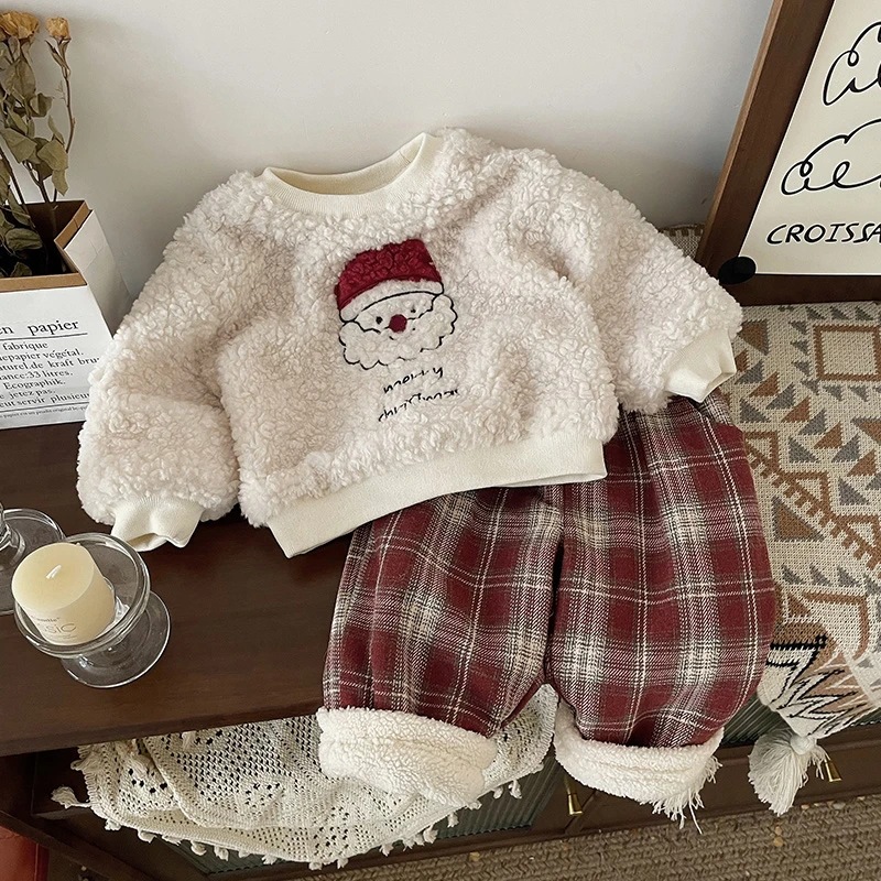 소녀 크리스마스와 푹신한 스웨터 2024 가을과 겨울 새로운 어린이 두꺼운 스웨터 아기 소녀의 겨울 따뜻한 세트