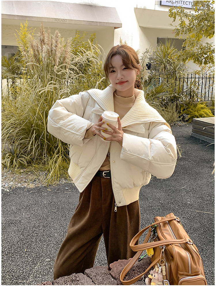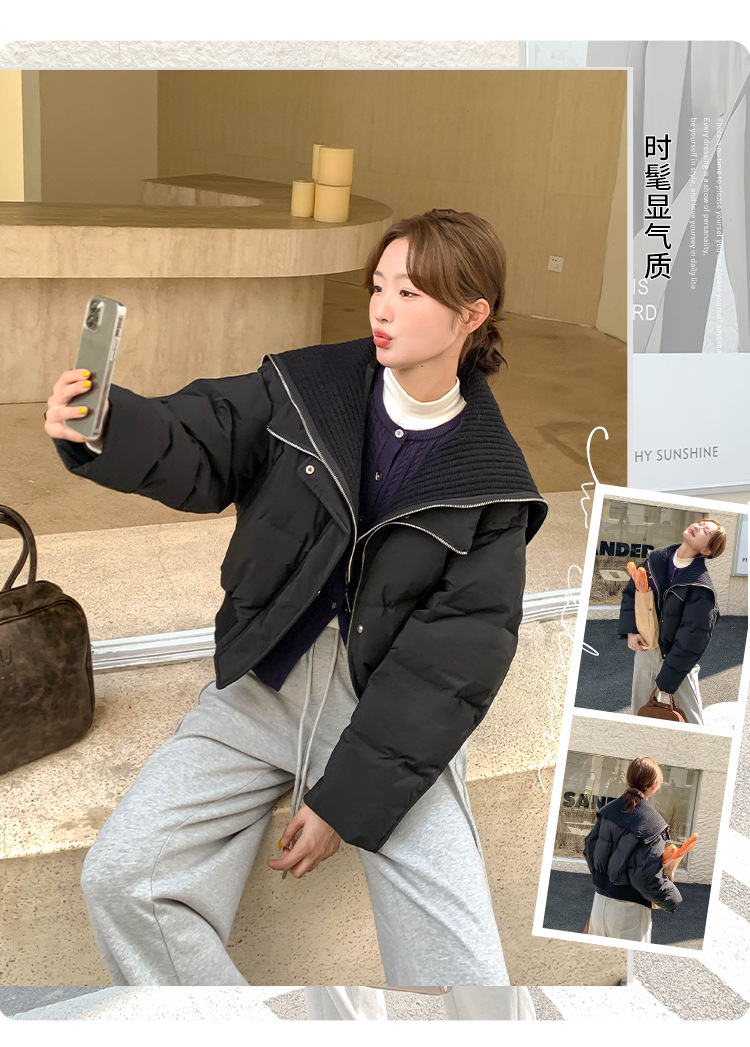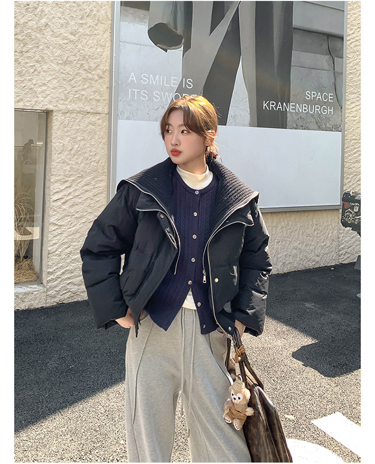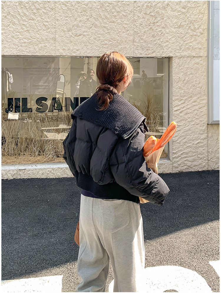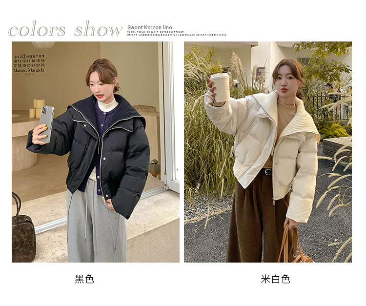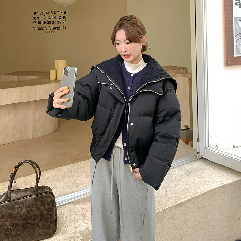 [이탈리아] Mengmei 2024 겨울 한국 스타일 캐주얼 2 색 니트 옷깃 코튼 패딩 옷 니트 옷깃 짧은스토어 가기