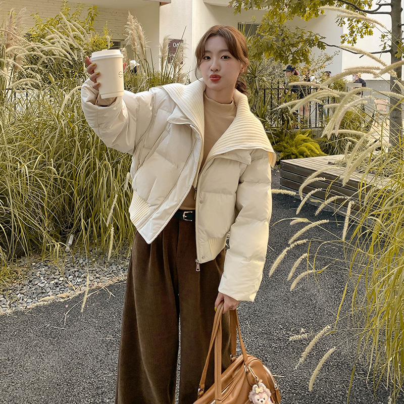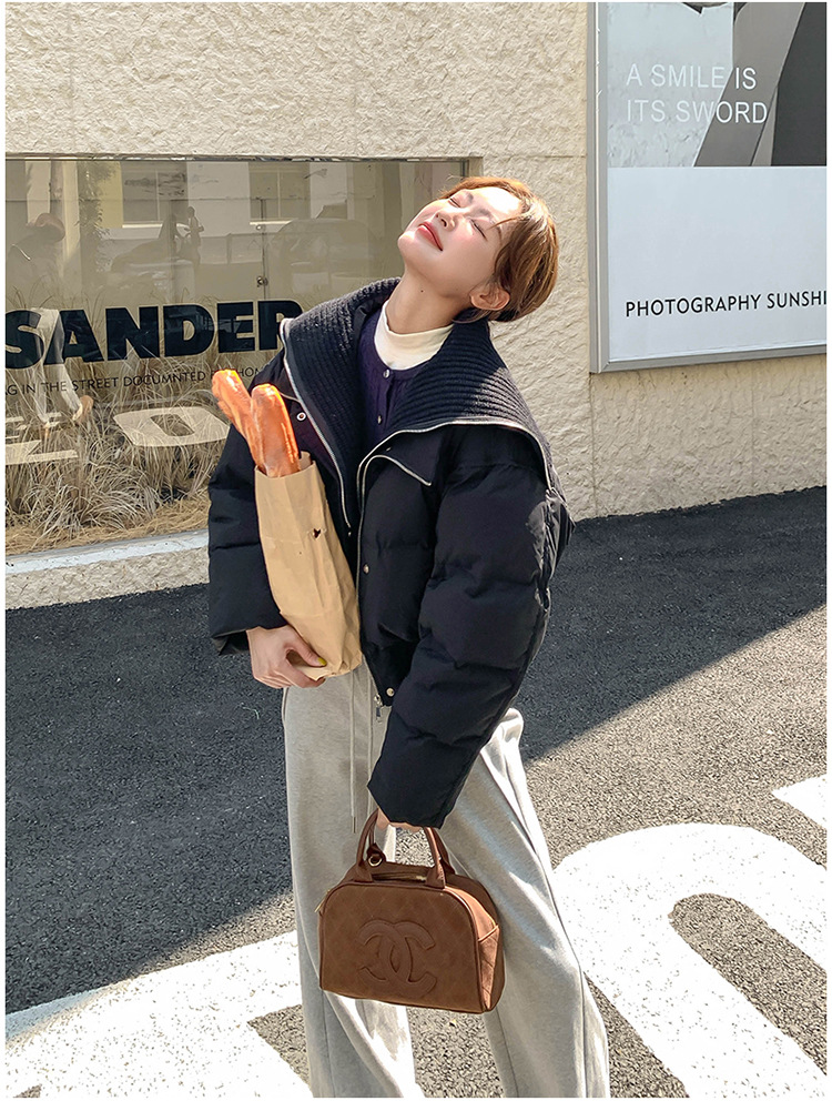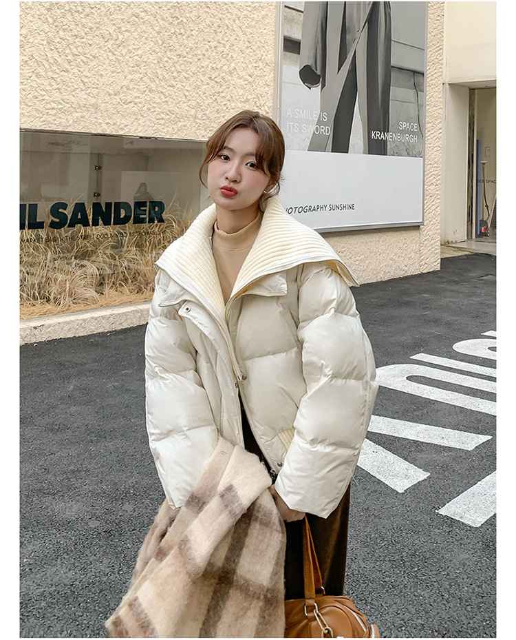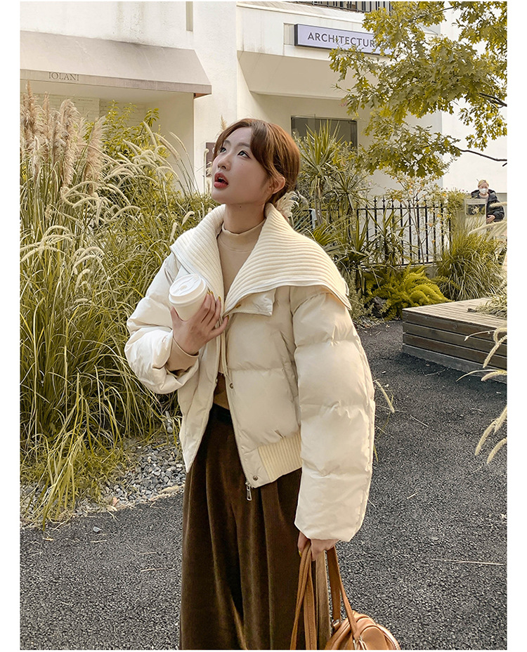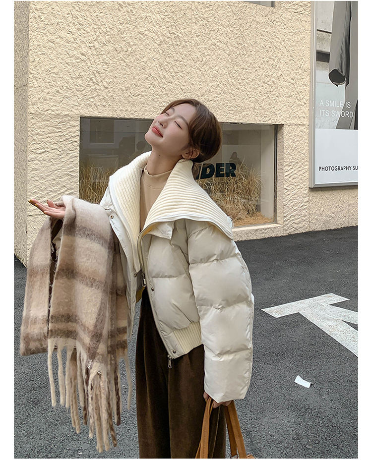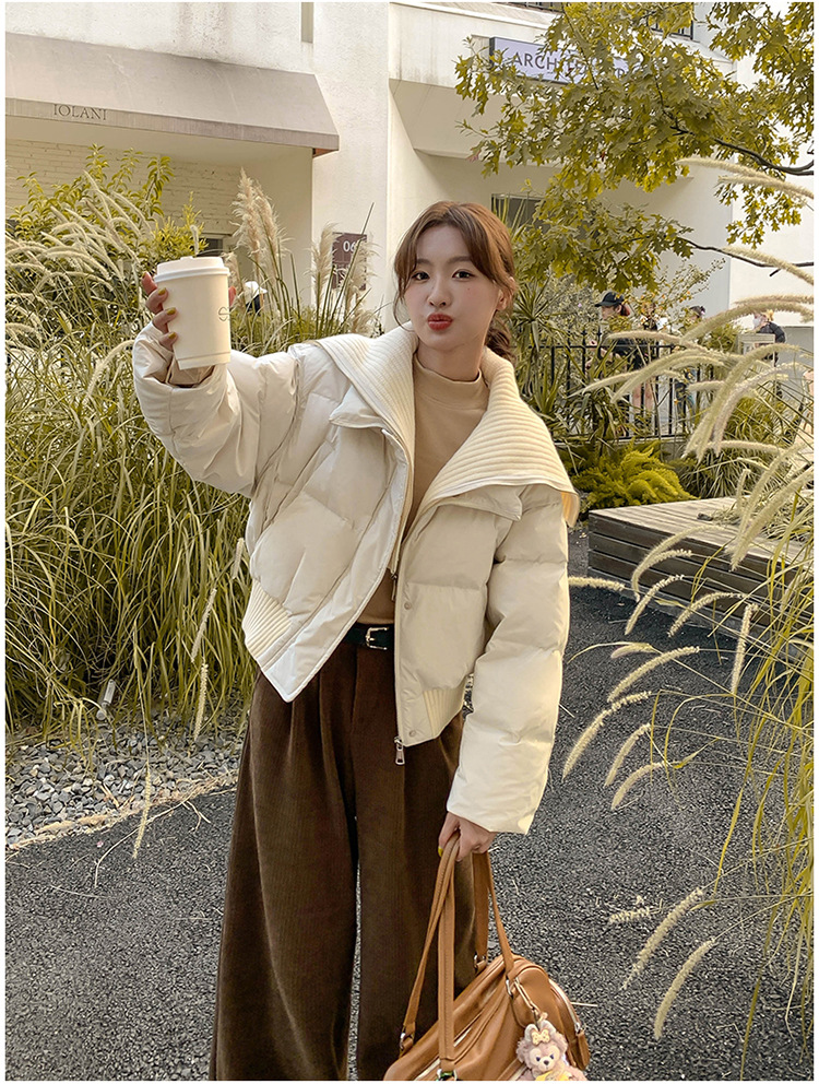[이탈리아] Mengmei 2024 겨울 한국 스타일 캐주얼 2 색 니트 옷깃 코튼 패딩 옷 니트 옷깃 짧은스토어 가기