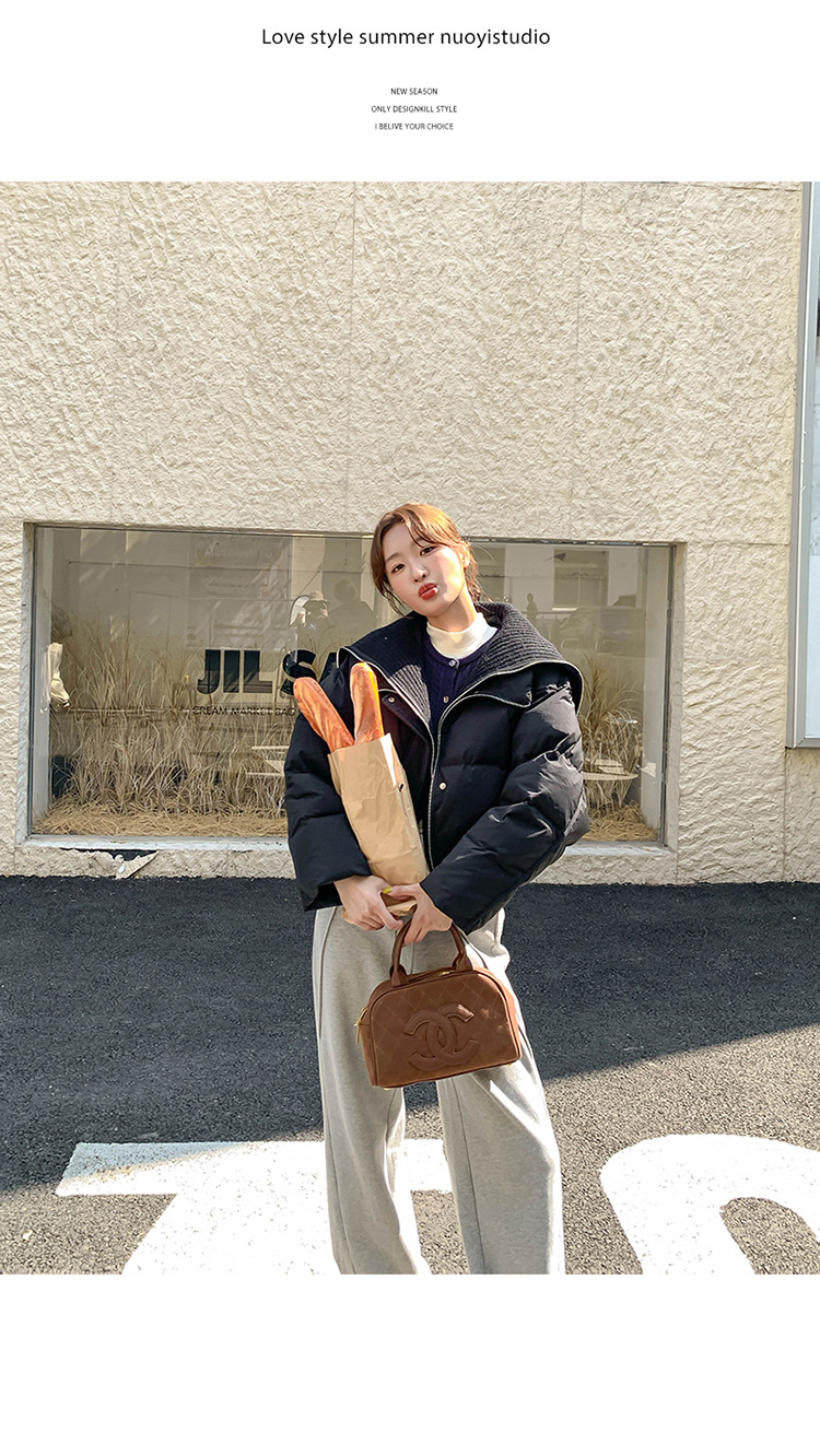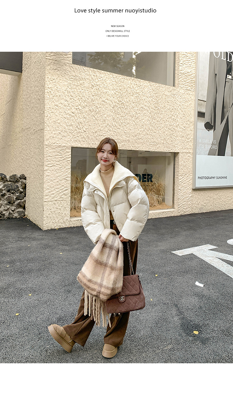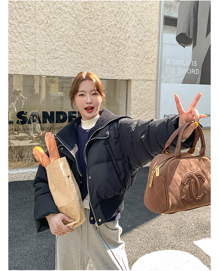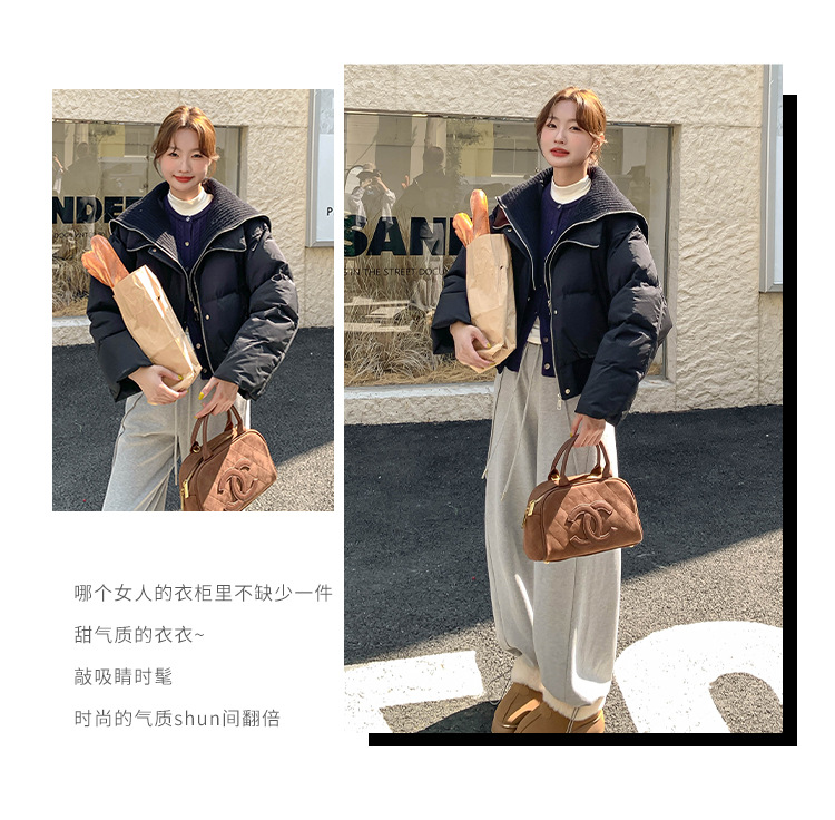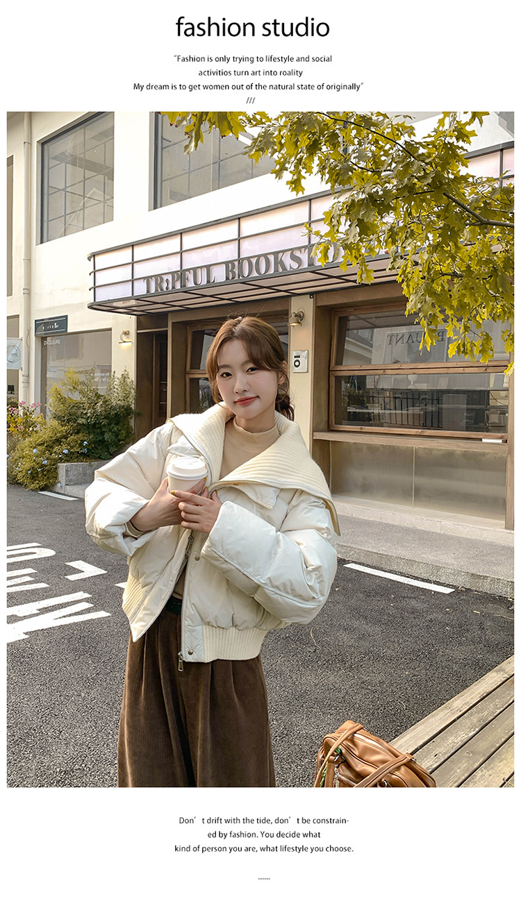 [이탈리아] Mengmei 2024 겨울 한국 스타일 캐주얼 2 색 니트 옷깃 코튼 패딩 옷 니트 옷깃 짧은스토어 가기