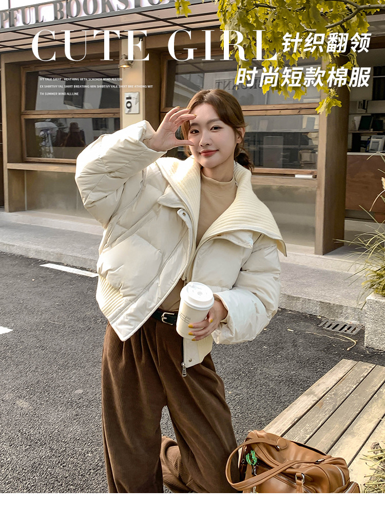 [이탈리아] Mengmei 2024 겨울 한국 스타일 캐주얼 2 색 니트 옷깃 코튼 패딩 옷 니트 옷깃 짧은