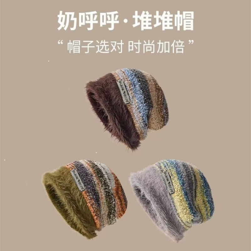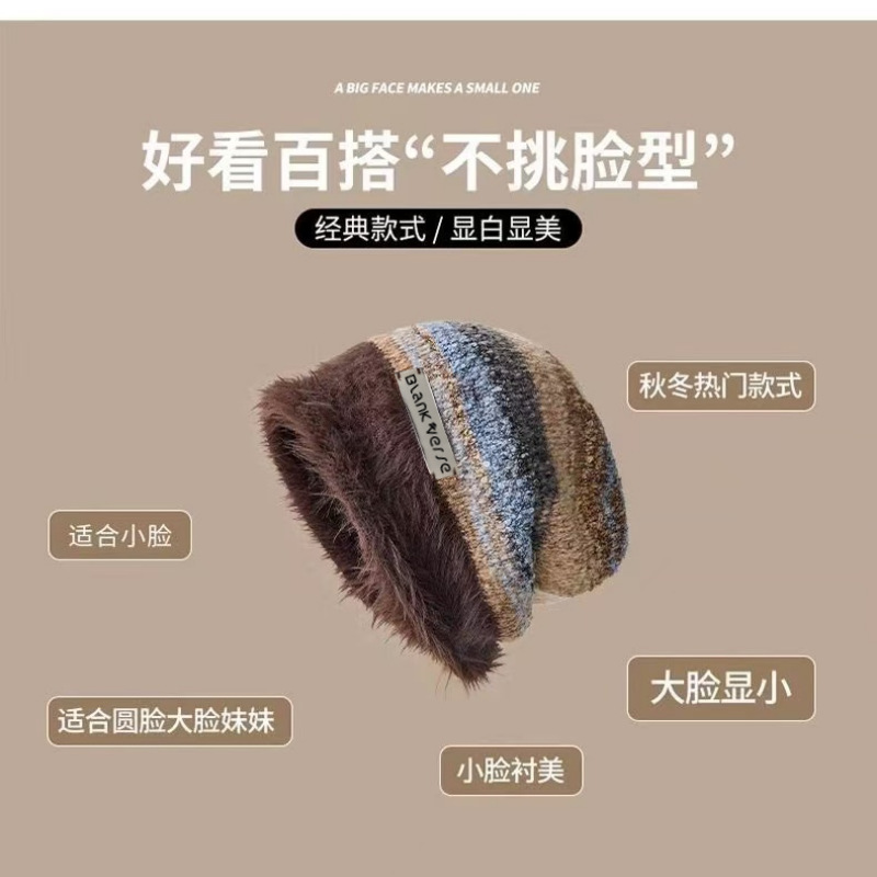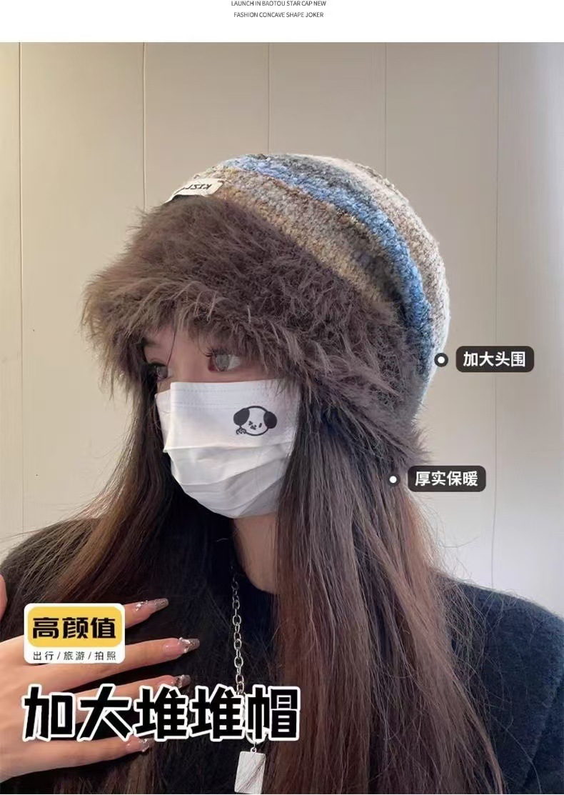 가을과 겨울 마일 라드 힙 모자 어린이 큰 머리 와이 얼굴 작은 바오 터우 니트 차가운 모자 플러시 따뜻한 울 모자스토어 가기