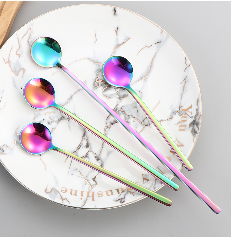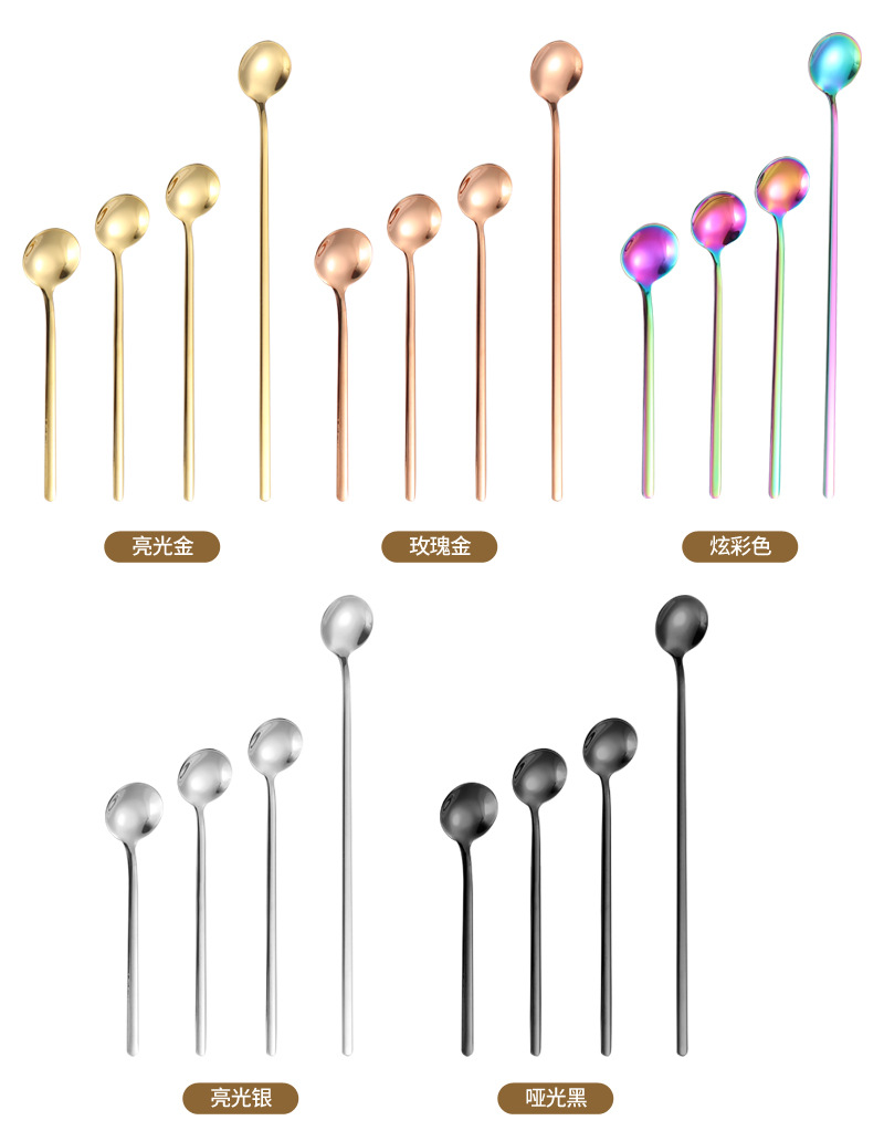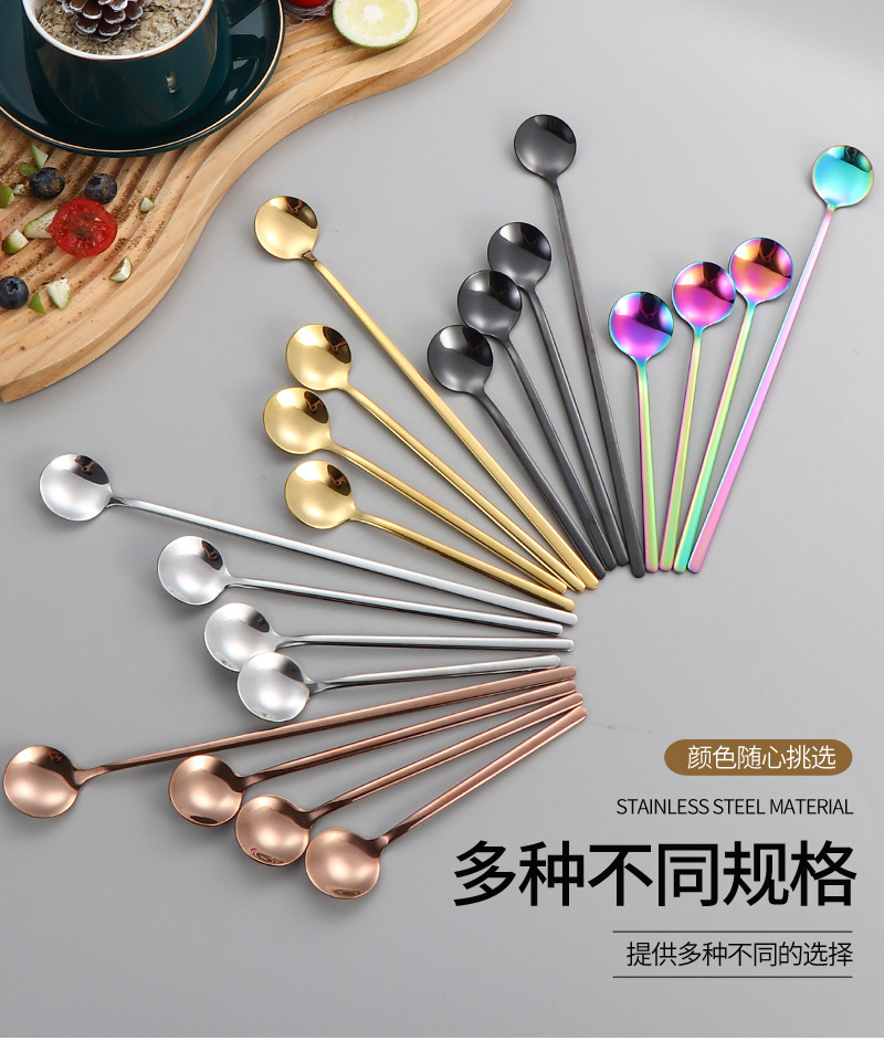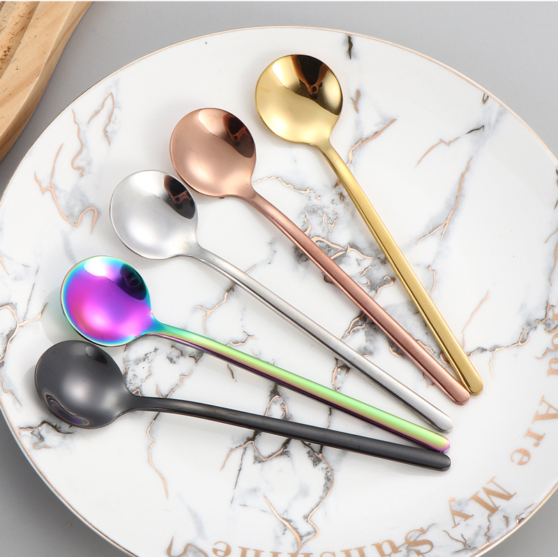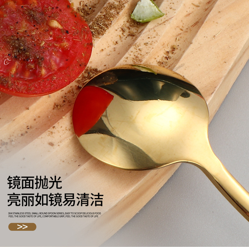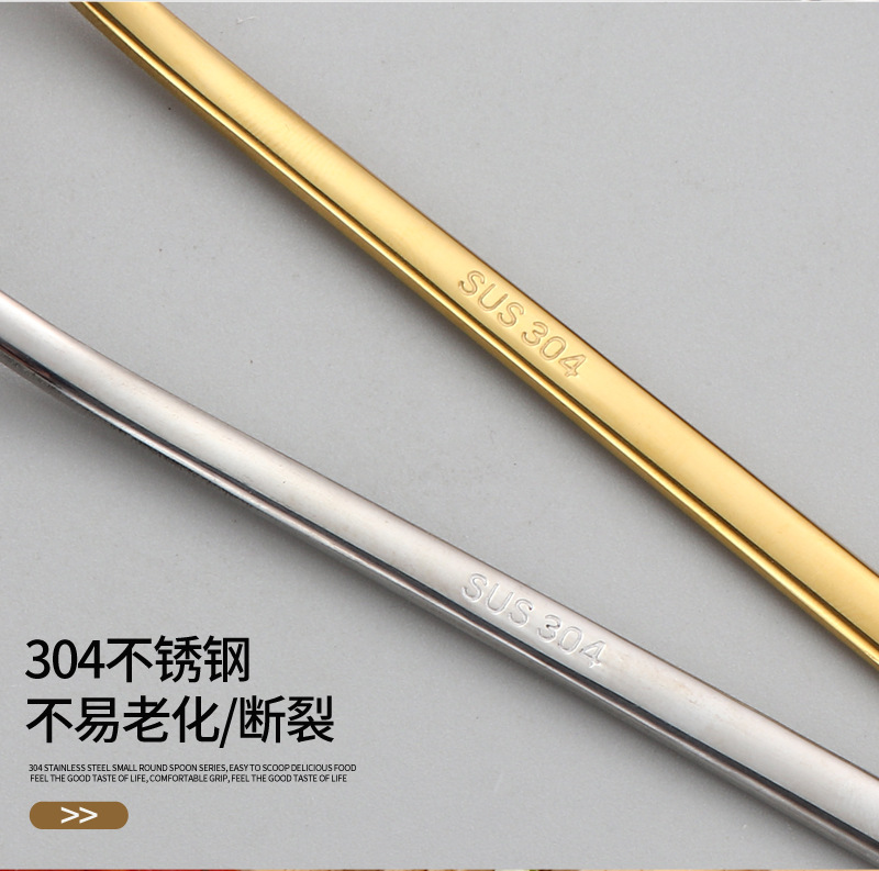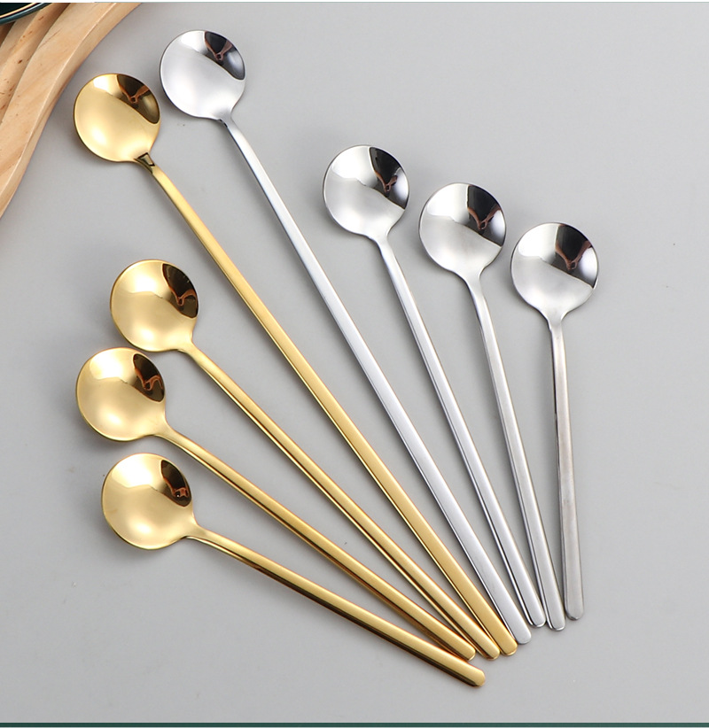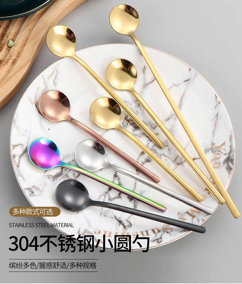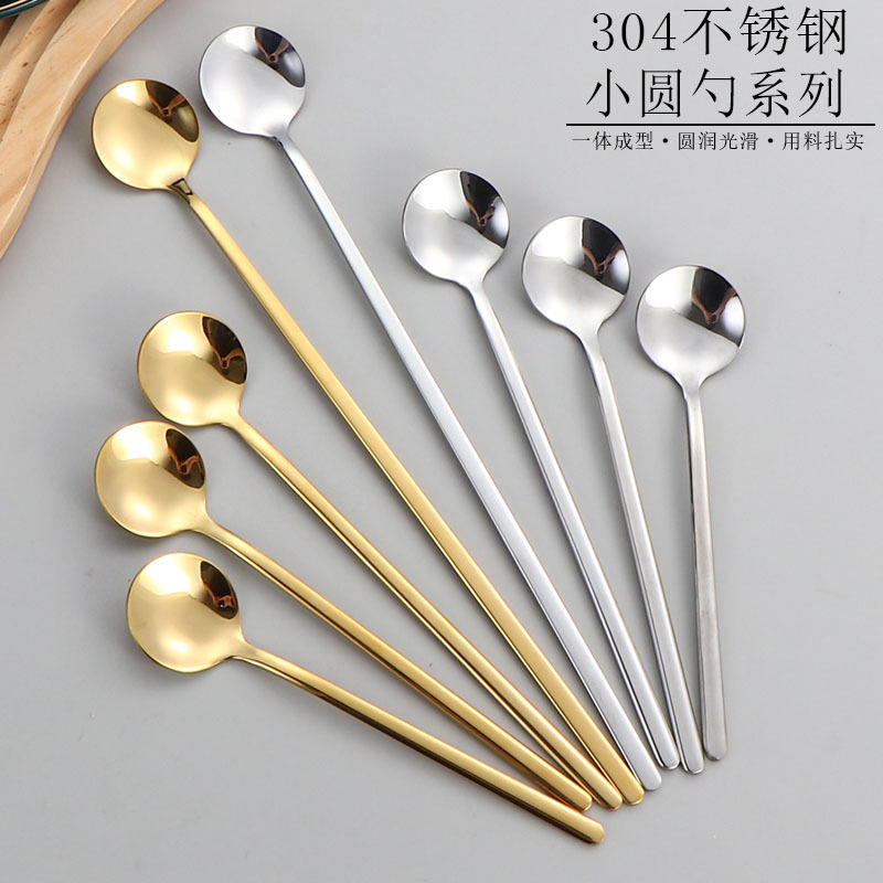 304 스테인리스 숟가락 가정용 긴 손잡이 황금 둥근 숟가락 커피 혼합 숟가락 냄비 조미료 숟가락 디저트 숟가락 도매