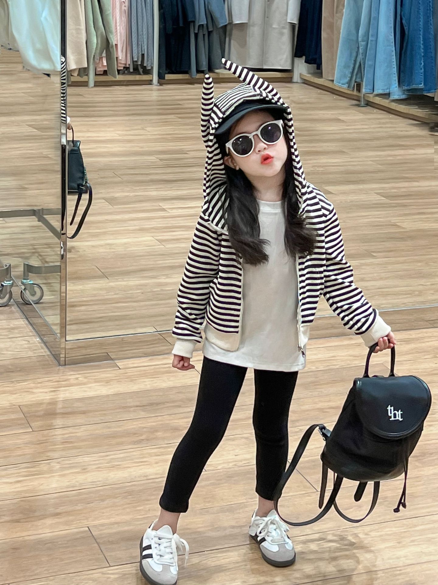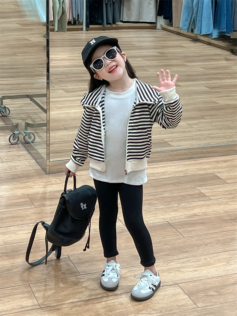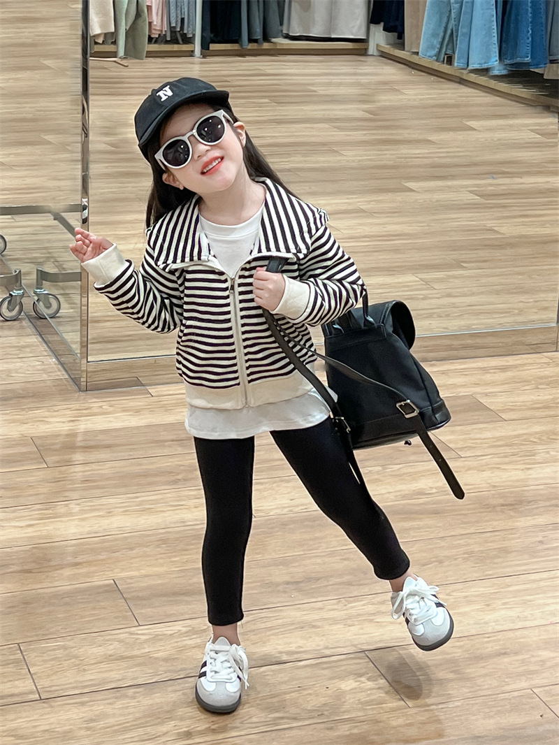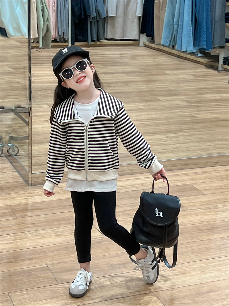 한국 스타일 아동복 코트 2024 가을 소녀 데비루치 스트라이프 쇼트 스웨터 슬림핏 핫 걸 카디건 코트스토어 가기