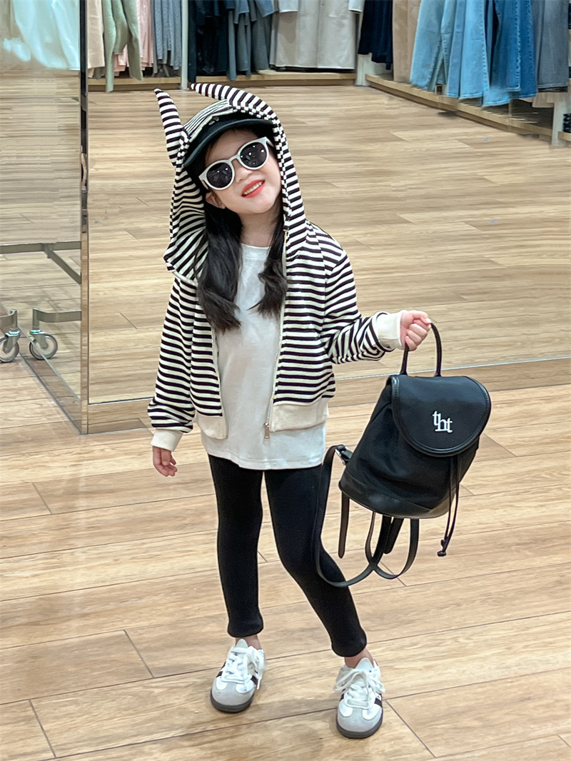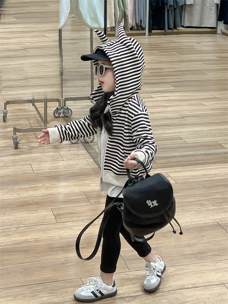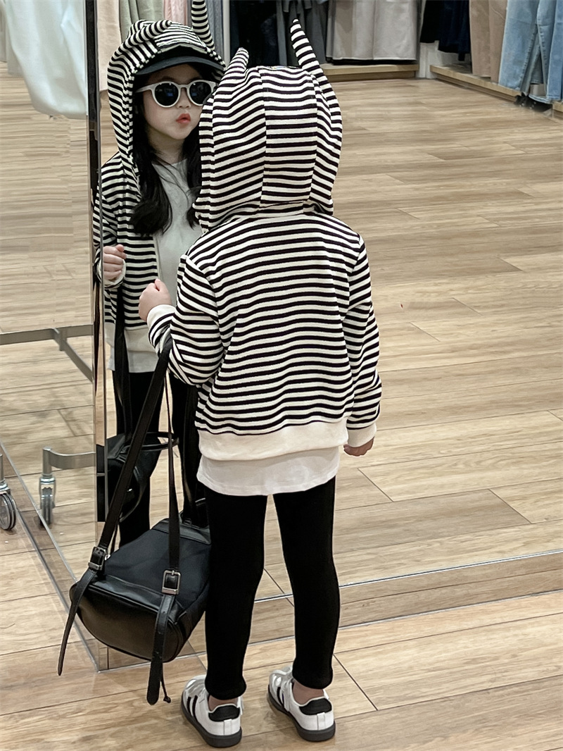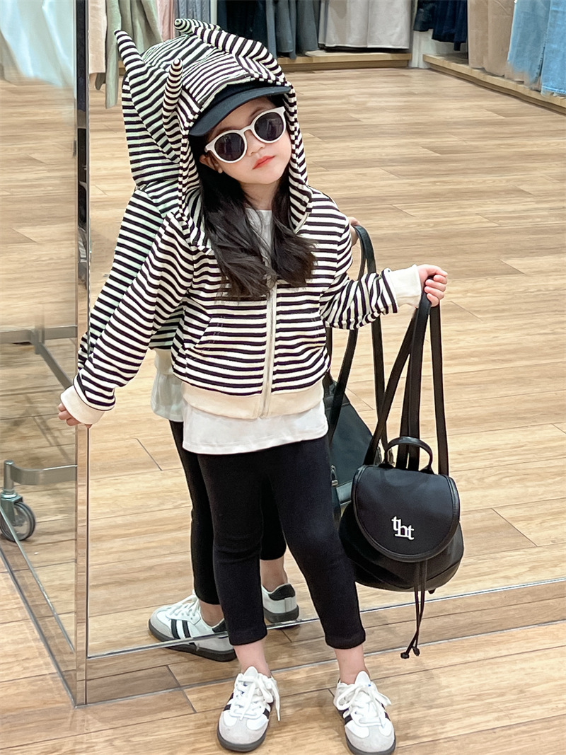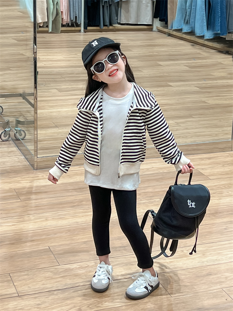 한국 스타일 아동복 코트 2024 가을 소녀 데비루치 스트라이프 쇼트 스웨터 슬림핏 핫 걸 카디건 코트스토어 가기