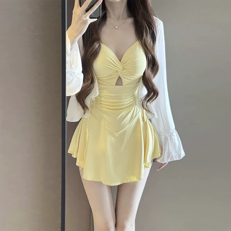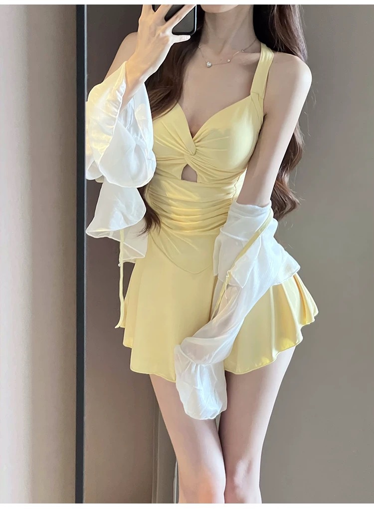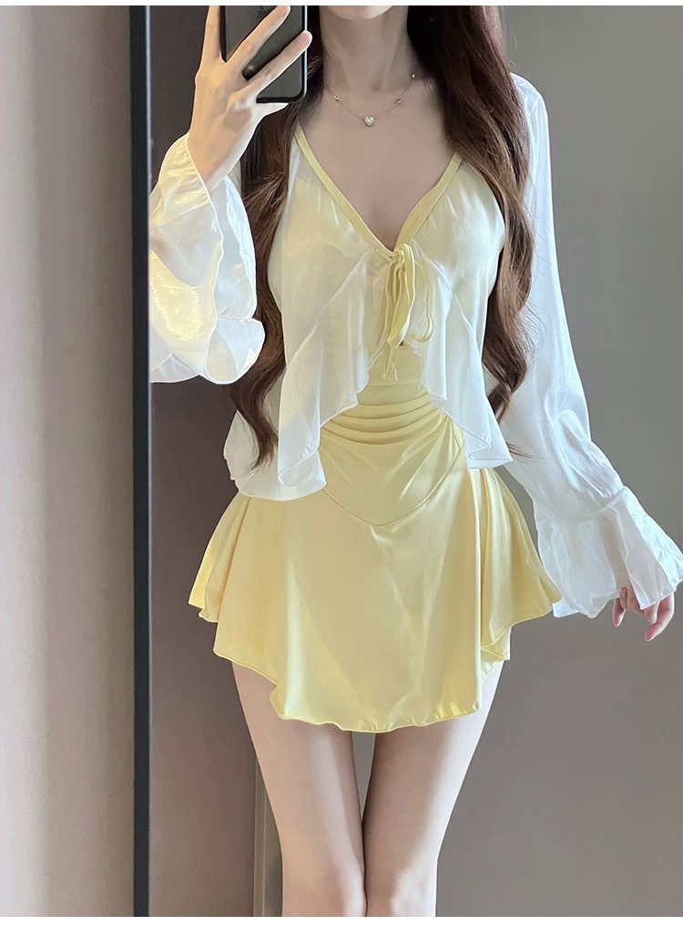 원피스 수영복 새로운 스타일 원피스 스커트 투피스 세트 보수적 인 고기로 덮인 슬리밍 뚱뚱한 소녀 학생 플랫 앵글 휴가