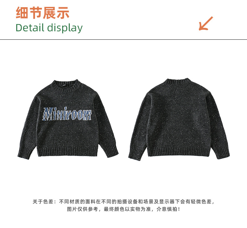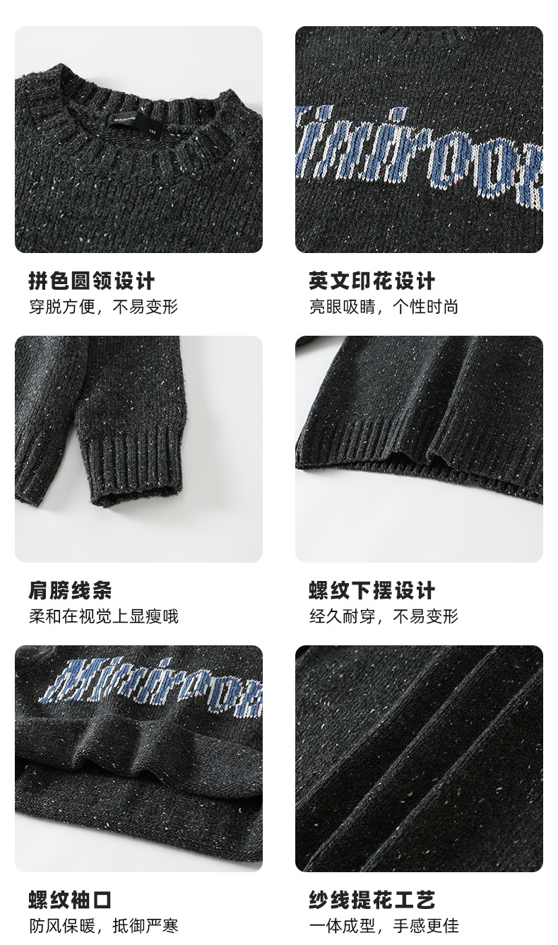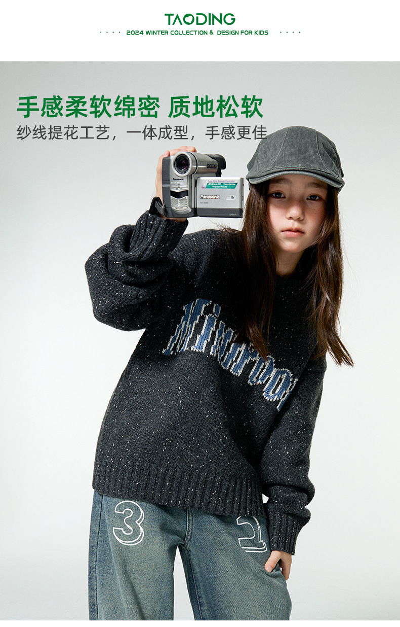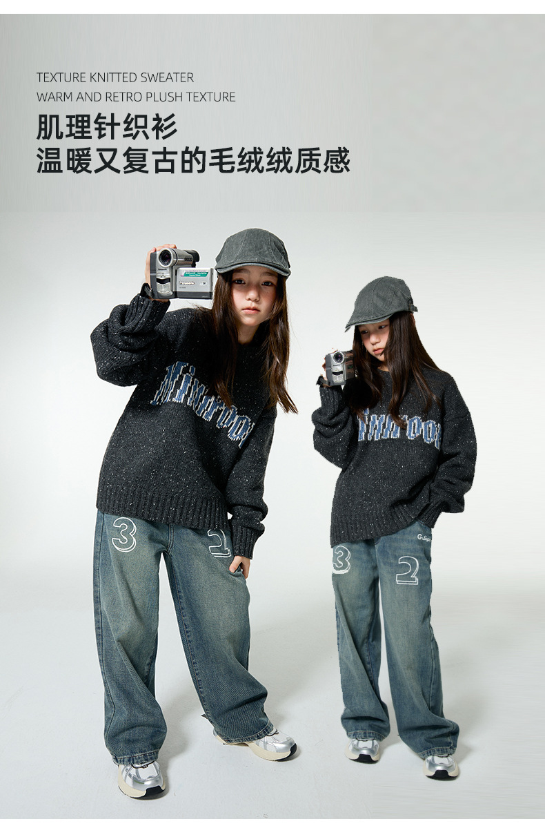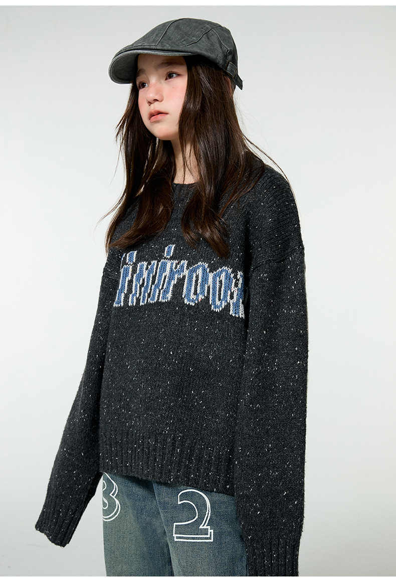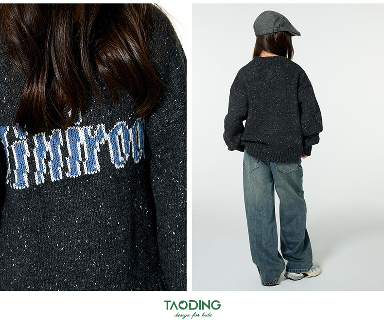 Amoy 소녀 가을과 겨울 새로운 미국 복고풍 자카드 편지 스웨터 큰 아이들을위한 따뜻한 울 스웨터