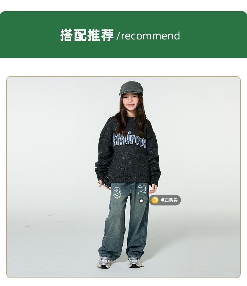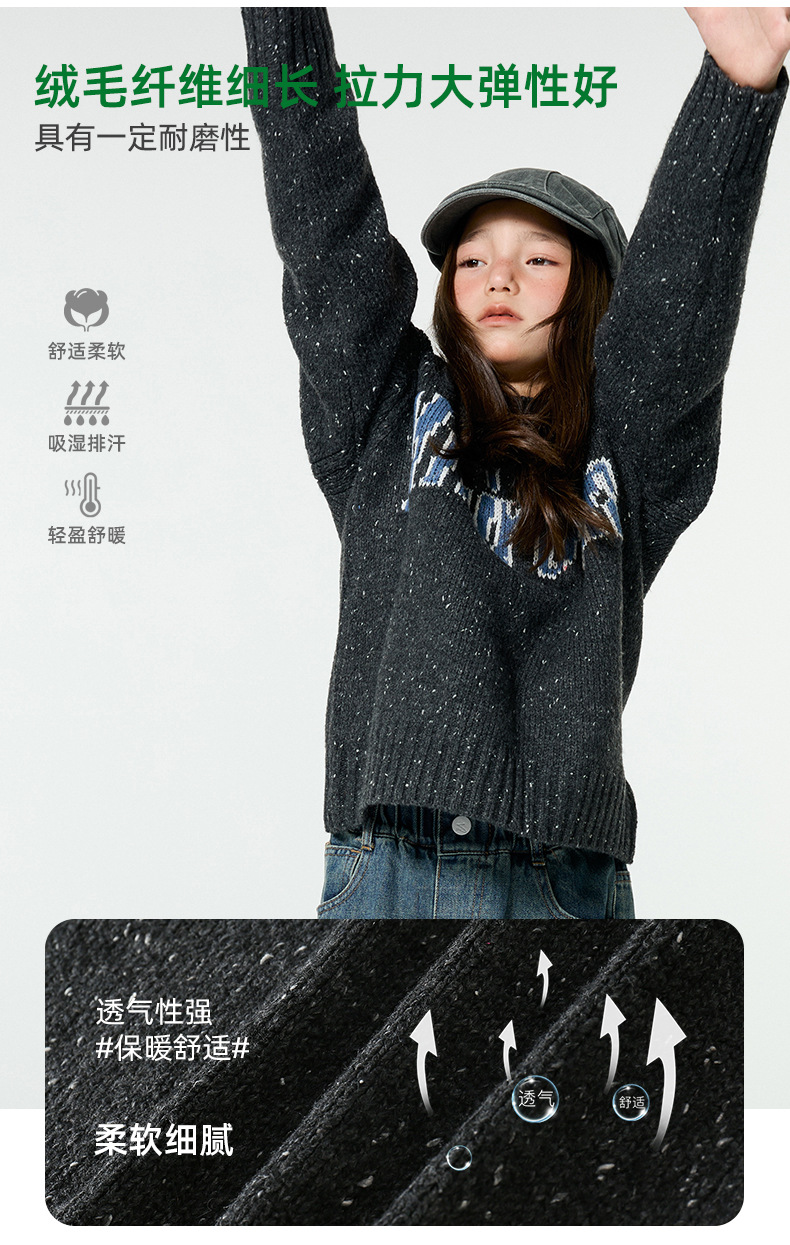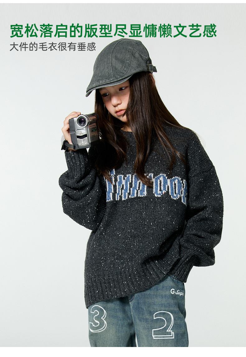 Amoy 소녀 가을과 겨울 새로운 미국 복고풍 자카드 편지 스웨터 큰 아이들을위한 따뜻한 울 스웨터스토어 가기