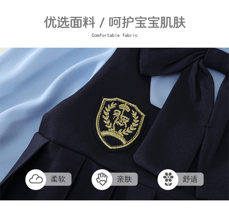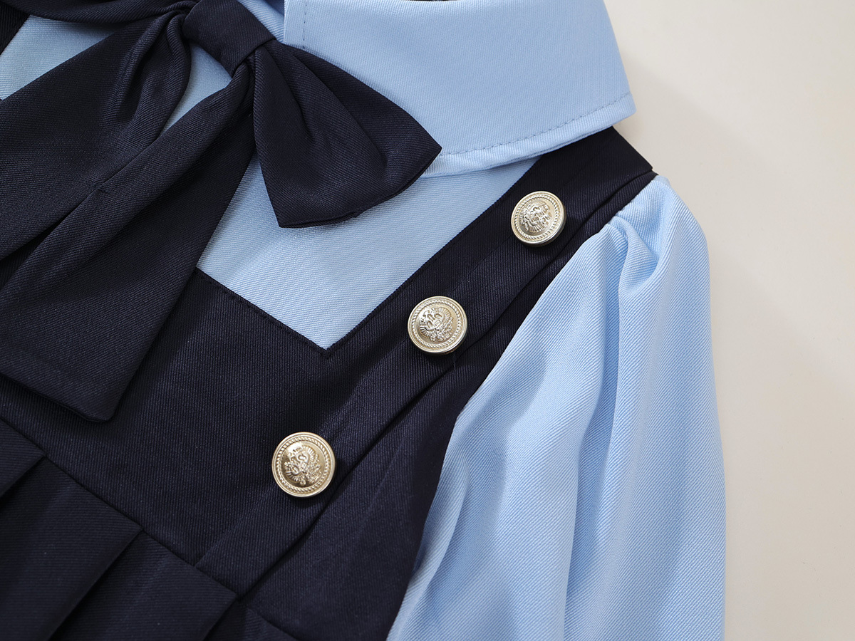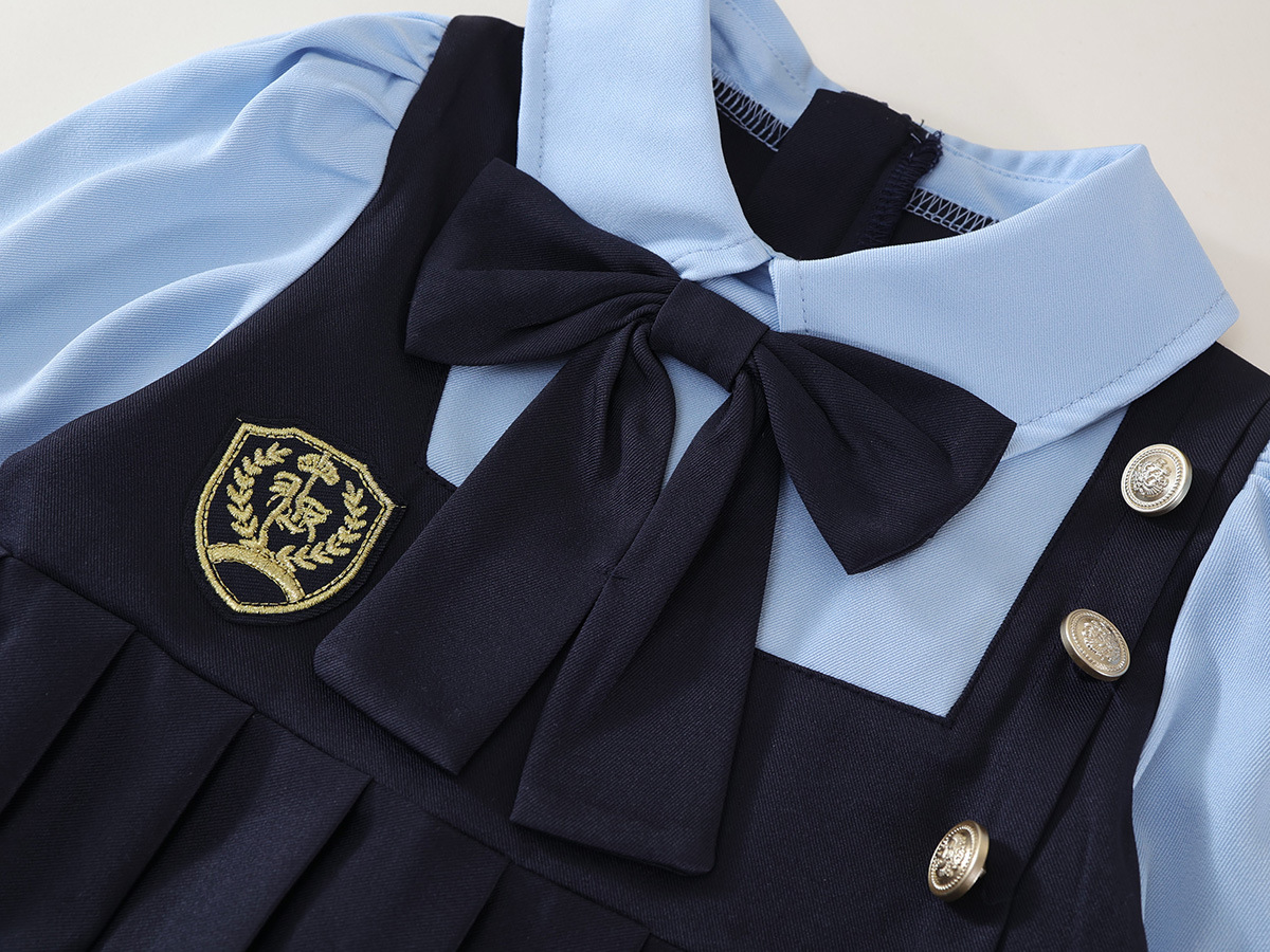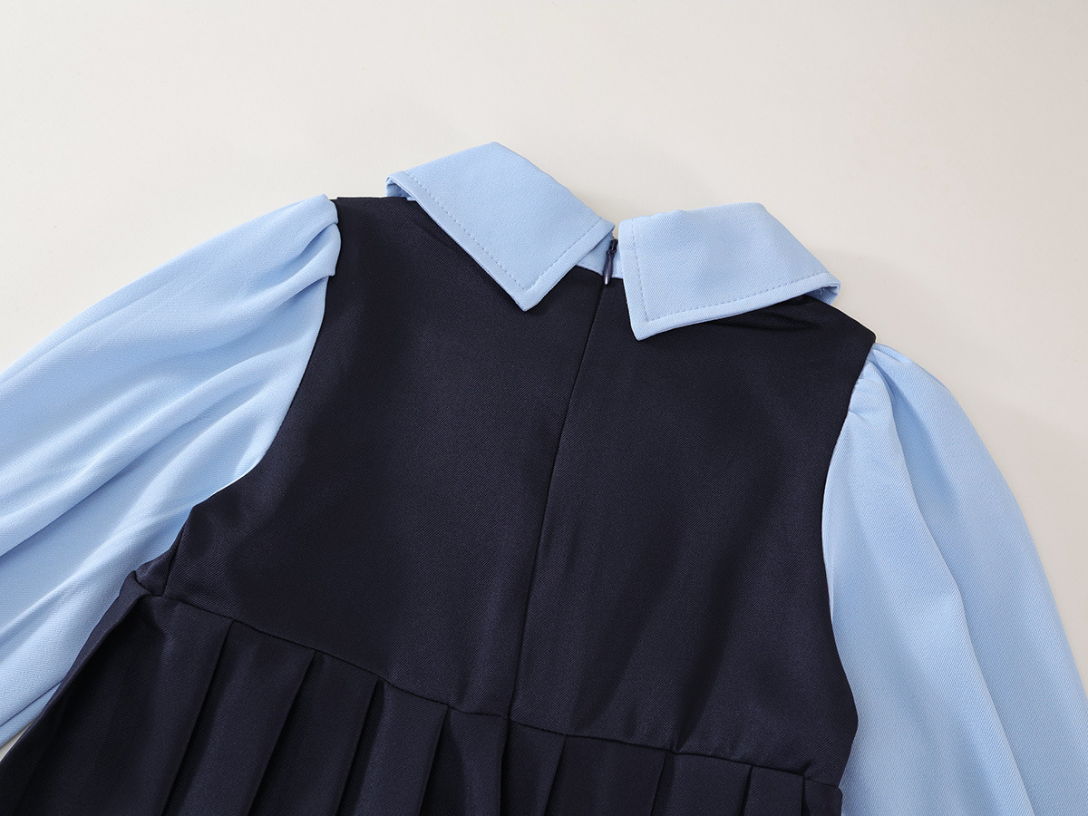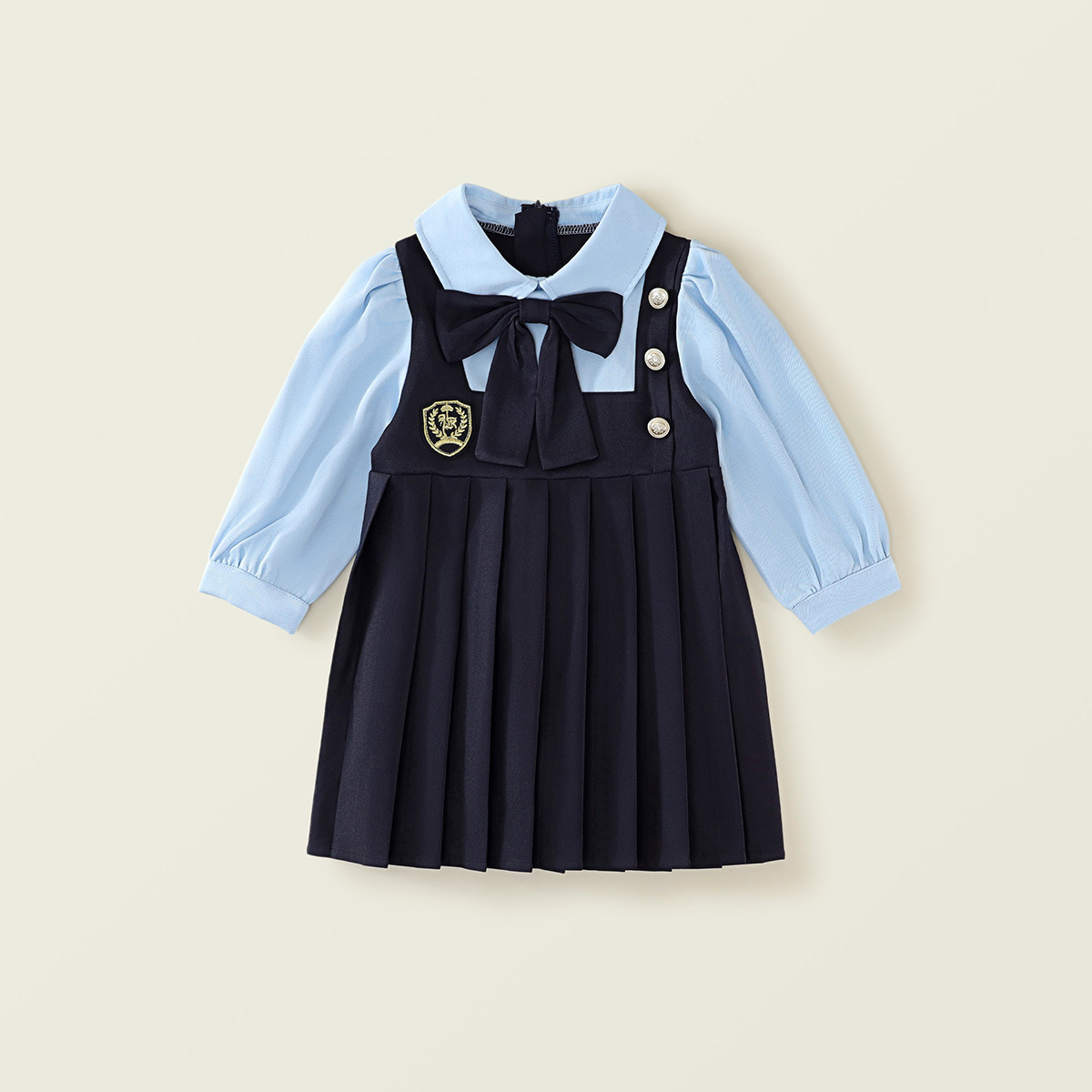 여자 대학 스타일 가짜 투피스 긴팔 드레스 2025 가을 새로운 어린이 한국 스타일 보우 플리츠 스커트