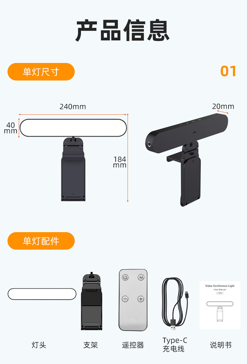 LED 조정 가능한 컴퓨터 모니터 화면 스트립 채우기 조명 사무실 학습 비디오 셀프 타이머 아름다움 빛 국경