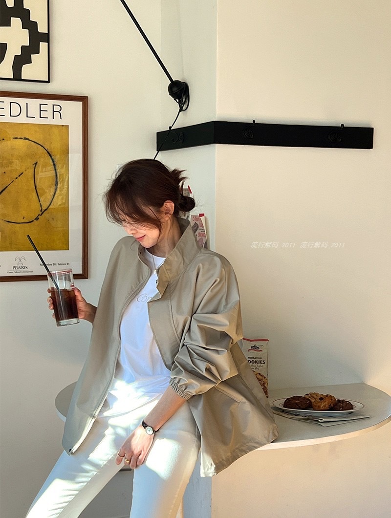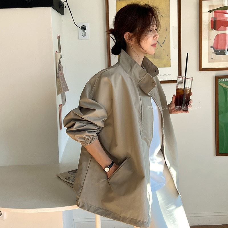 2024 새로운 가을 새 한국 선스크린 에어컨 셔츠 올매치 얇은 캐주얼 느슨한 재킷 코트 여성용 긴 소매 코트스토어 가기