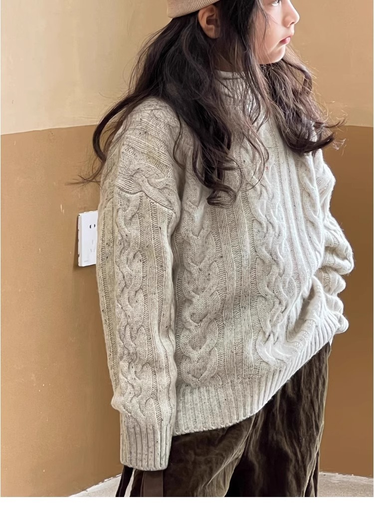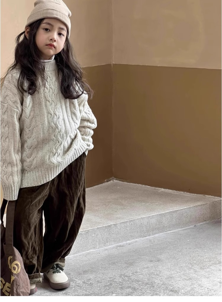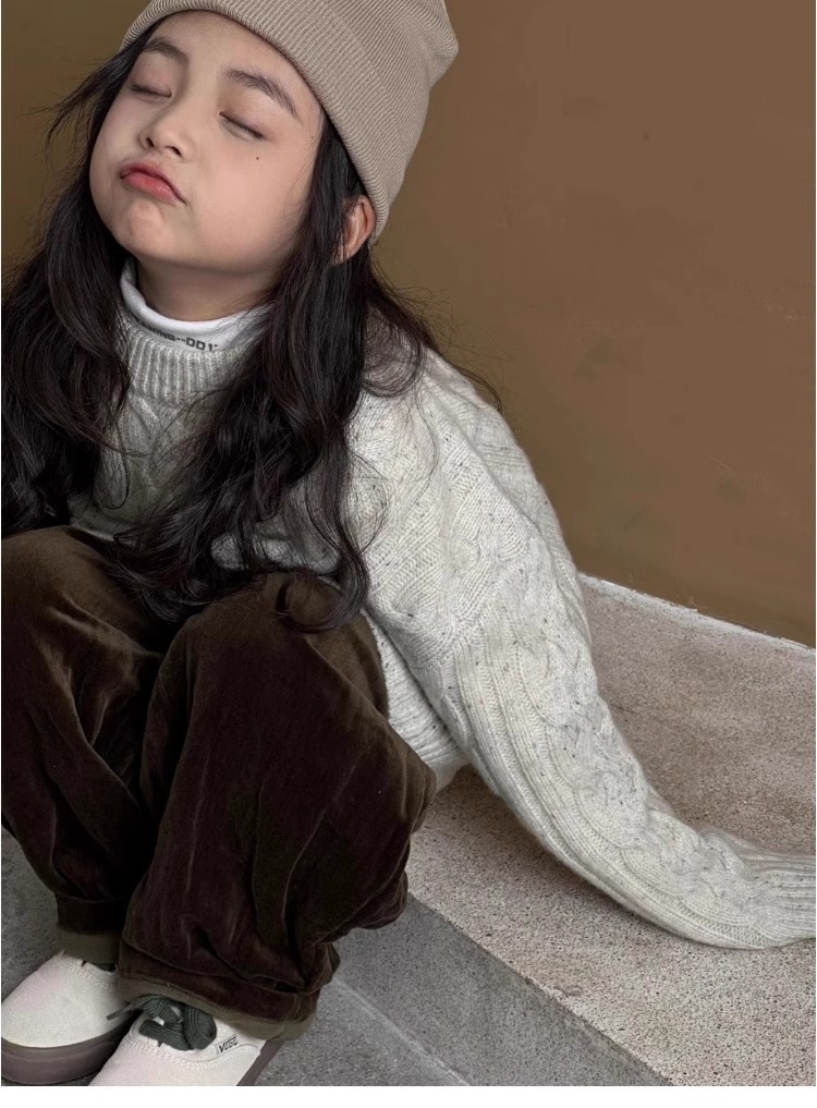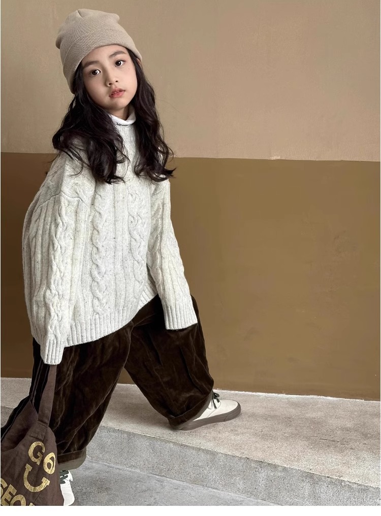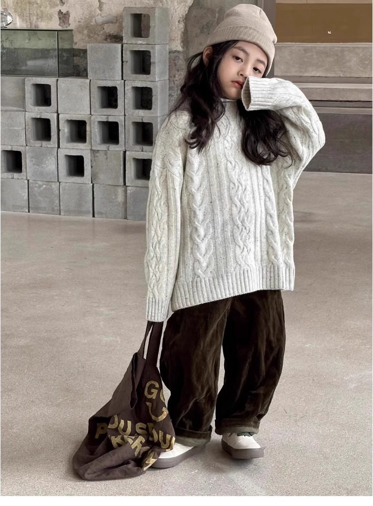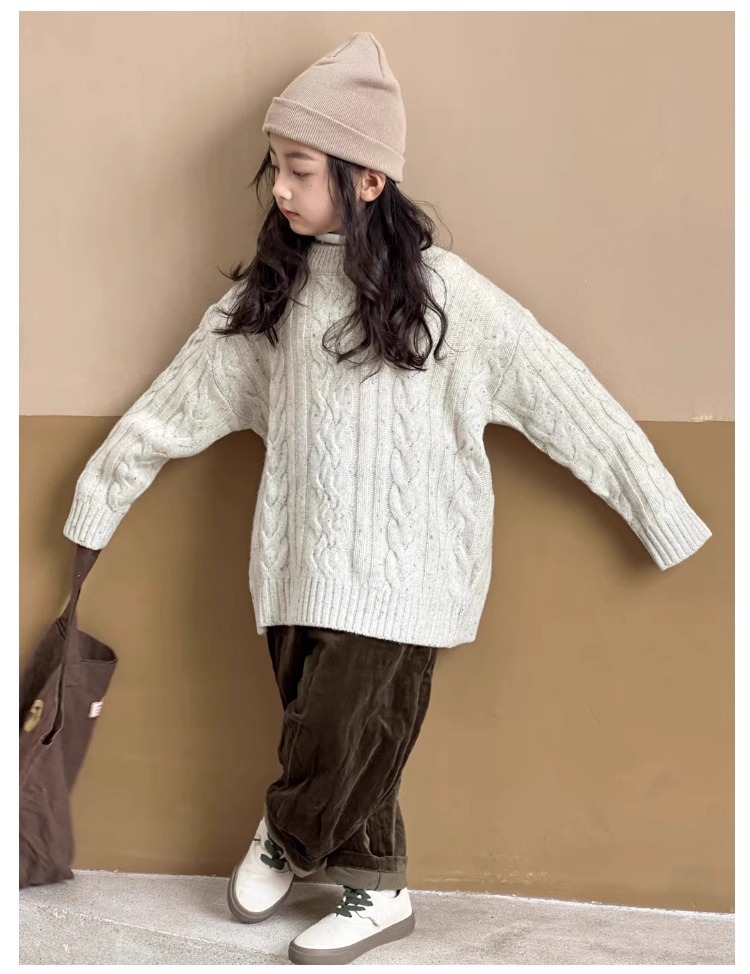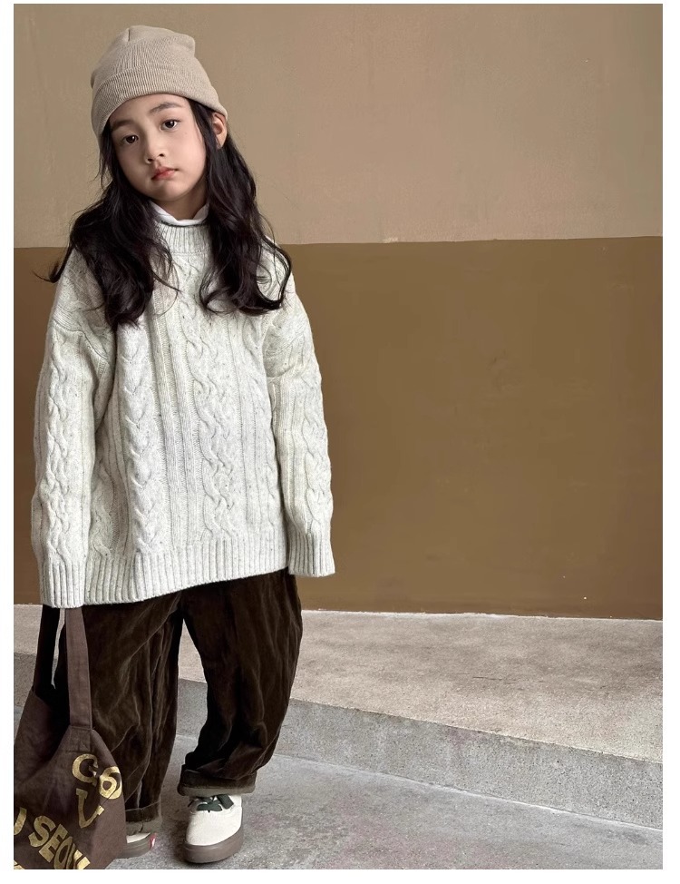 트위스트 스웨터 소녀 가을/겨울 2024 새로운 스타일 중 큰 어린이 겨울 풀오버 탑 기모 느슨한 웨스턴 스타일 니트 셔츠스토어 가기