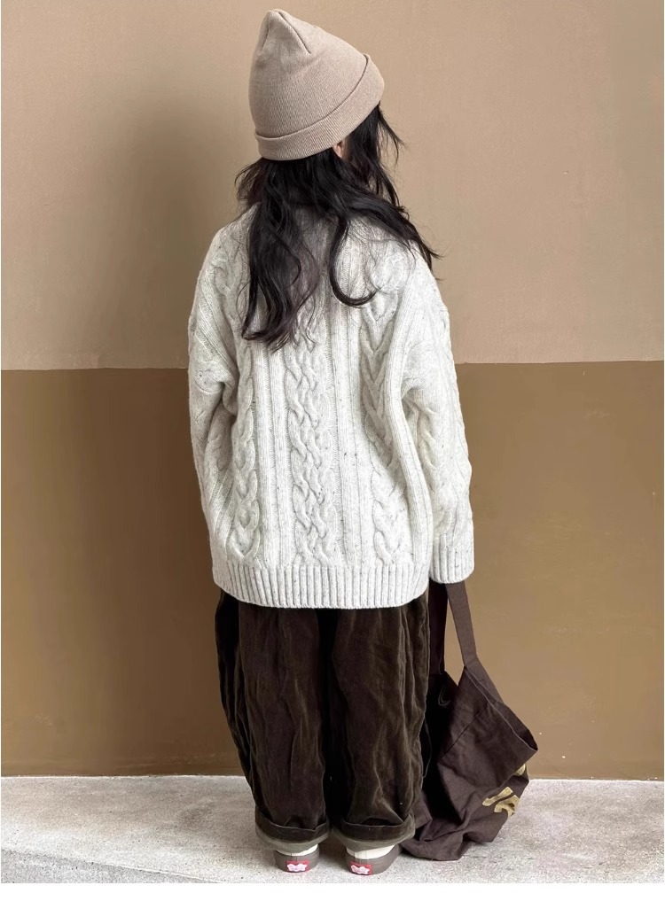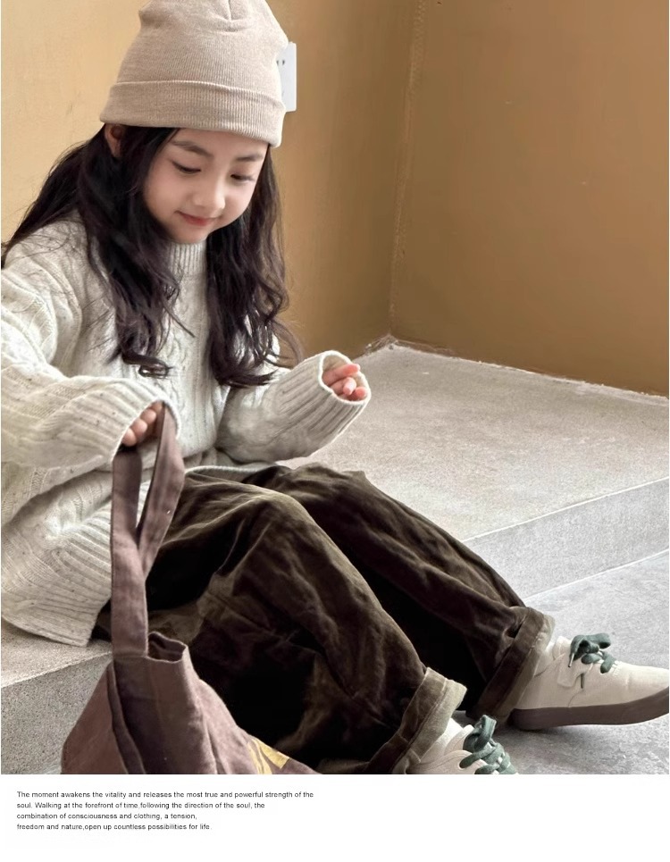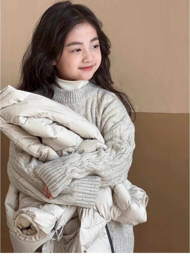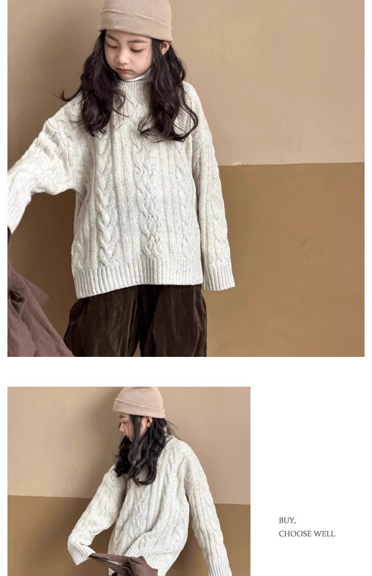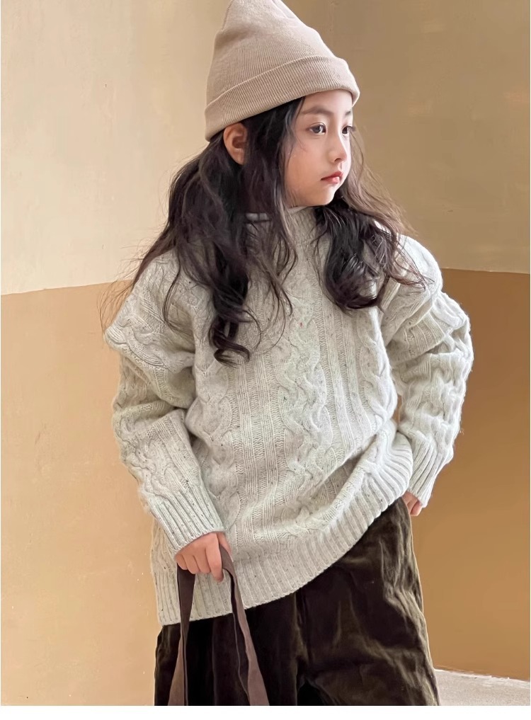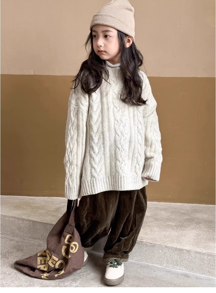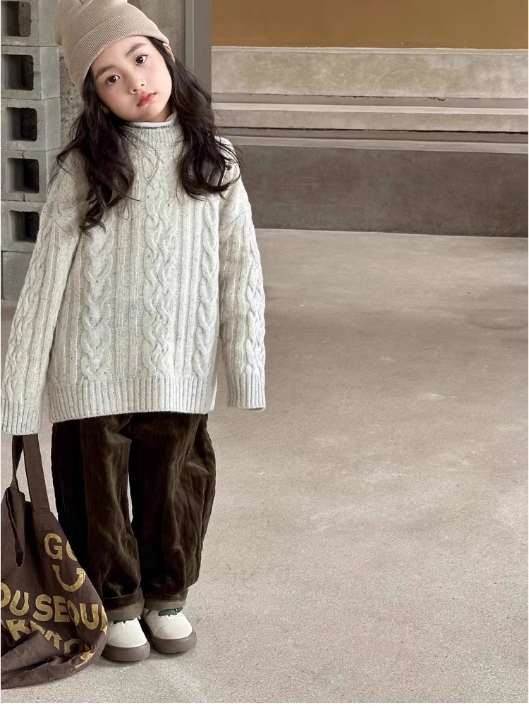 트위스트 스웨터 소녀 가을/겨울 2024 새로운 스타일 중 큰 어린이 겨울 풀오버 탑 기모 느슨한 웨스턴 스타일 니트 셔츠스토어 가기