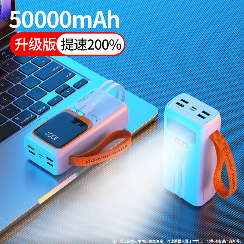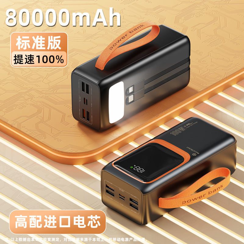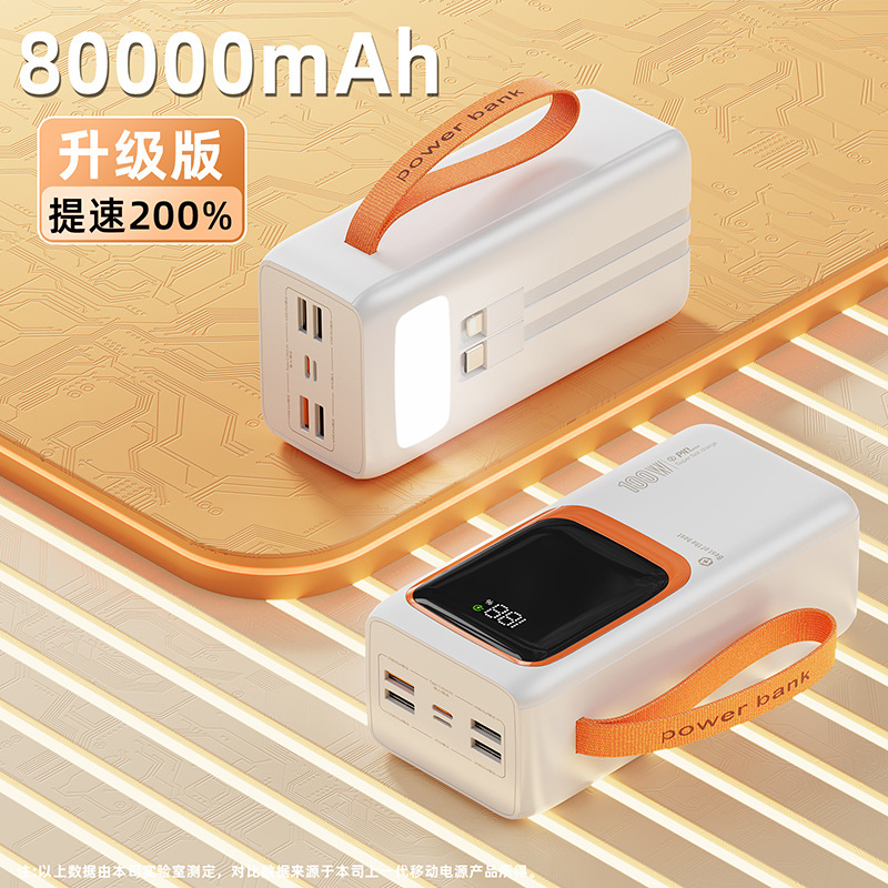 새로운 100W 초고속 충전 케이블 충전 보물 50000 mA 초박형 소형 모바일 전원 80000 Qingying스토어 가기