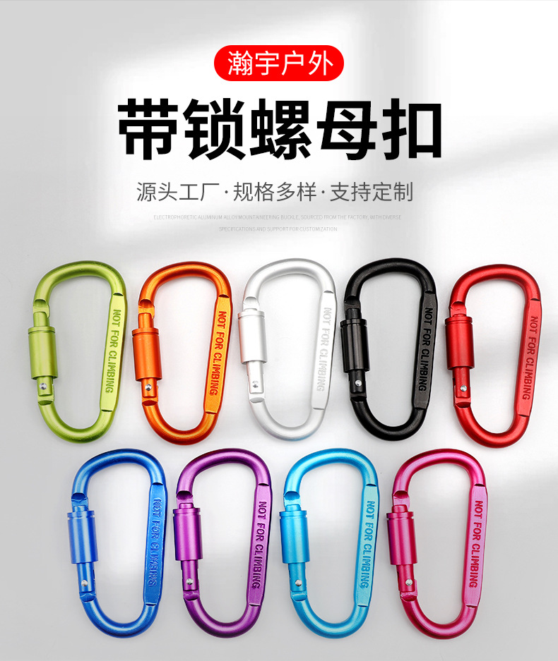 야외 No.8 롱 너트 D 자형 스쿼드 등산 버클 컬러 알루미늄 합금 등산 버클 D 자형 스프링 퀵 훅스토어 가기