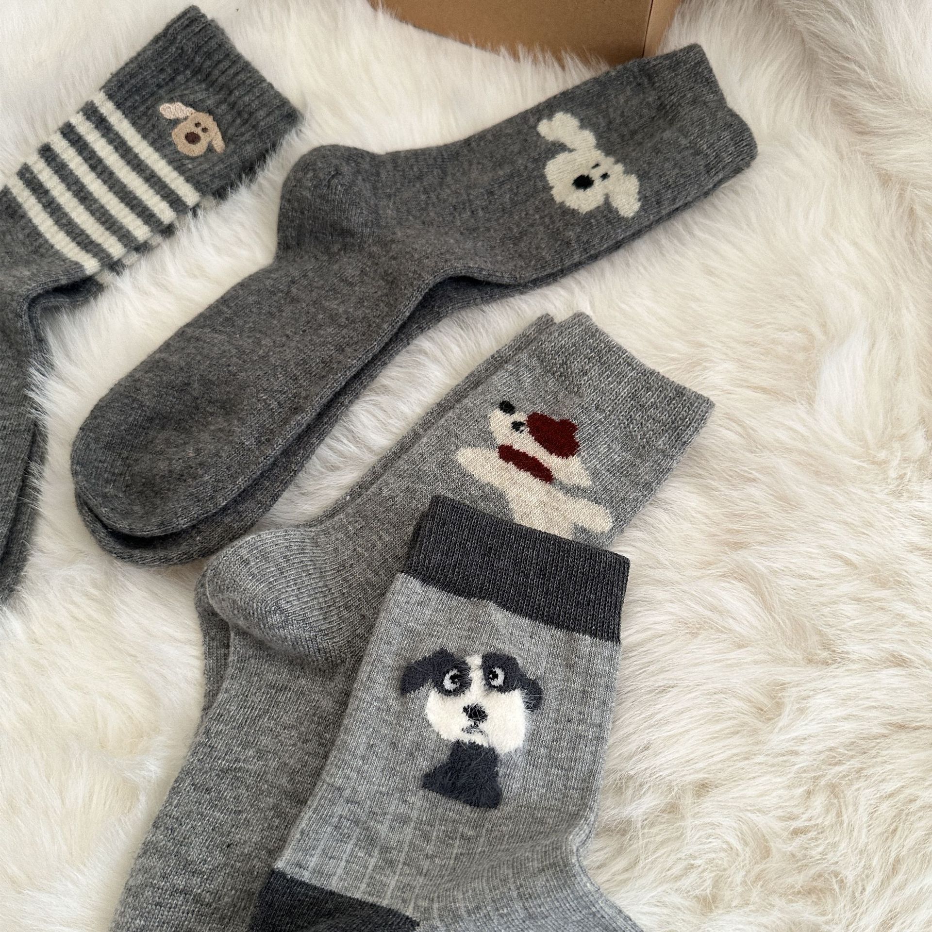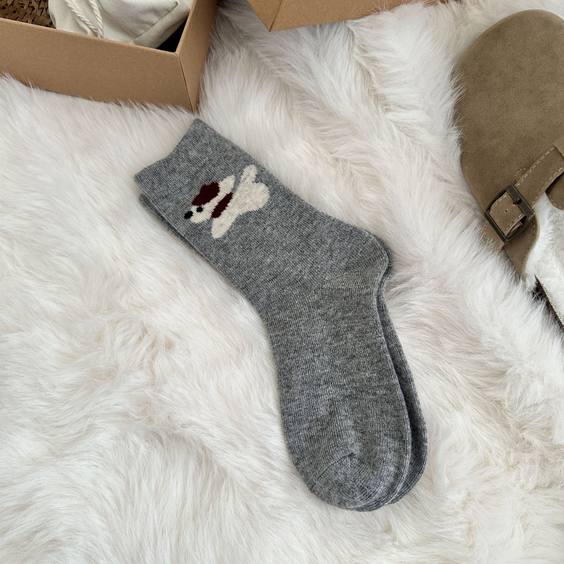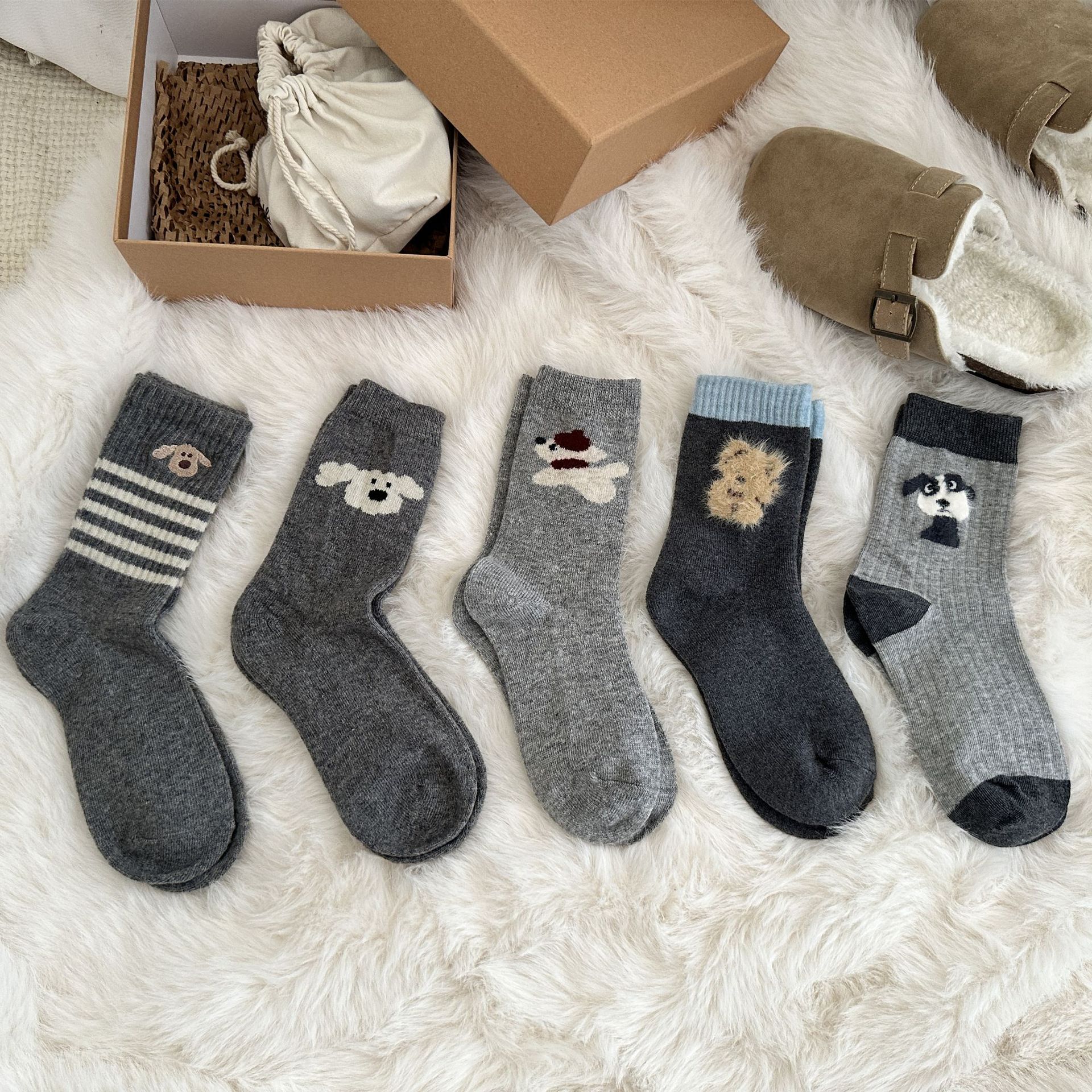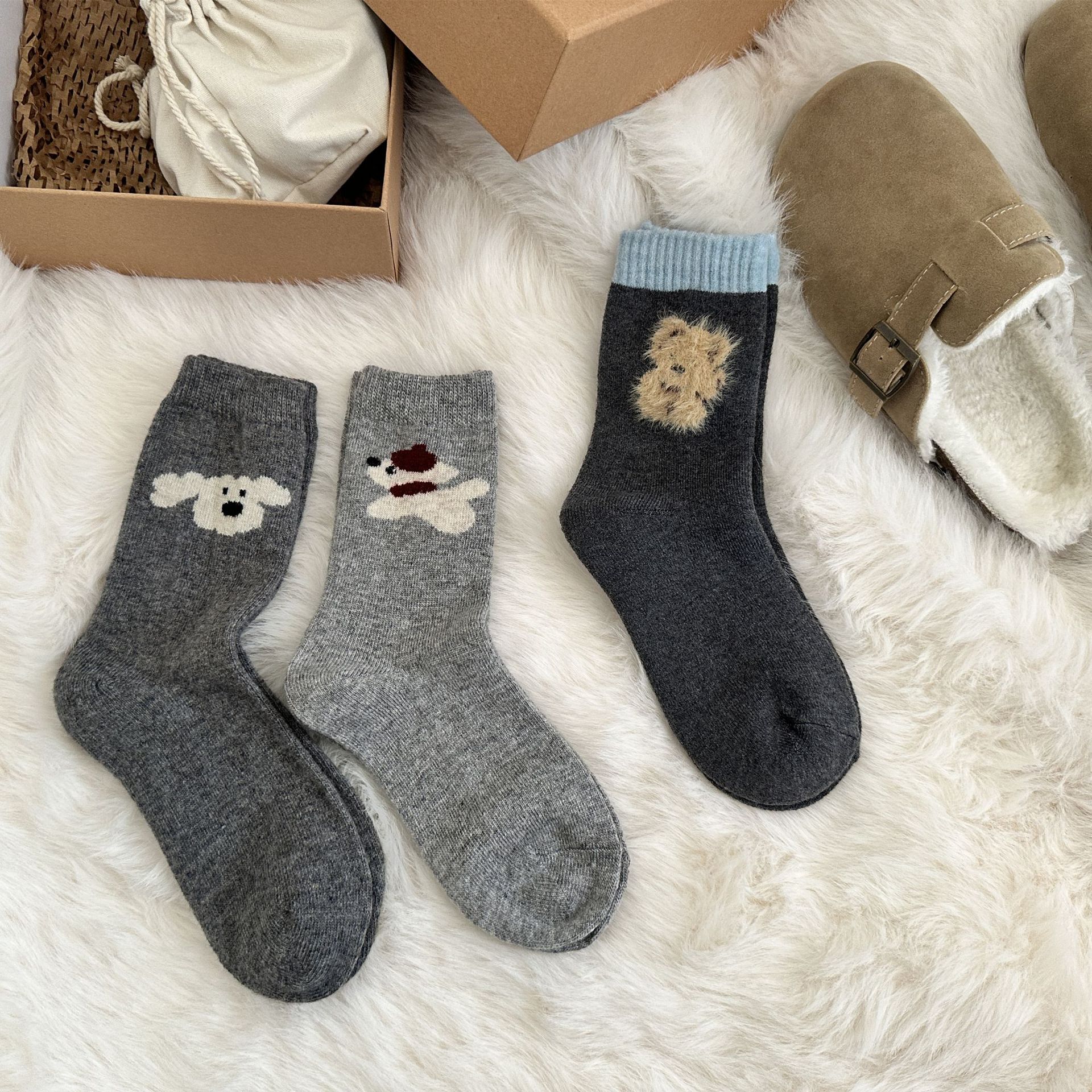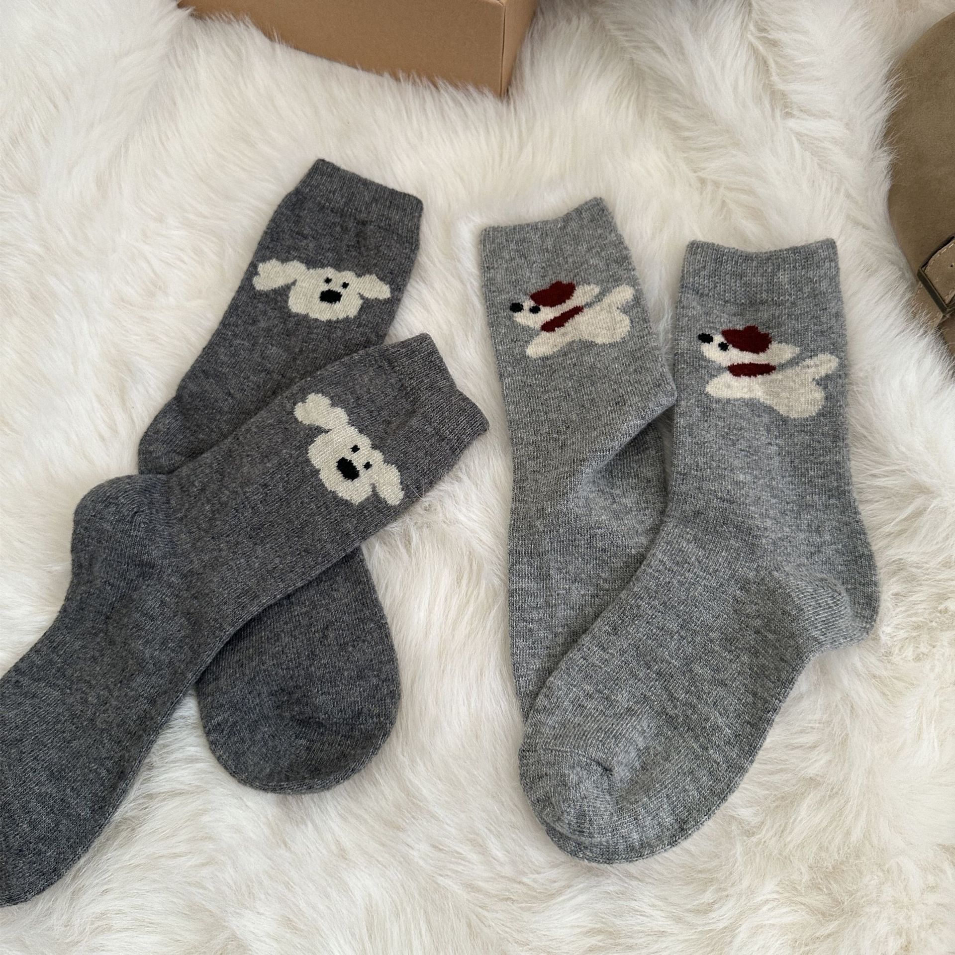어린이를위한 만화 강아지 울 양말 한국 스타일 Instagram 스타일 유행 귀여운 중간 길이 양말 두꺼운 따뜻한 캐시미어 스택 양말