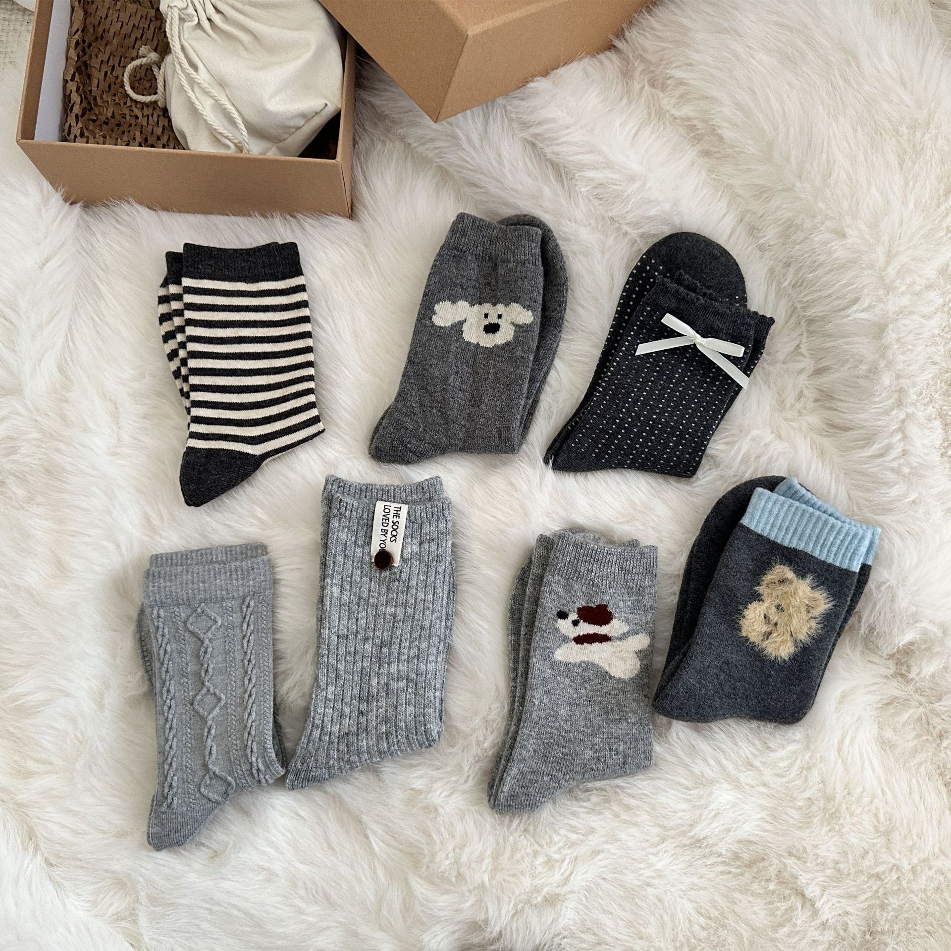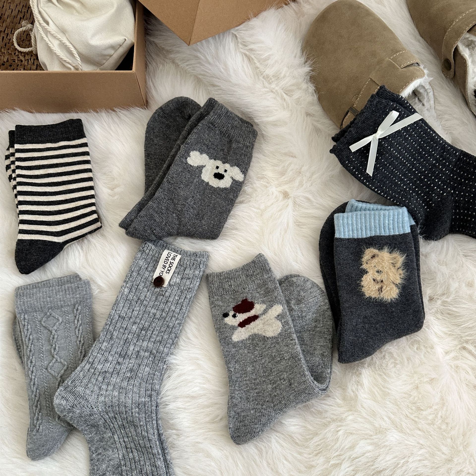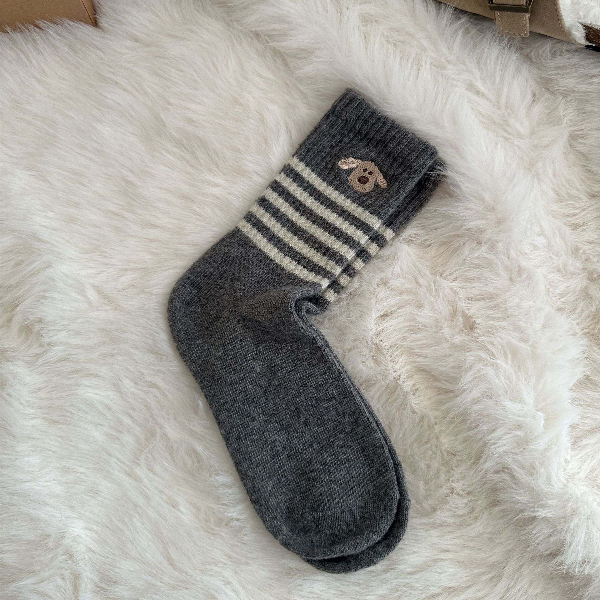 어린이를위한 만화 강아지 울 양말 한국 스타일 Instagram 스타일 유행 귀여운 중간 길이 양말 두꺼운 따뜻한 캐시미어 스택 양말스토어 가기