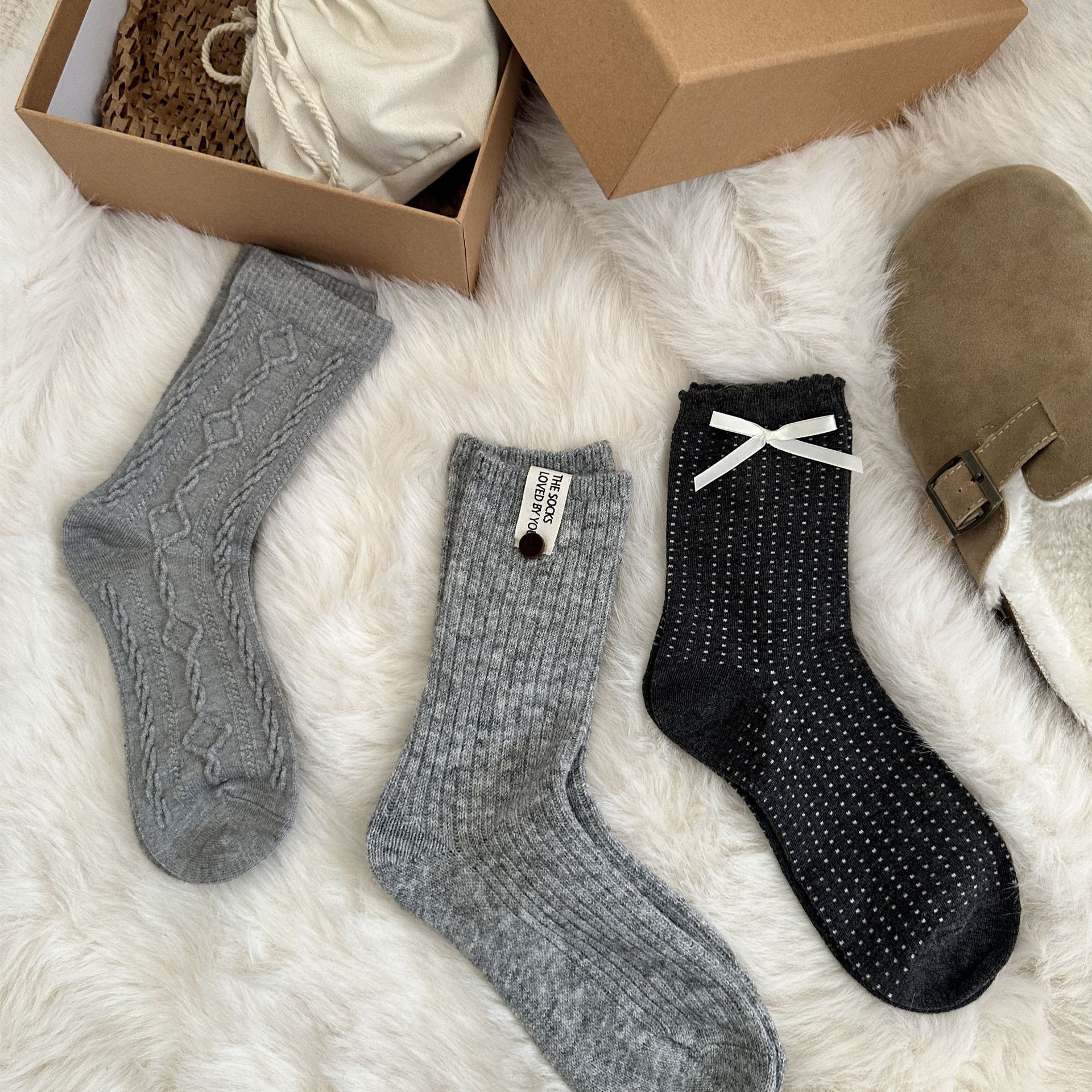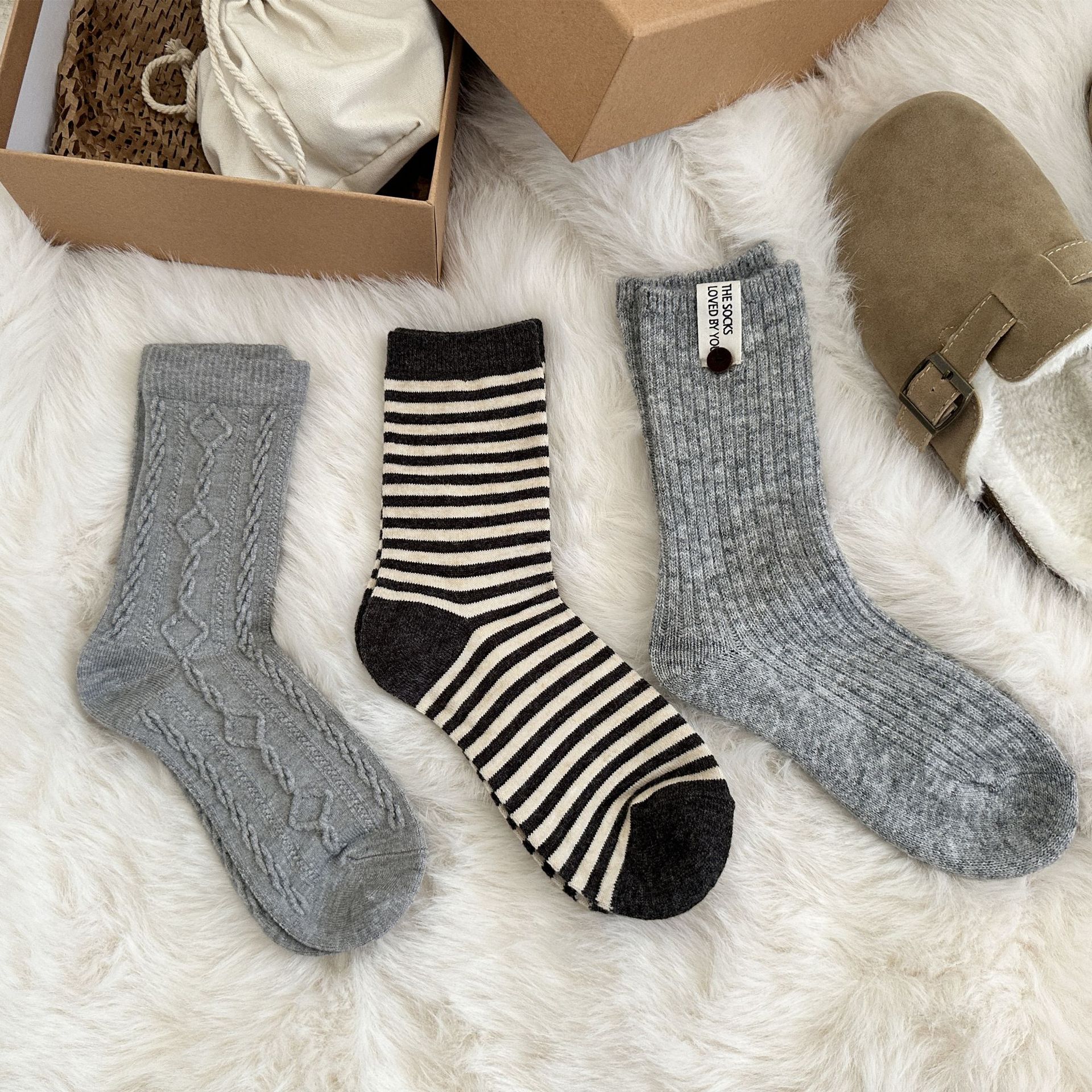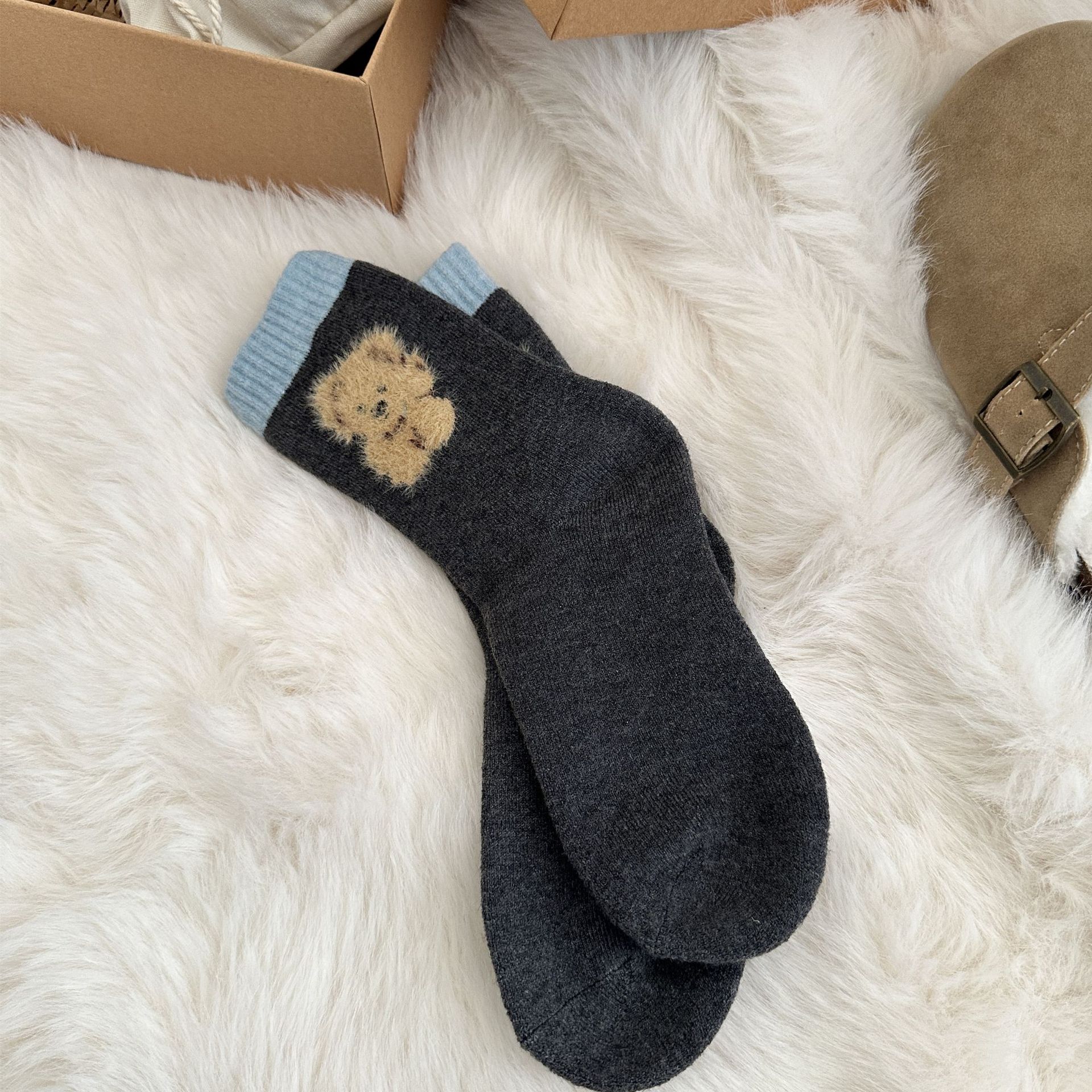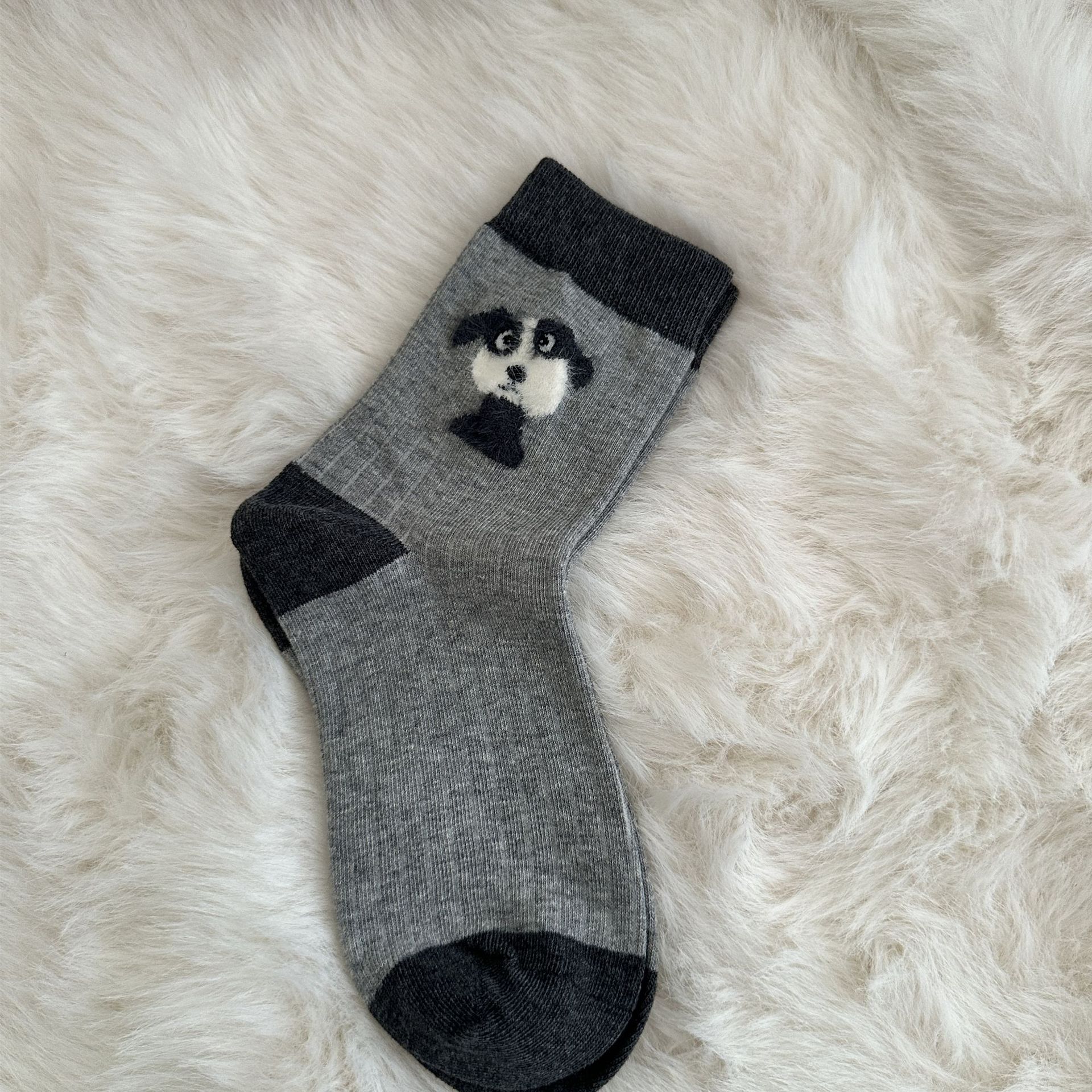 어린이를위한 만화 강아지 울 양말 한국 스타일 Instagram 스타일 유행 귀여운 중간 길이 양말 두꺼운 따뜻한 캐시미어 스택 양말스토어 가기