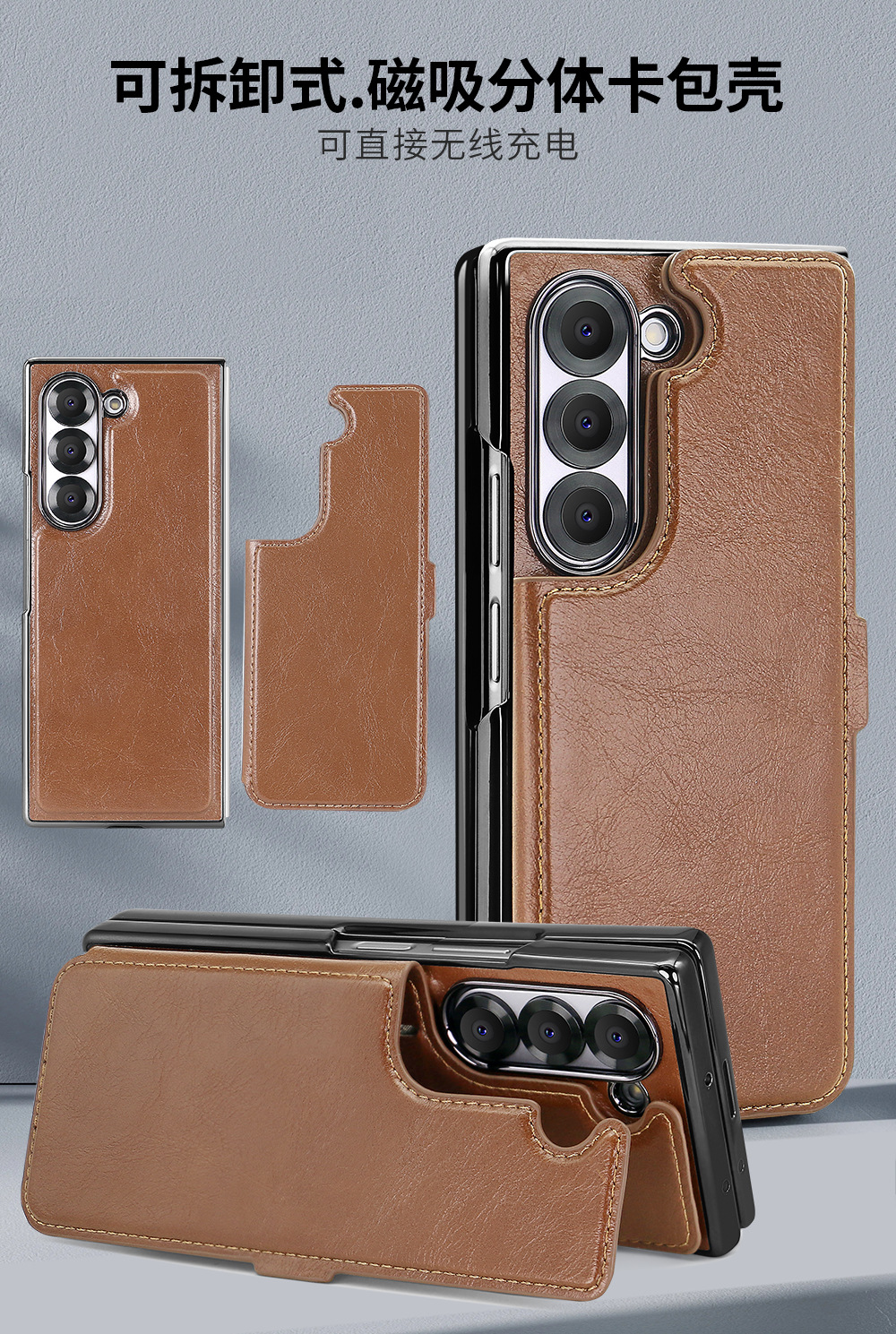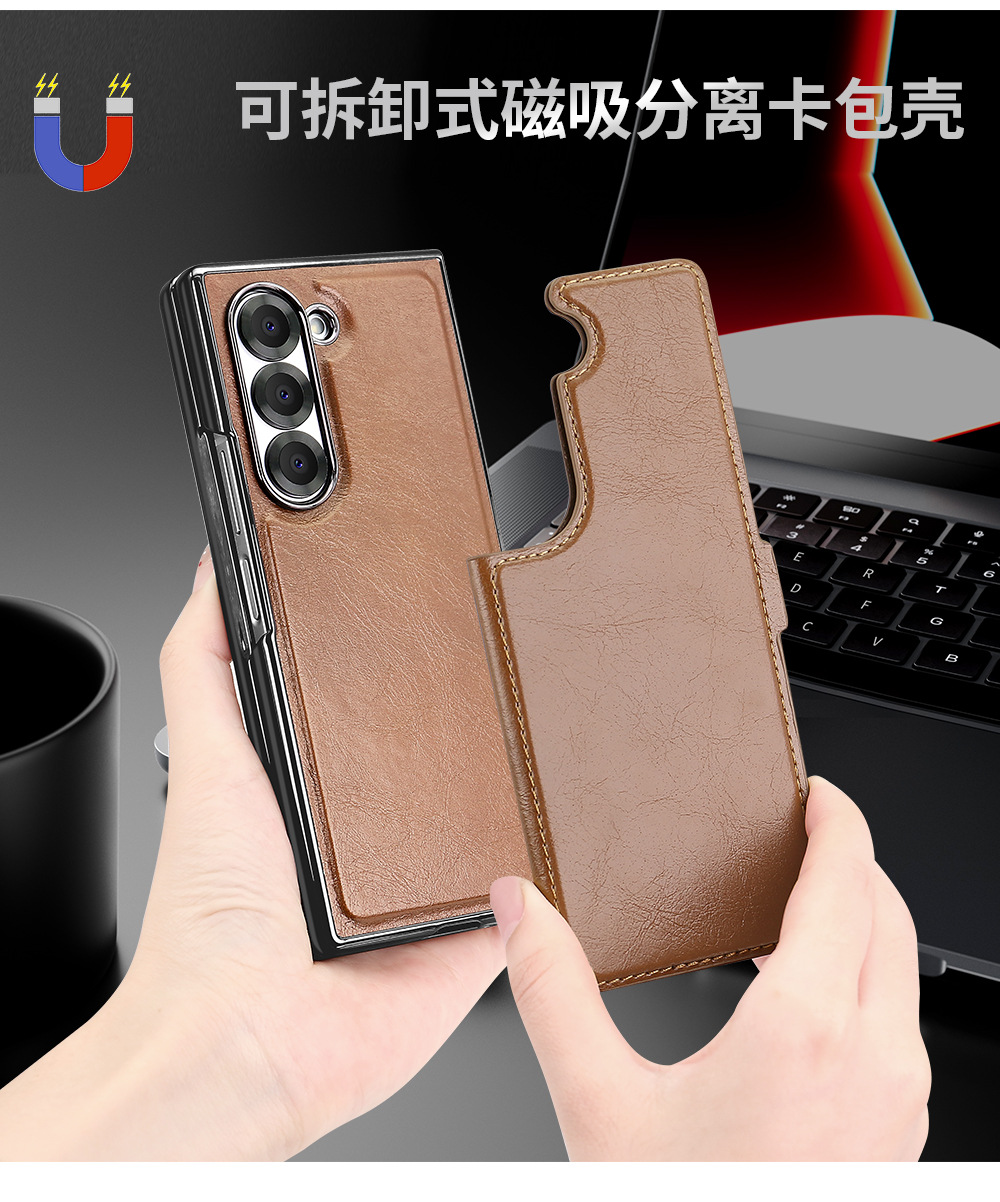 삼성 zFold6 휴대 전화 가죽 케이스 카드 분할 강한 자기 흡입 브래킷 fold5 4 가죽 보호 케이스