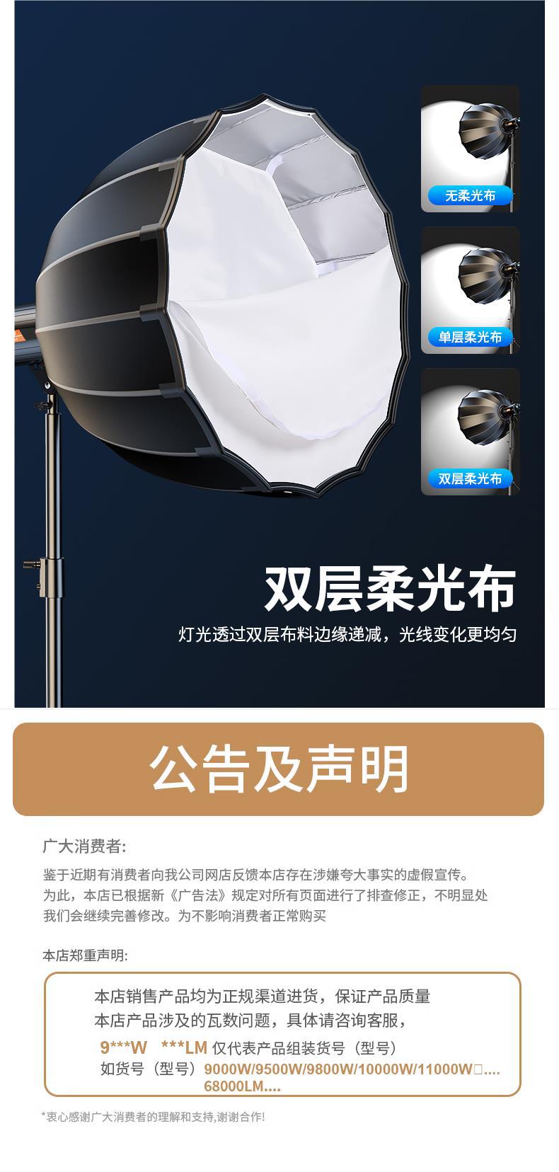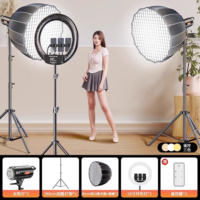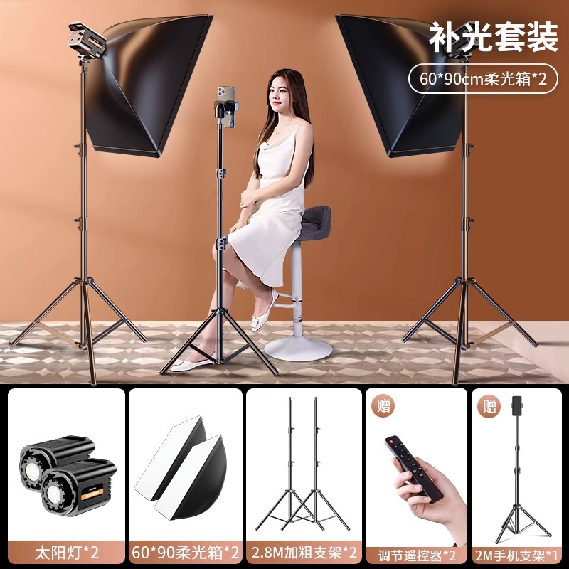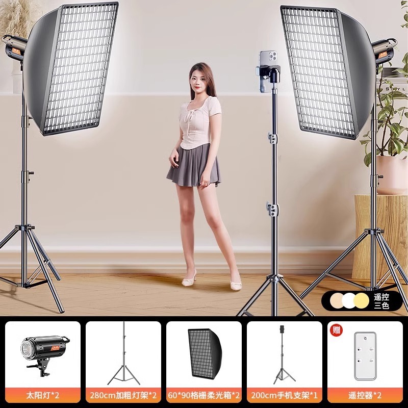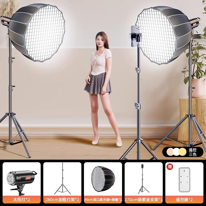 • 할인 세트 Qingying 98000Lm 태양 램프 Qingying 깊은 입 소프트 박스*2 Qingying 라이브 방송 브래킷 Qingying