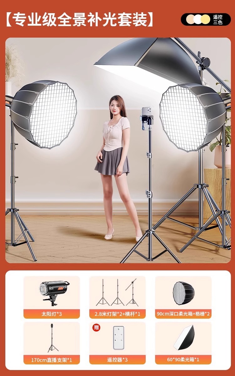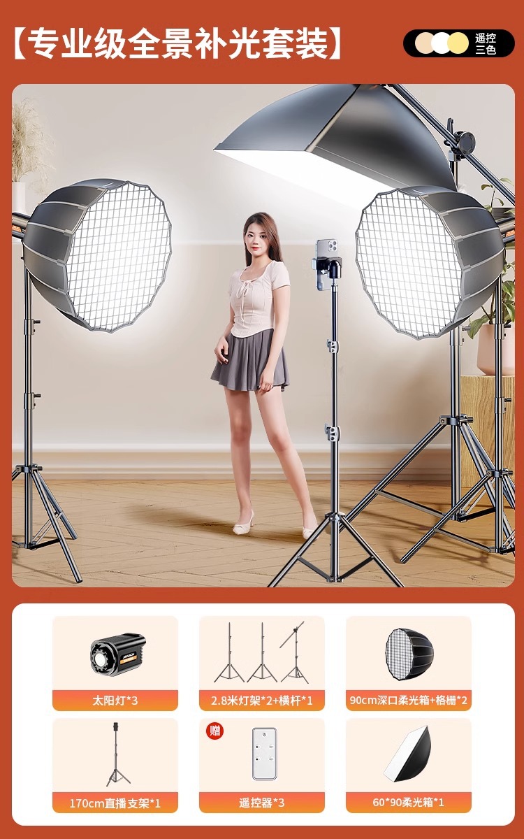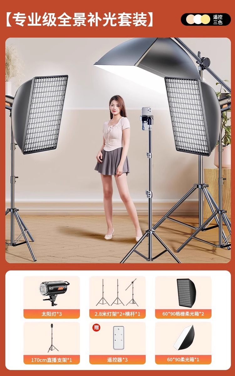 • 할인 세트 Qingying 98000Lm 태양 램프 Qingying 깊은 입 소프트 박스*2 Qingying 라이브 방송 브래킷 Qingying