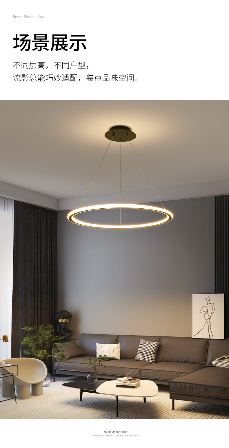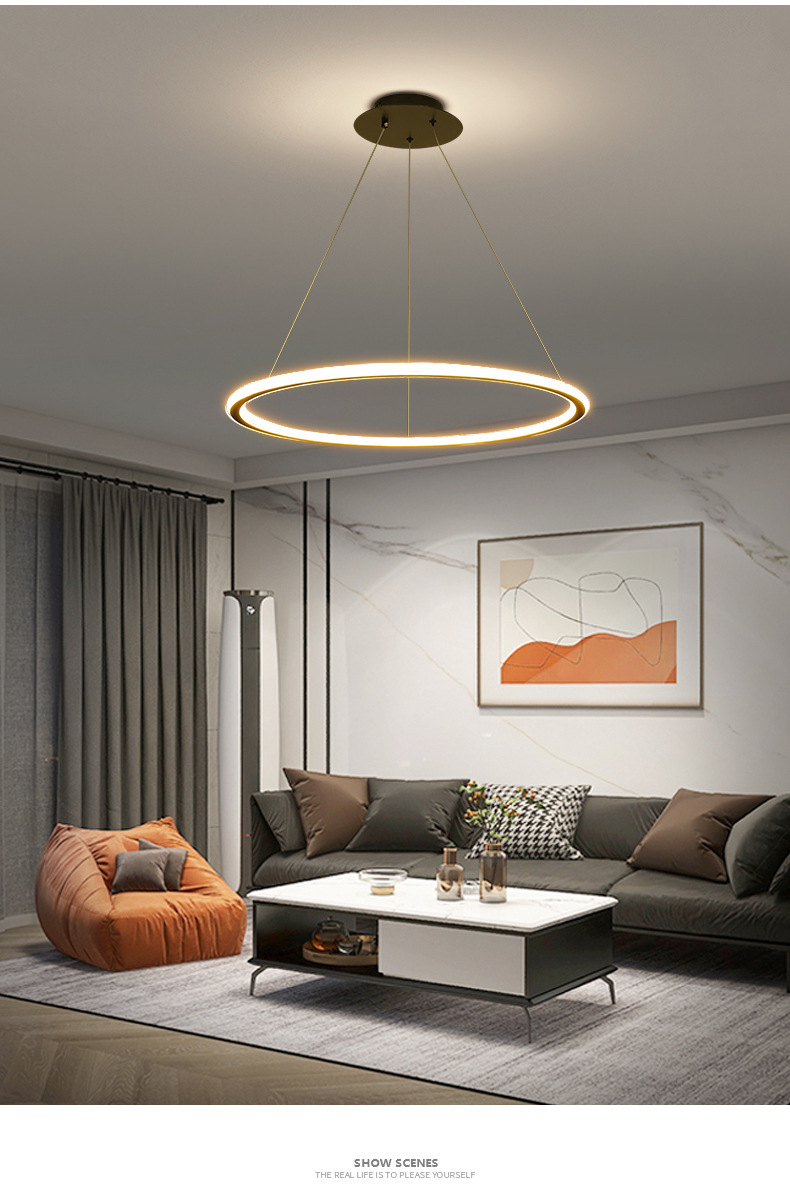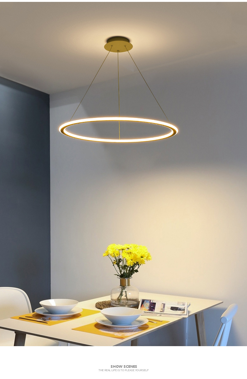 Grand Guanyuan 레스토랑 샹들리에 led 링 현대 간단한 북유럽 램프 식당 식탁 미니멀리스트 레스토랑 램프 357L