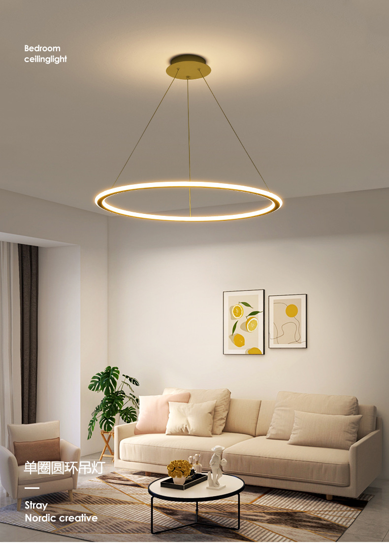 Grand Guanyuan 레스토랑 샹들리에 led 링 현대 간단한 북유럽 램프 식당 식탁 미니멀리스트 레스토랑 램프 357L스토어 가기