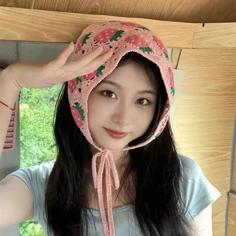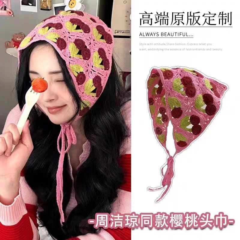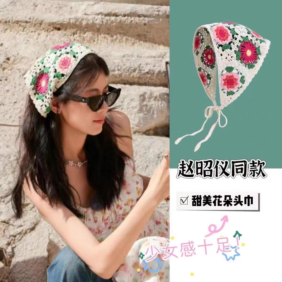 새로운 프랑스 달콤한 귀여운 수제 니트 크로 셰 터번 작은 신선한 해바라기 니트 헤어 벨트 삼각형 수건