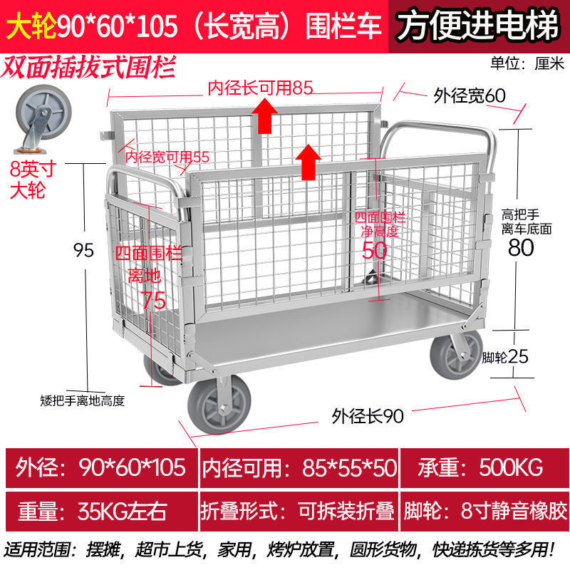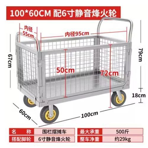 울타리 자동차 가드 레일 접이식 트레일러 그리드 물류 슈퍼마켓 스톨 플랫 자동차 범용 스톨 다목적 트롤리