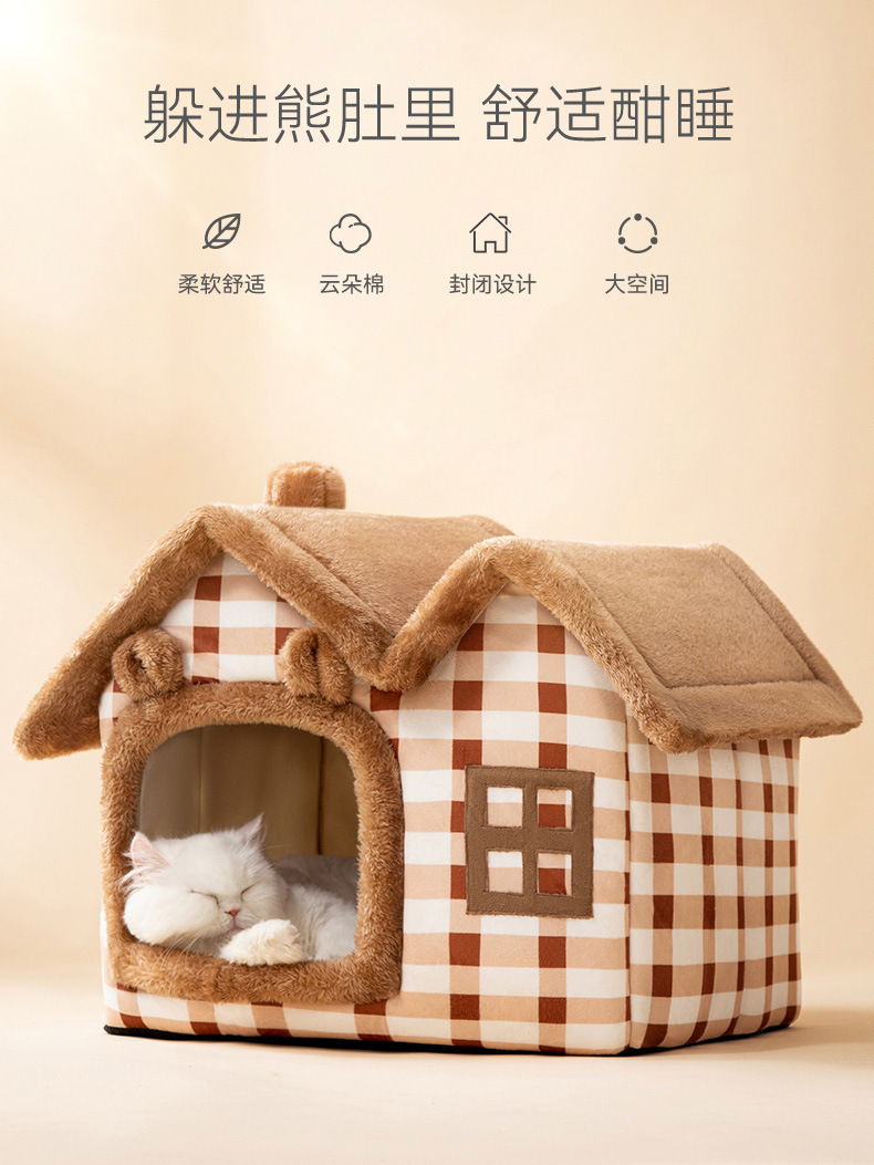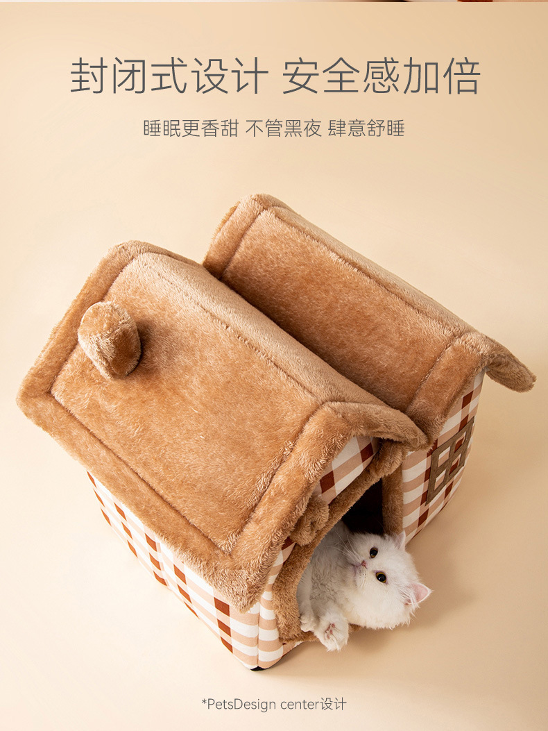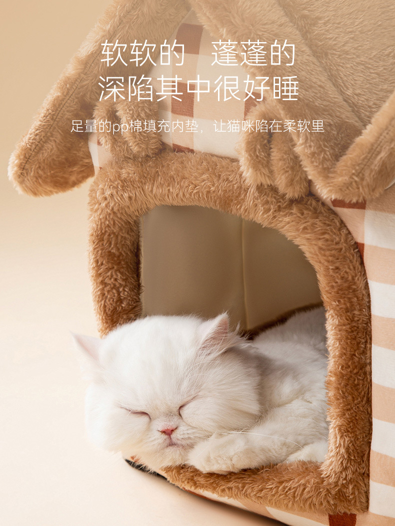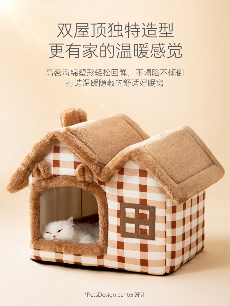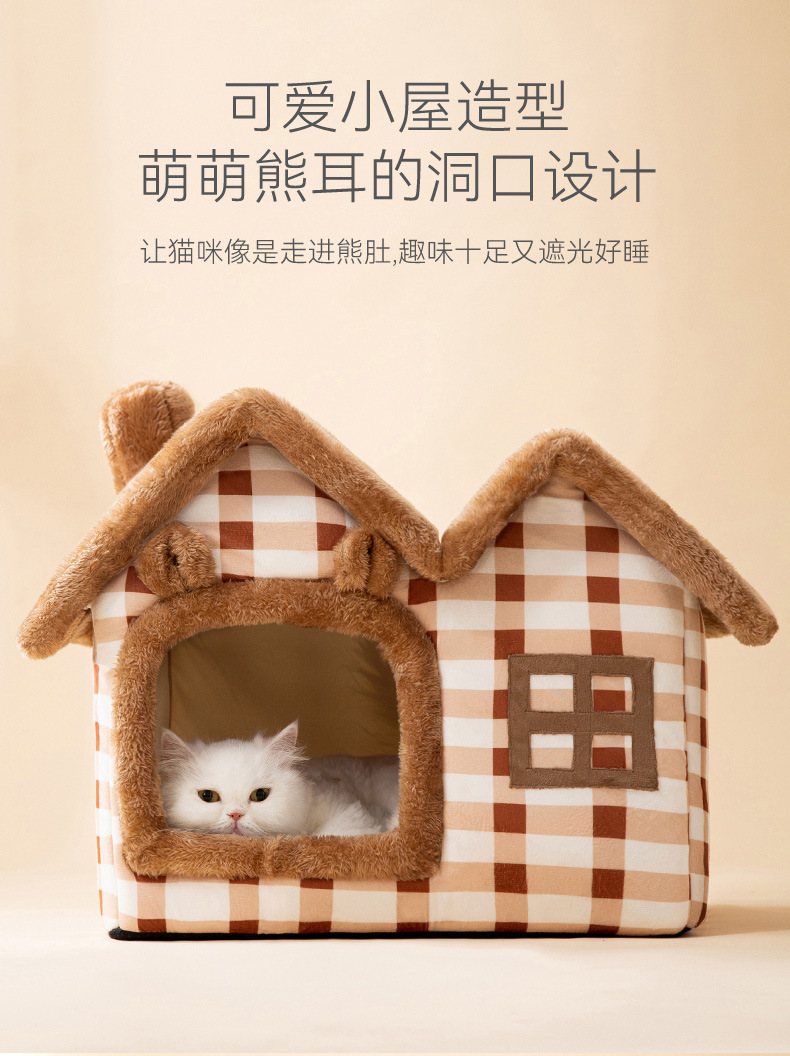 고양이 가을과 겨울 더블 탑 하우스 고양이 둥지 개 따뜻한 사육장 귀여운 만화 이동식 및 세척 가능한 사계절 애완 동물 둥지
