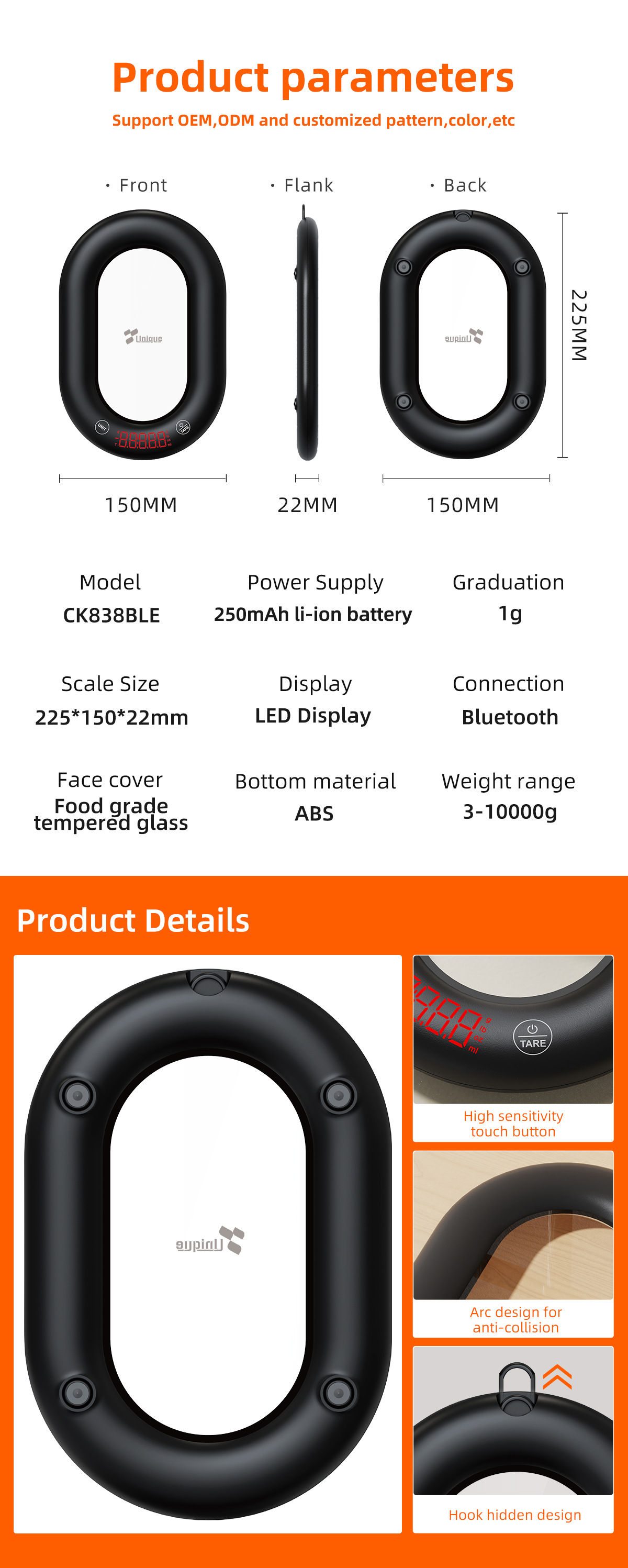 공장 맞춤형 블루투스 전자 주방 저울 1g 고정밀 가정용 휴대용 열 분석 블루투스 연결 주방스토어 가기