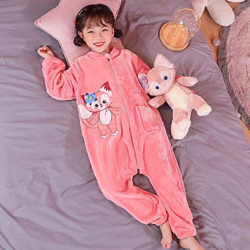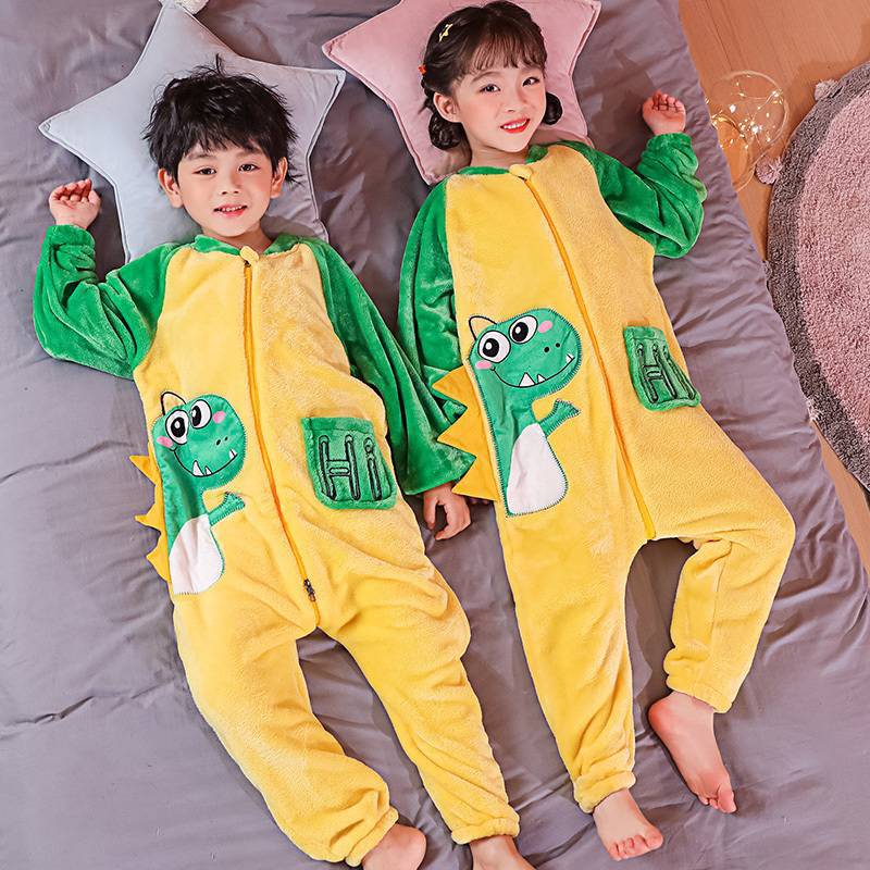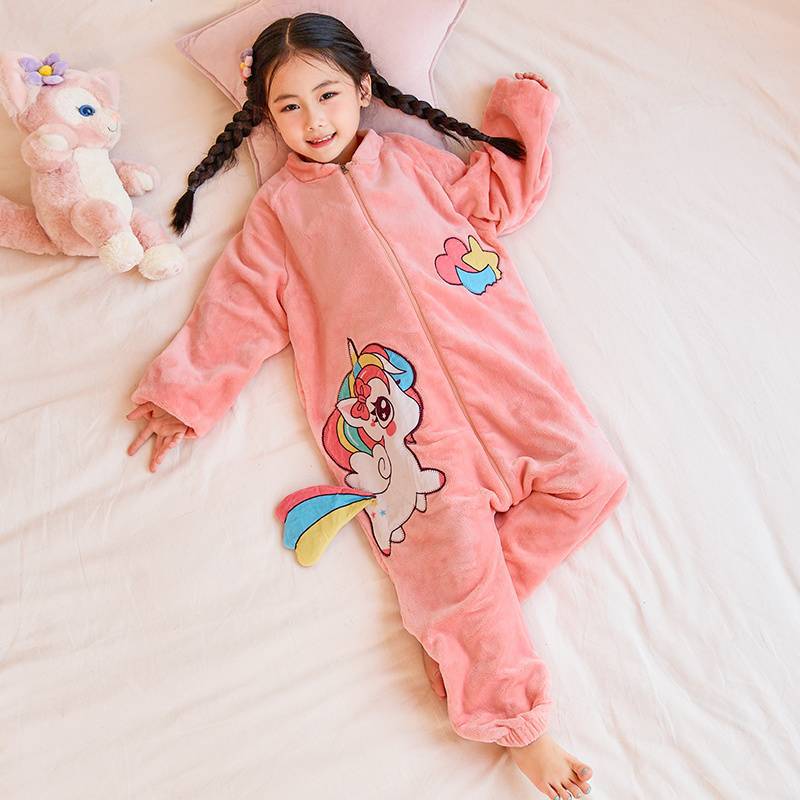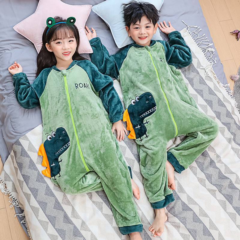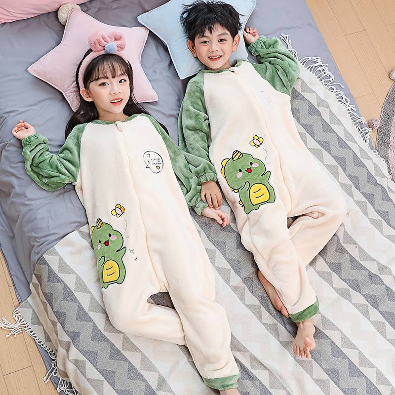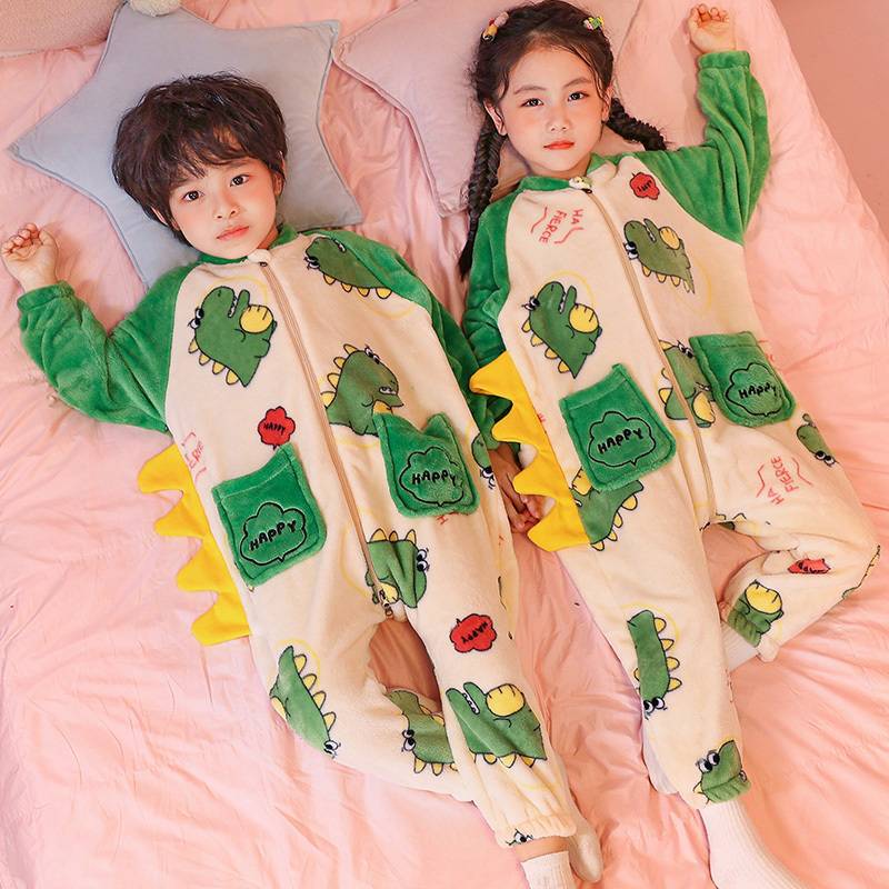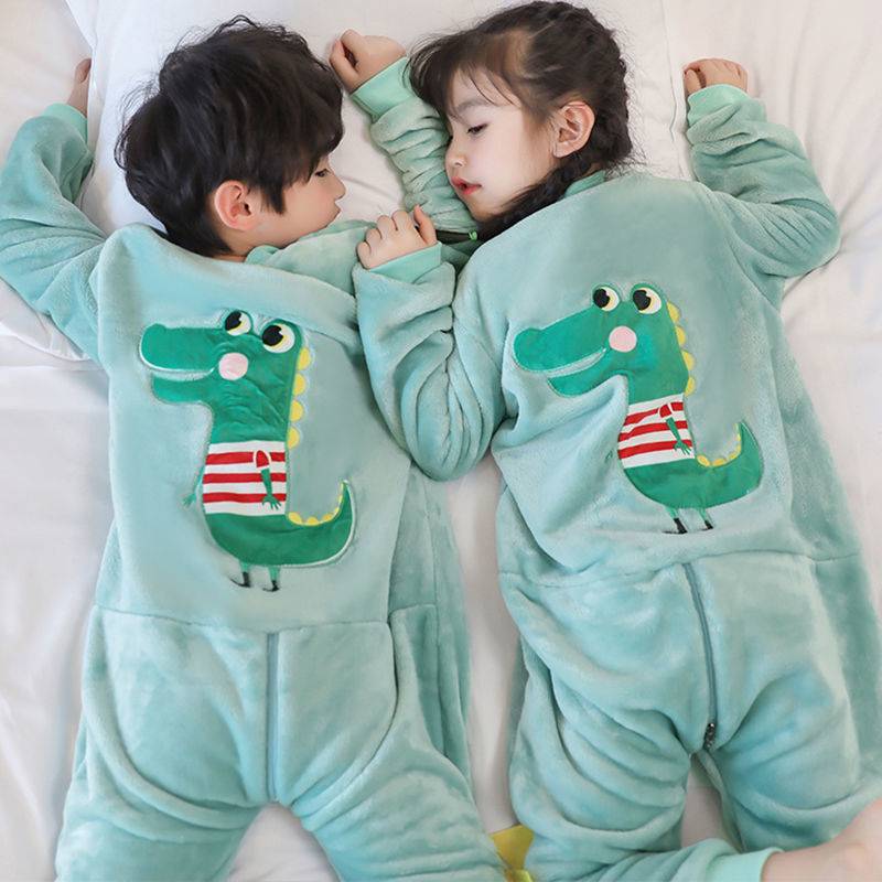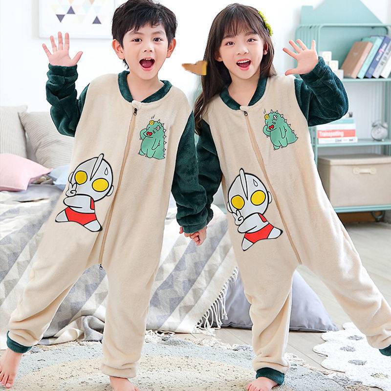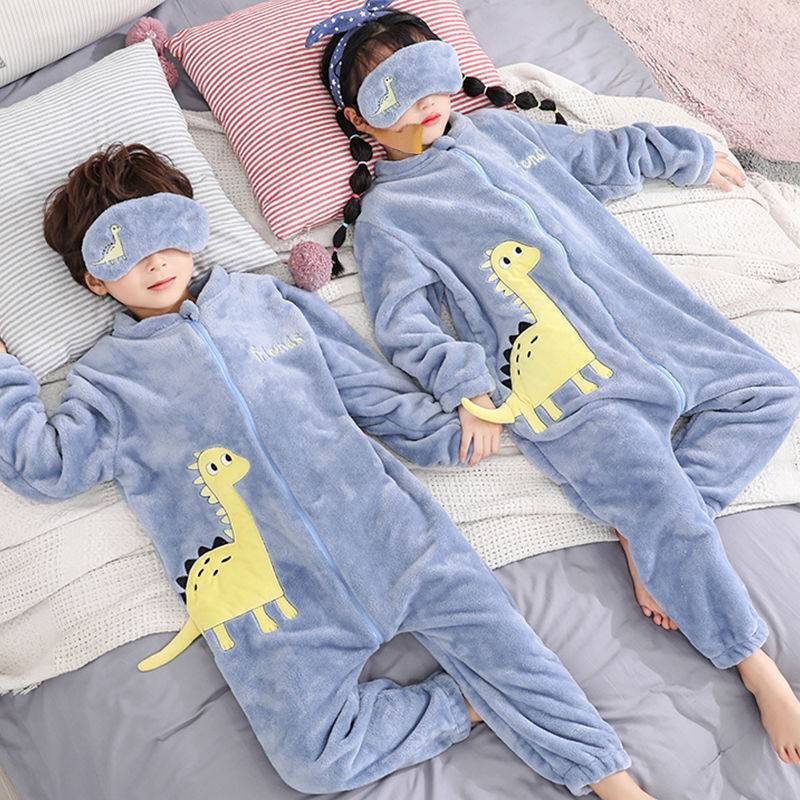 어린이 한 몸 잠옷 가을과 겨울 산호 양털 소년의 침낭 큰 어린이 소녀의 플란넬이 두꺼운 집 옷스토어 가기