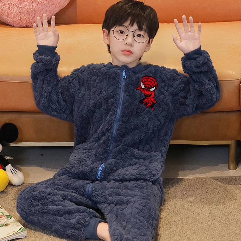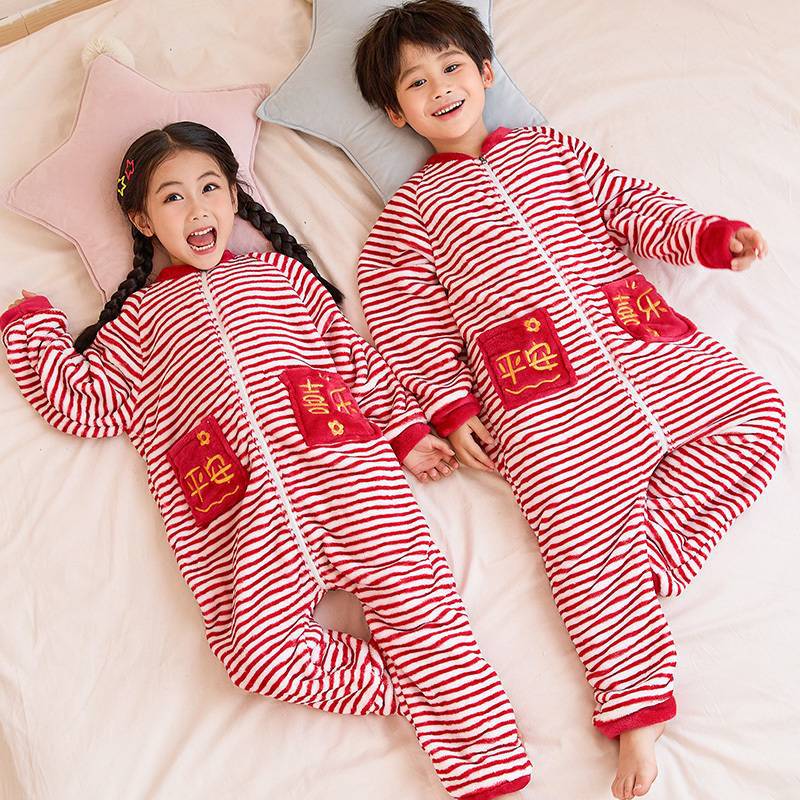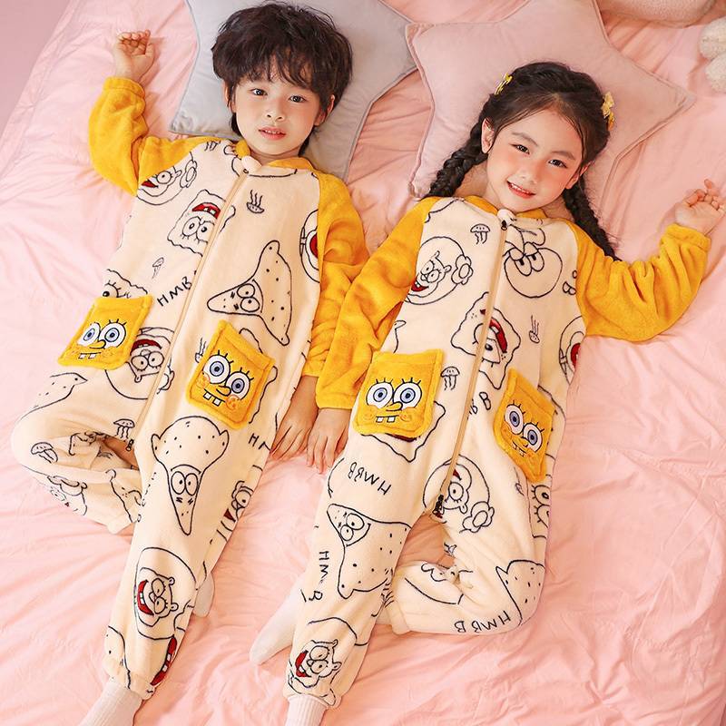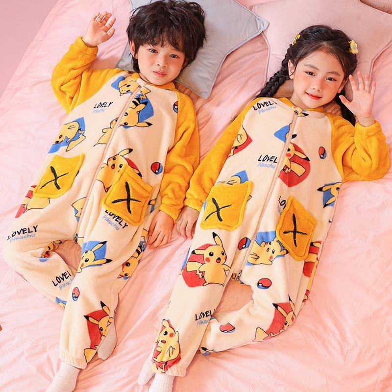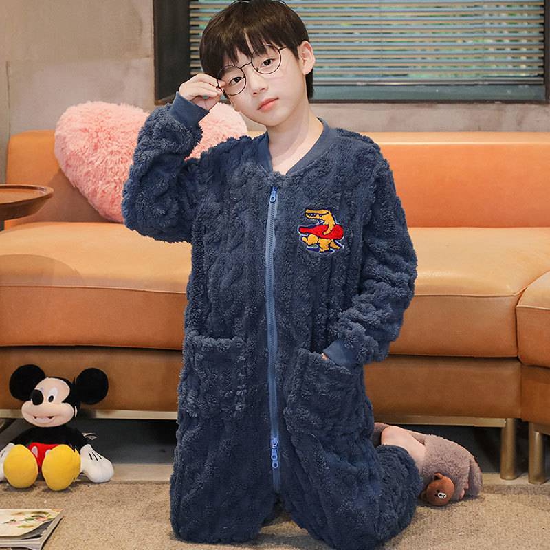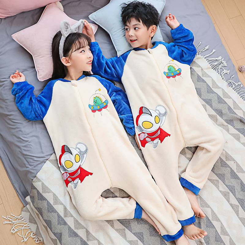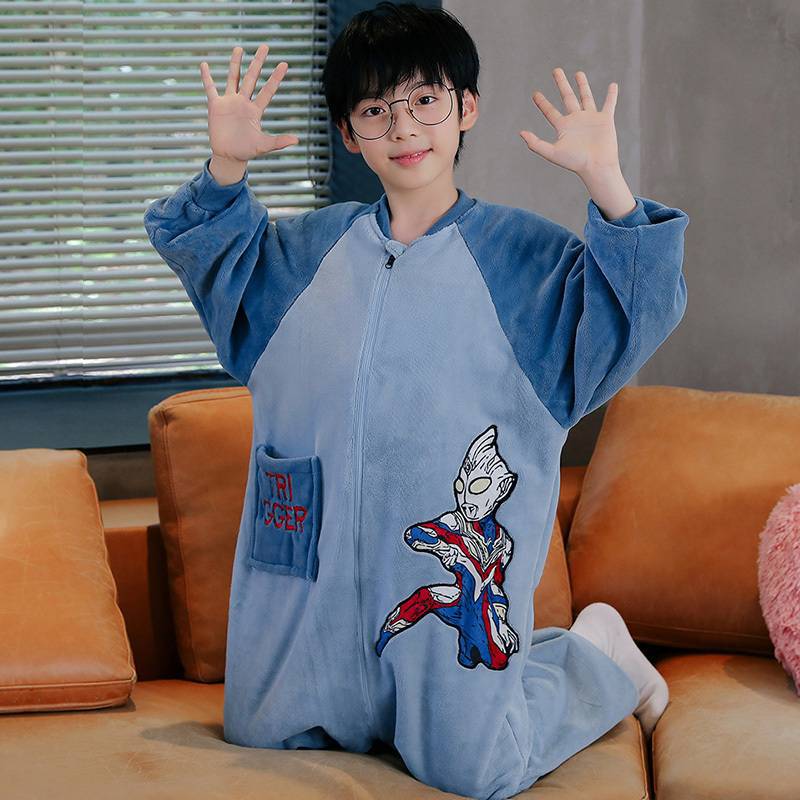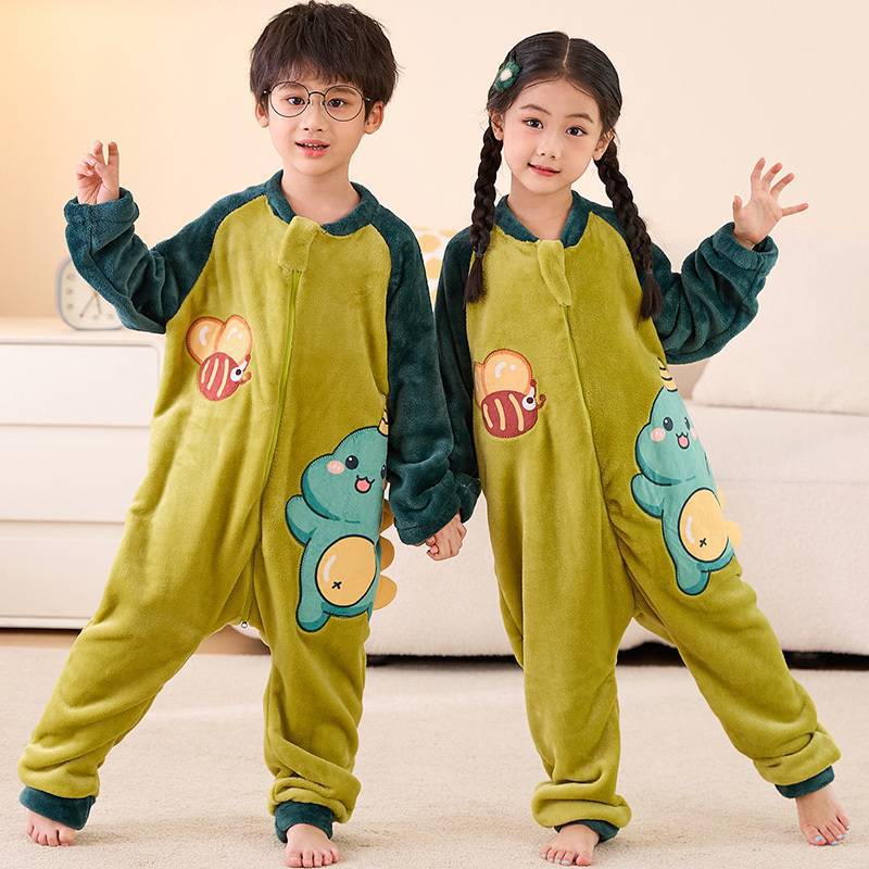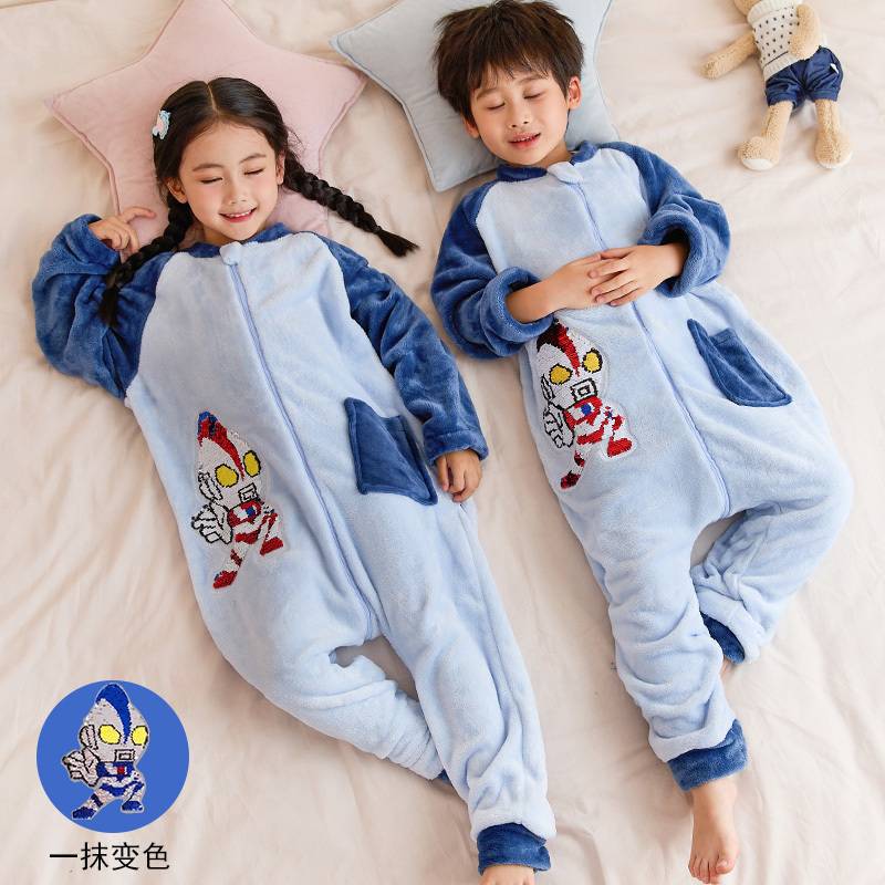어린이 한 몸 잠옷 가을과 겨울 산호 양털 소년의 침낭 큰 어린이 소녀의 플란넬이 두꺼운 집 옷스토어 가기