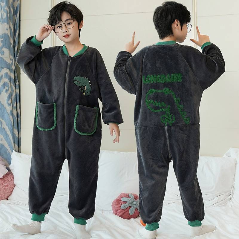 어린이 한 몸 잠옷 가을과 겨울 산호 양털 소년의 침낭 큰 어린이 소녀의 플란넬이 두꺼운 집 옷