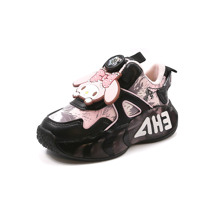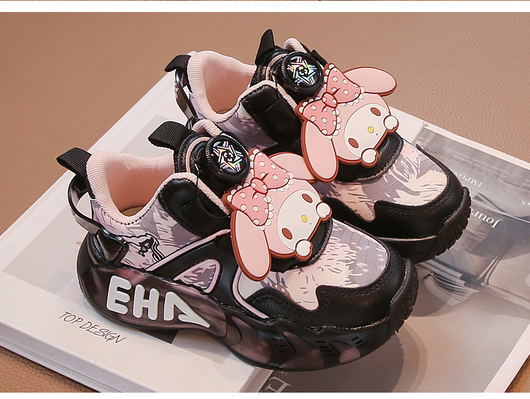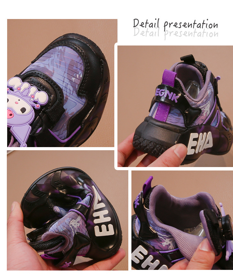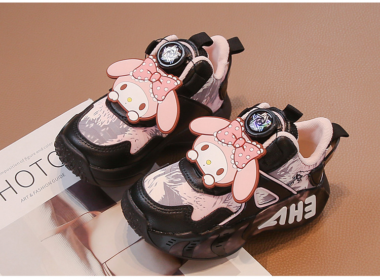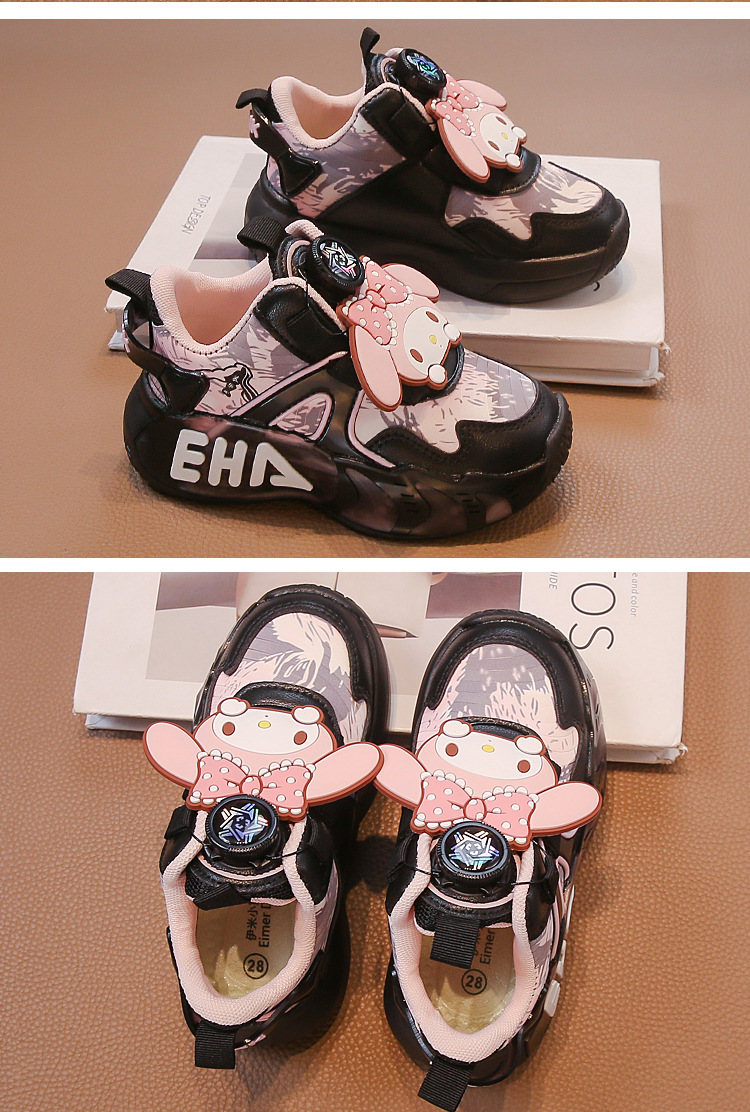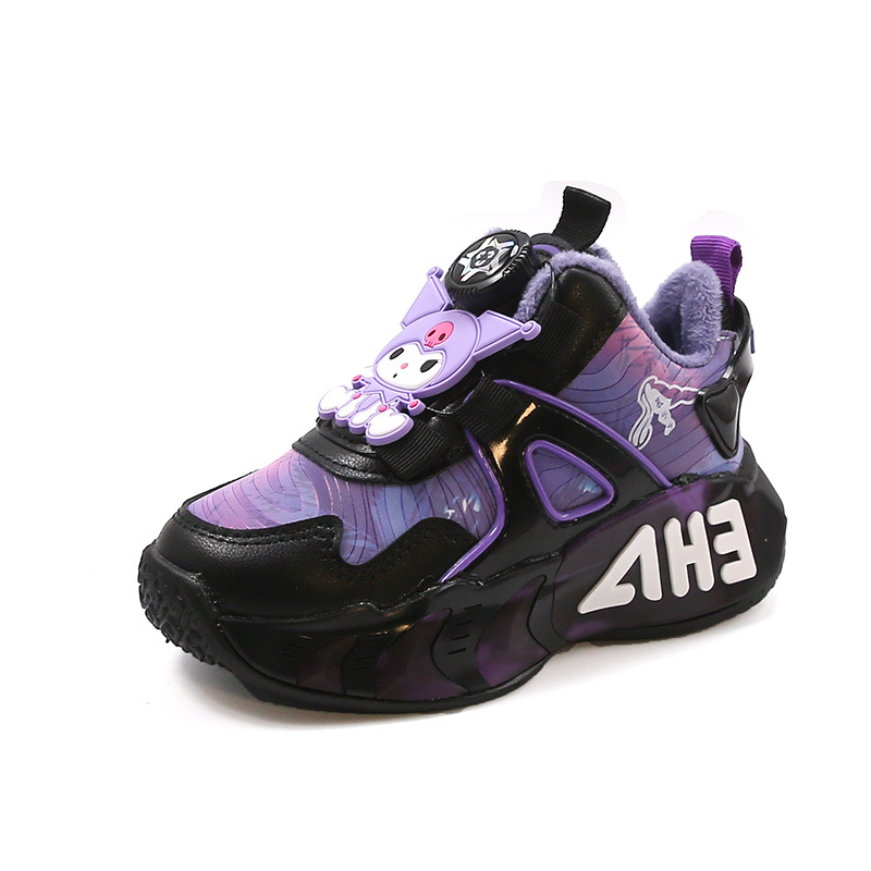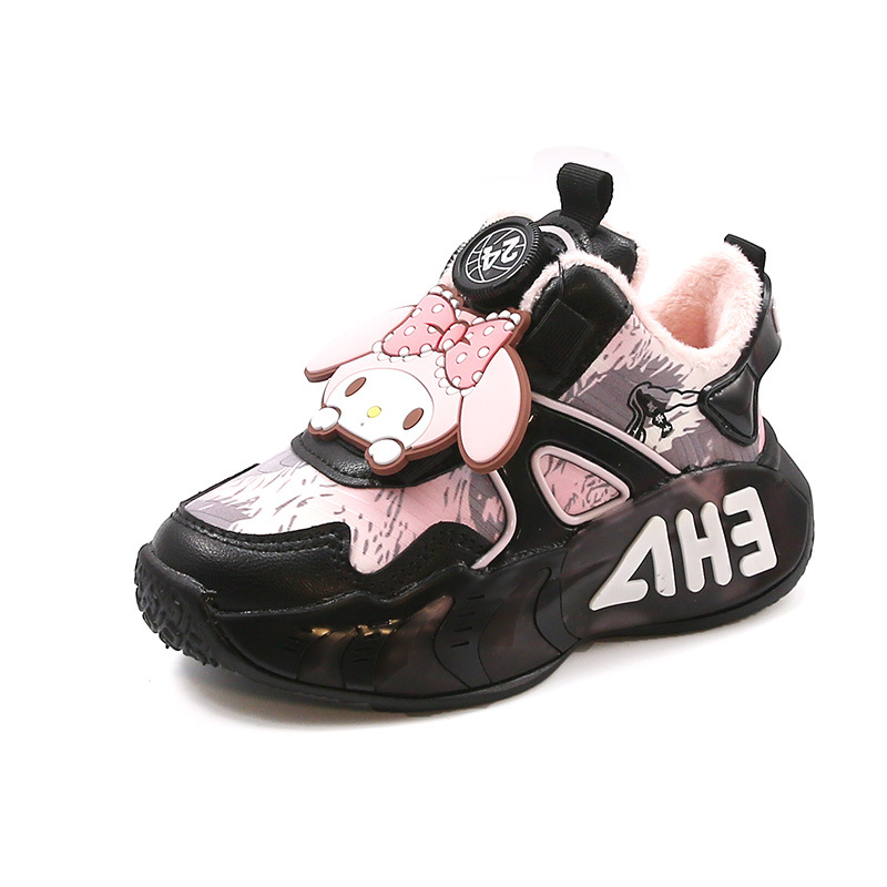 소녀 쿨로 미 플러스 벨벳 따뜻한 운동화 어린이 미끄럼 방지 버튼 신발 2024 겨울 새 가죽 어린이 신발 조수