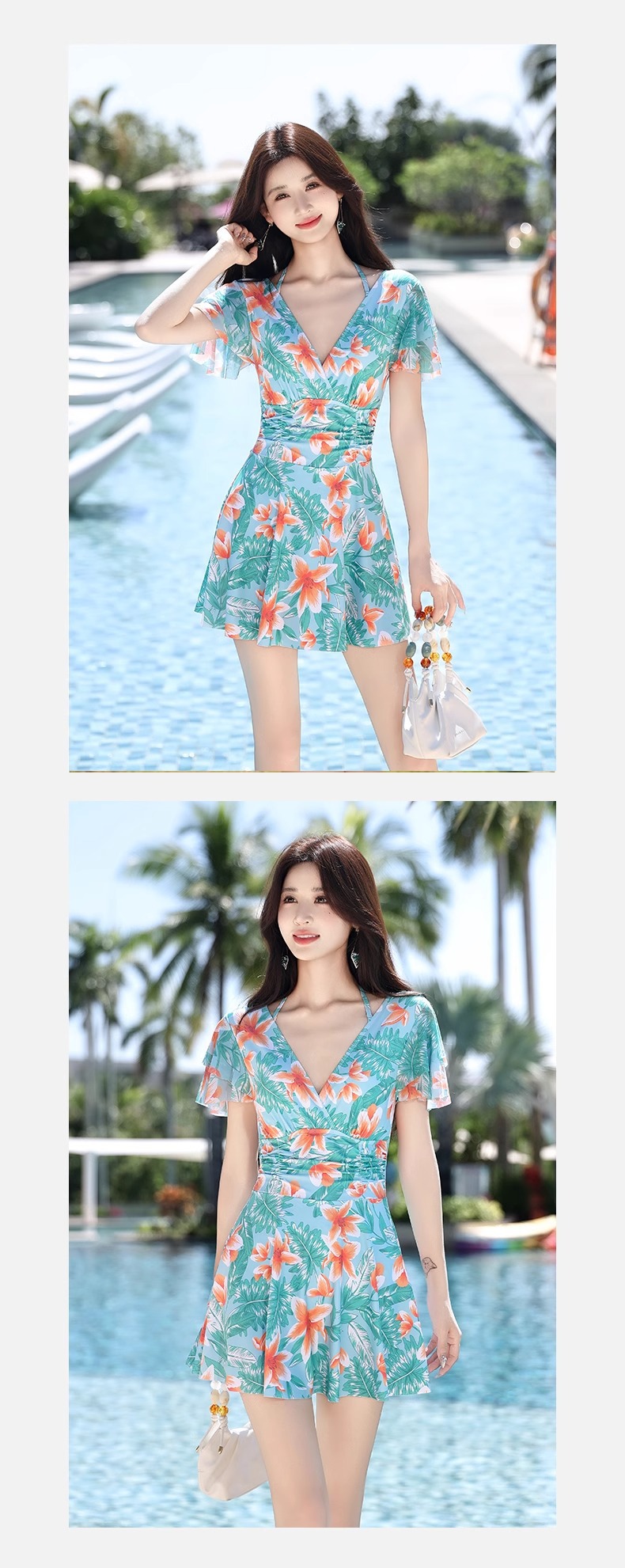 수영복 숙녀 거품 온천 2024 새로운 고기 덮인 슬림 원피스 스커트 휴가 사진 수영복 도매스토어 가기