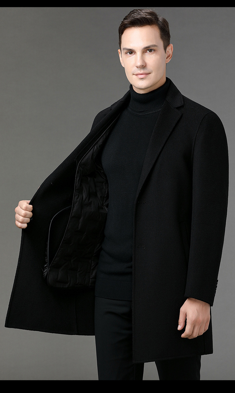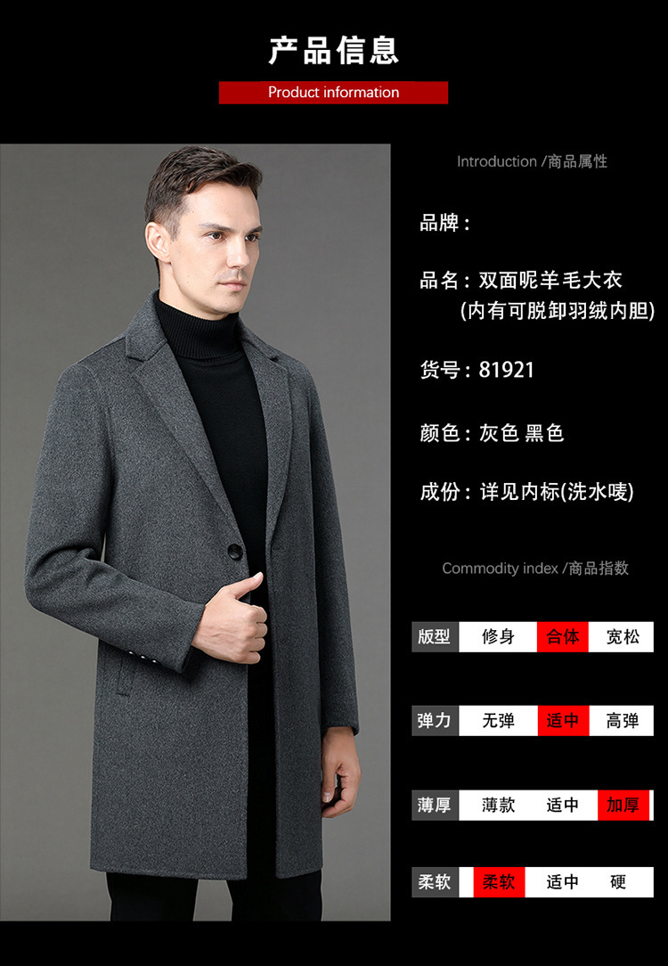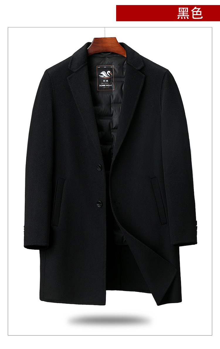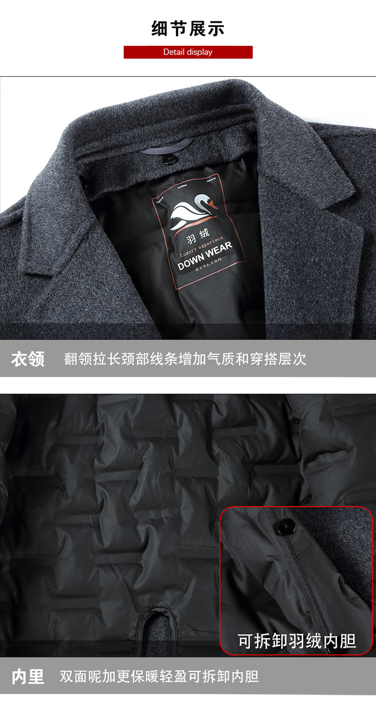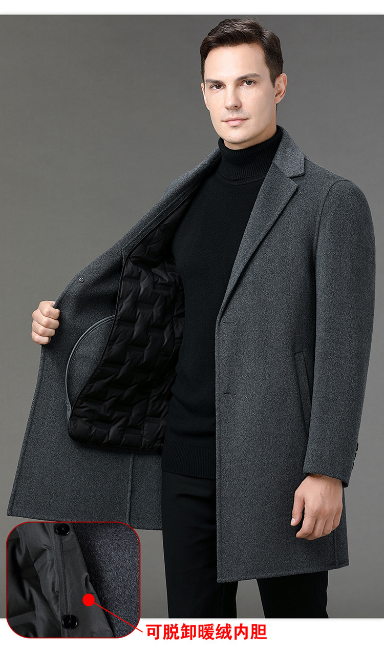 도매 양면 캐시미어 코트 남성용 가을 및 겨울 중간 길이 다운 재킷 라이너 칼라 탈착식 모직 윈드 브레이커 코트