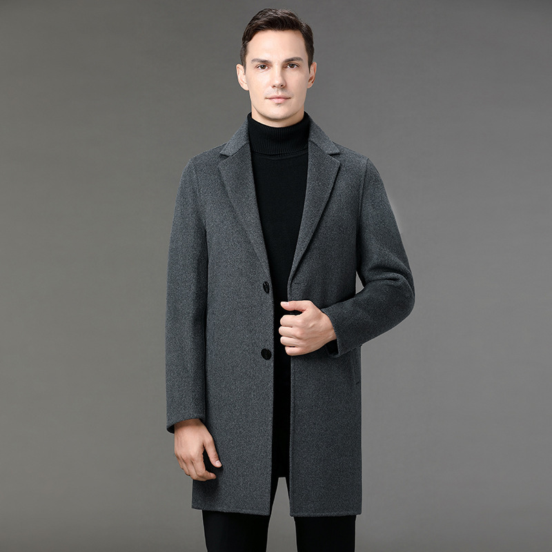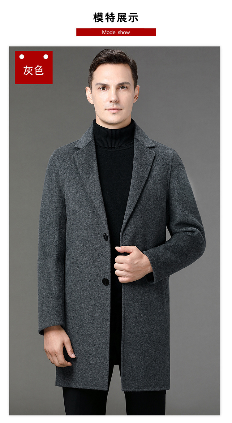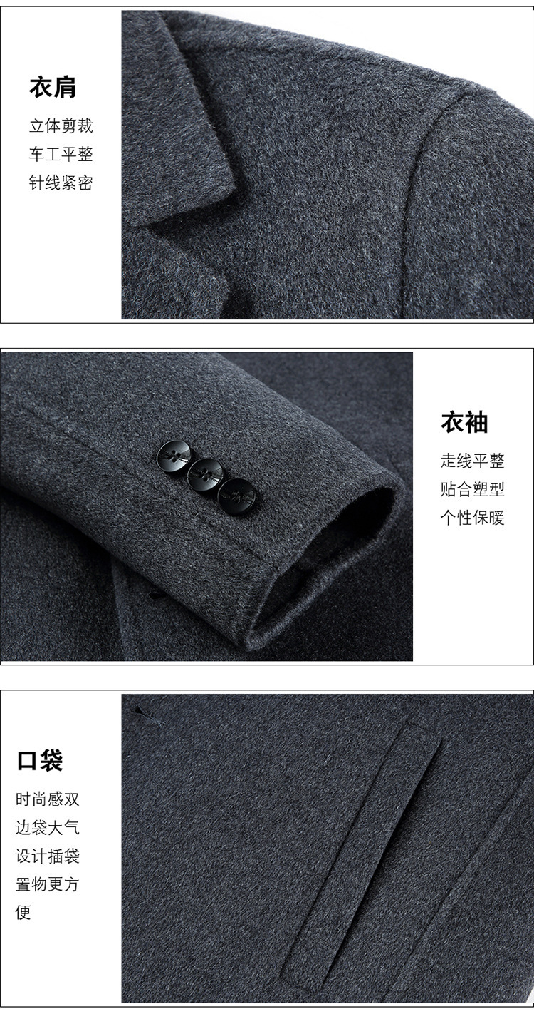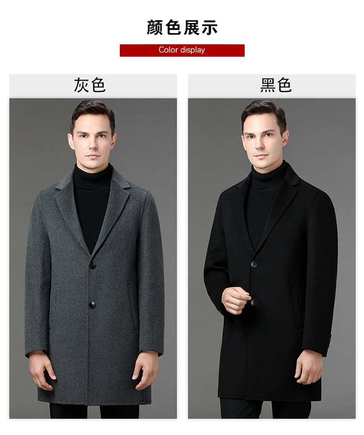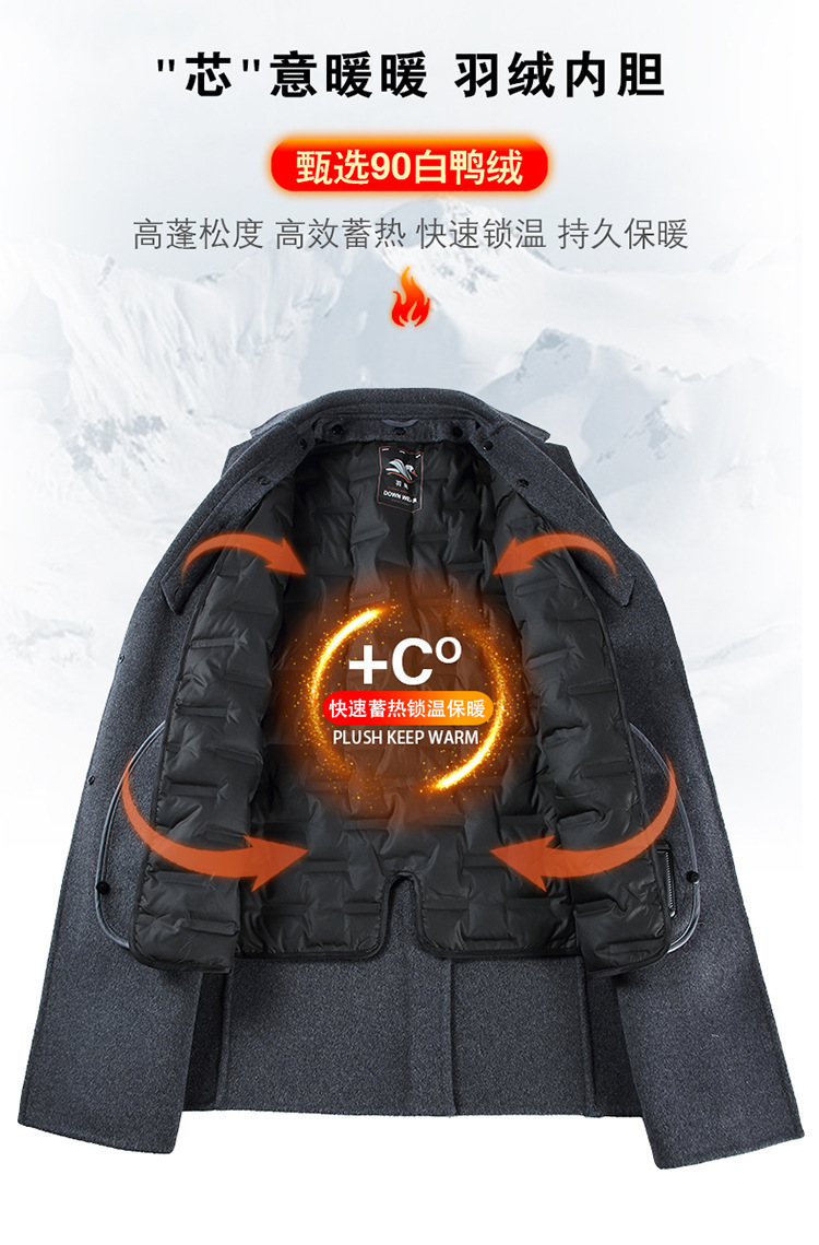 도매 양면 캐시미어 코트 남성용 가을 및 겨울 중간 길이 다운 재킷 라이너 칼라 탈착식 모직 윈드 브레이커 코트