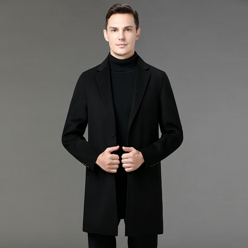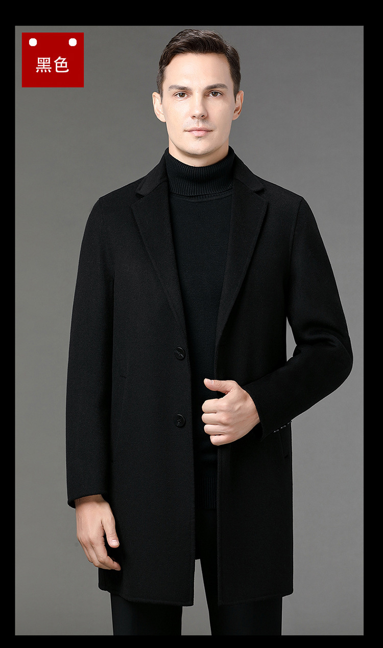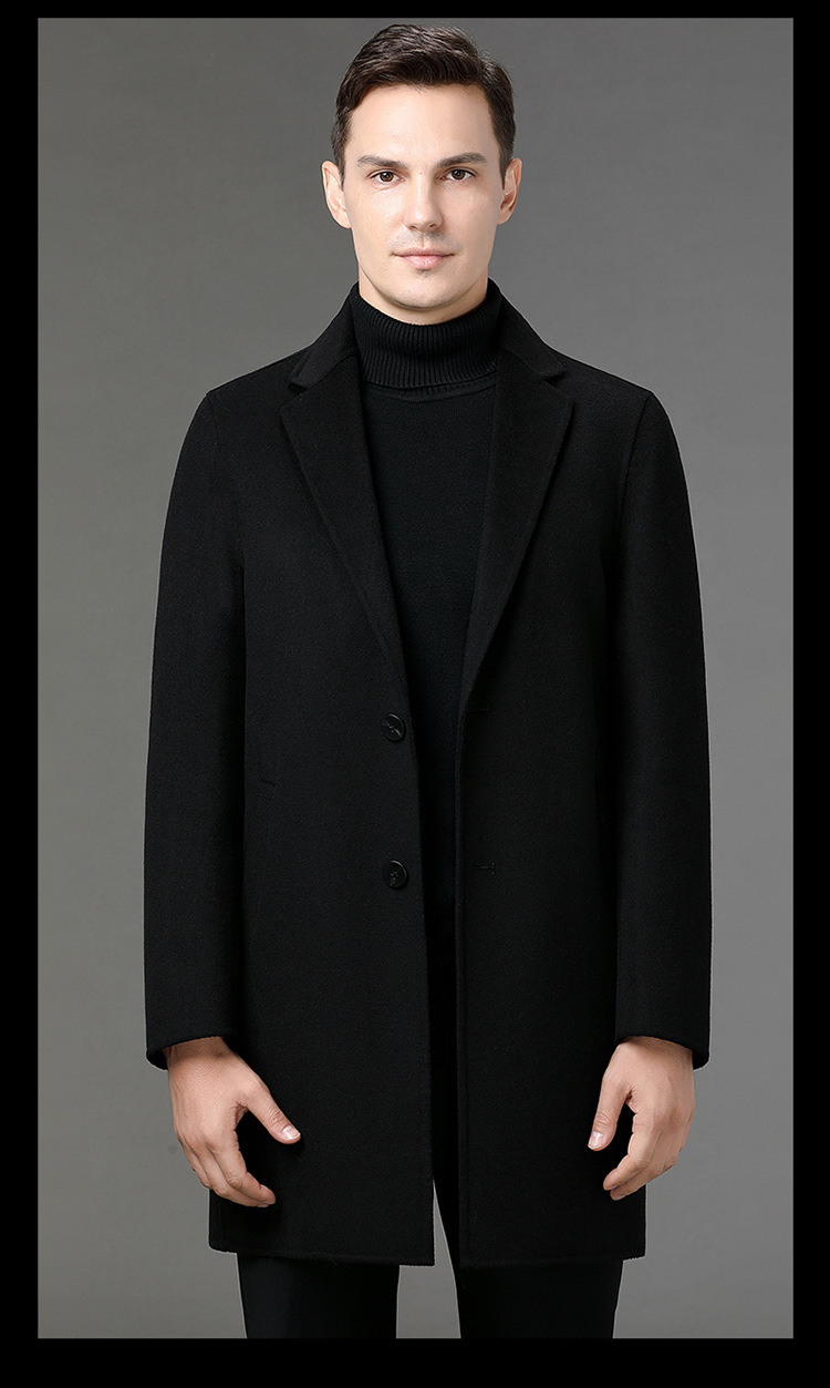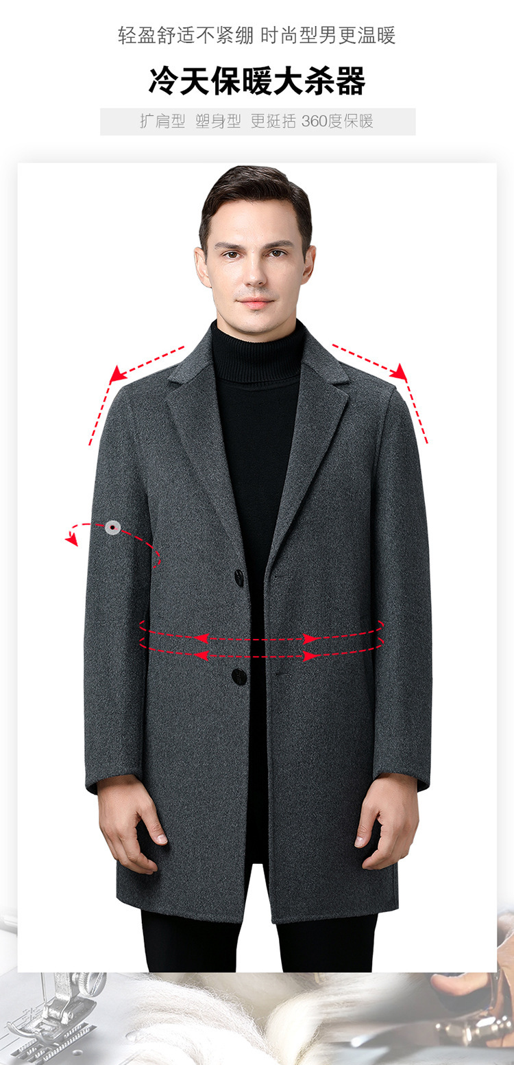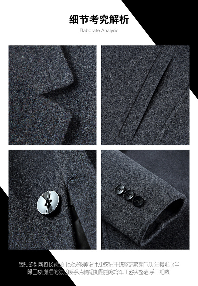 도매 양면 캐시미어 코트 남성용 가을 및 겨울 중간 길이 다운 재킷 라이너 칼라 탈착식 모직 윈드 브레이커 코트