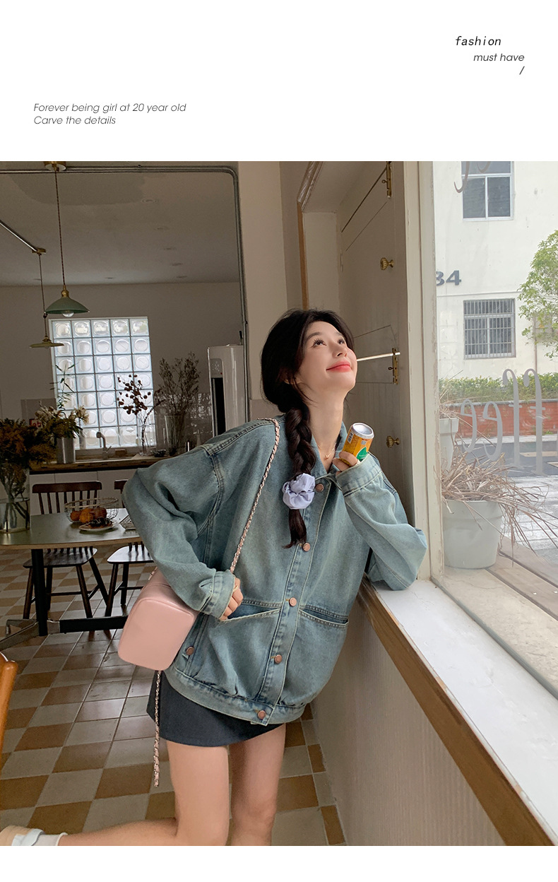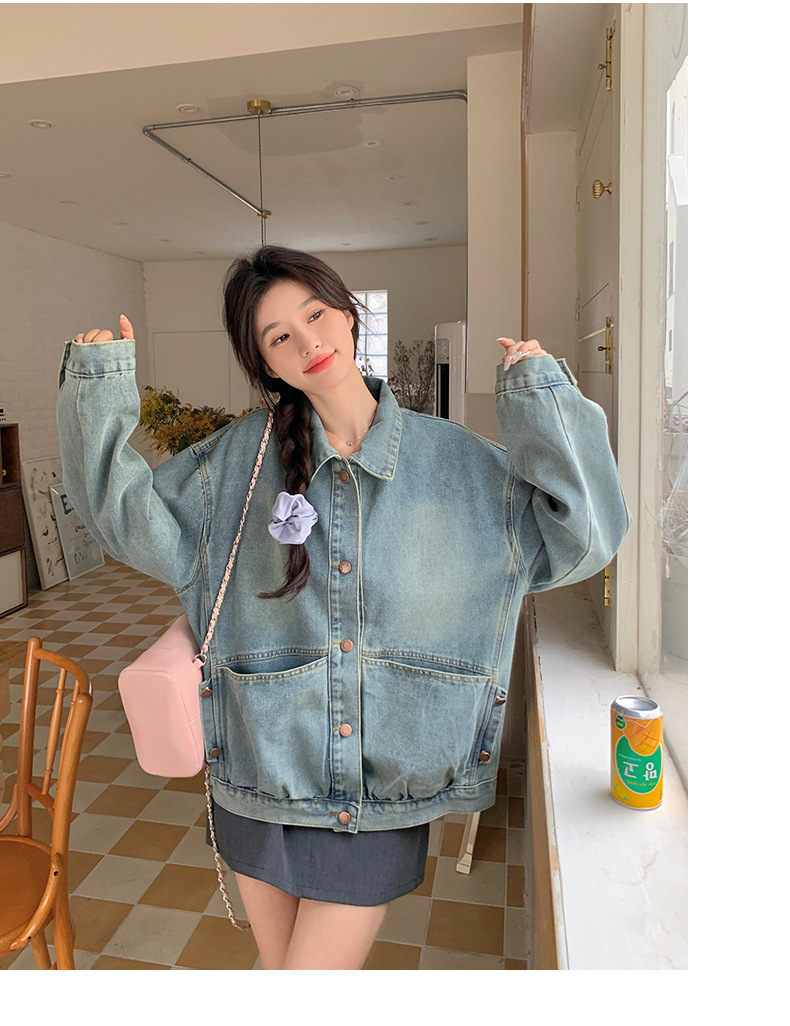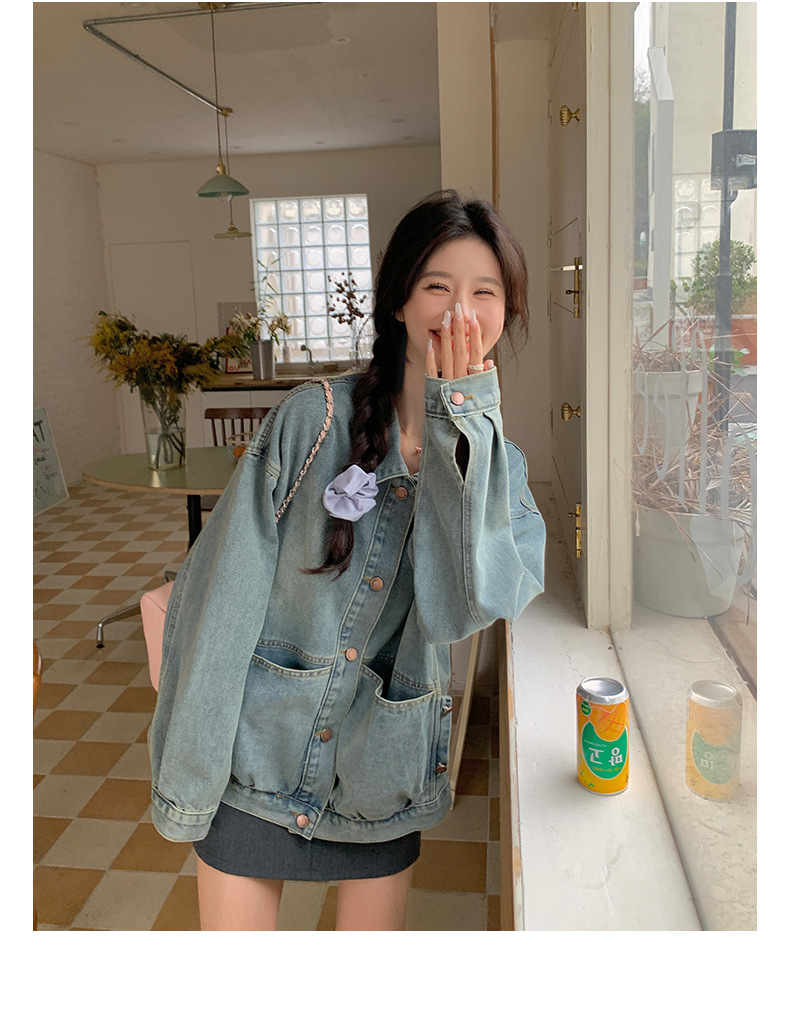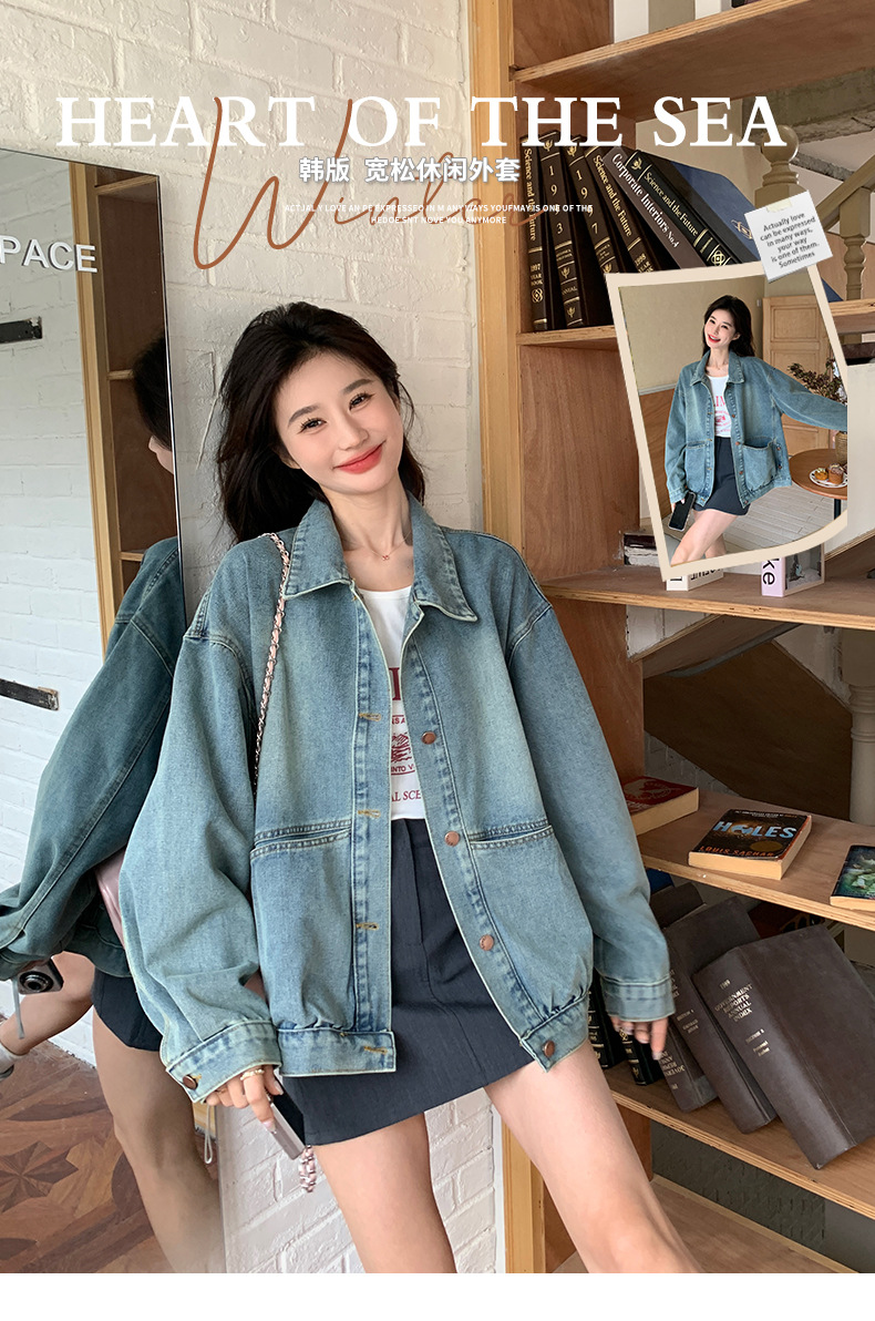 블루 레트로 데님 재킷 여자 2024 봄 새 한국 캐주얼 올 매치 BF 스타일 재킷 탑스토어 가기