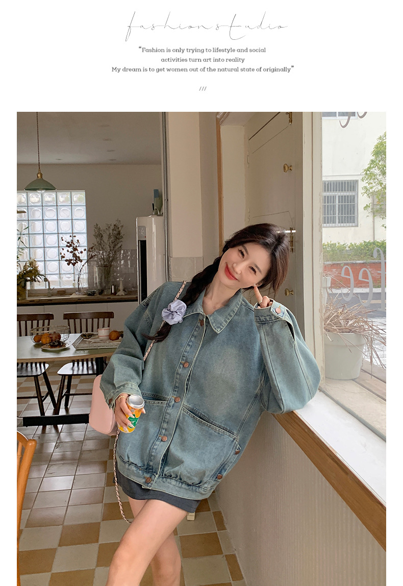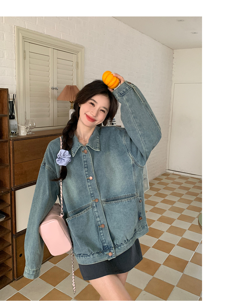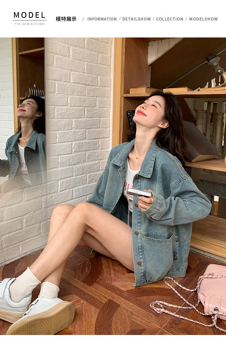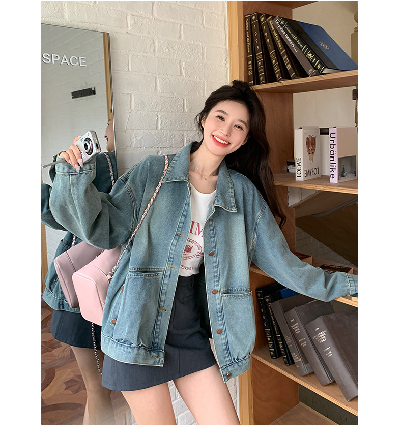 블루 레트로 데님 재킷 여자 2024 봄 새 한국 캐주얼 올 매치 BF 스타일 재킷 탑스토어 가기