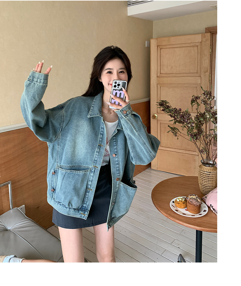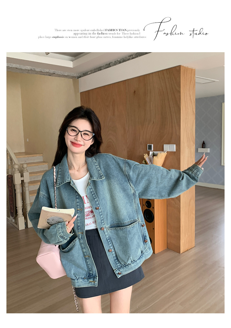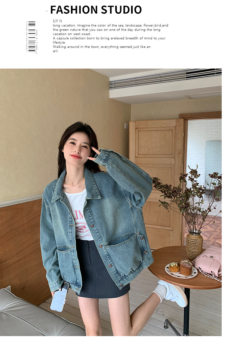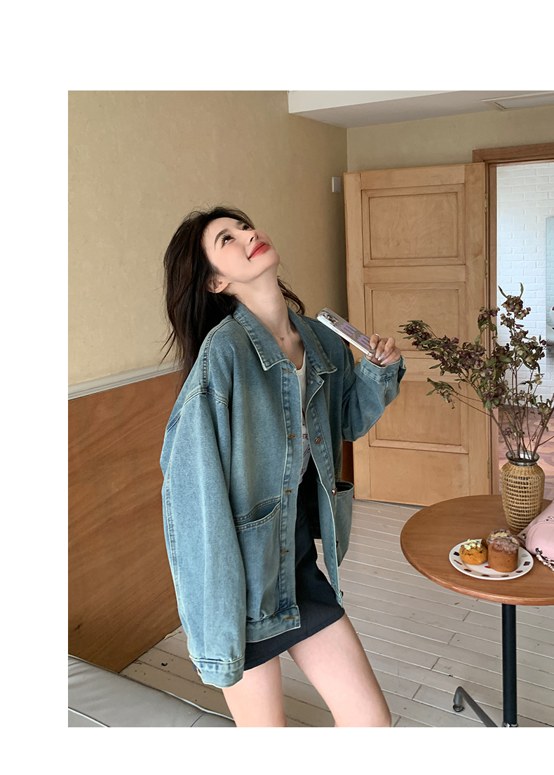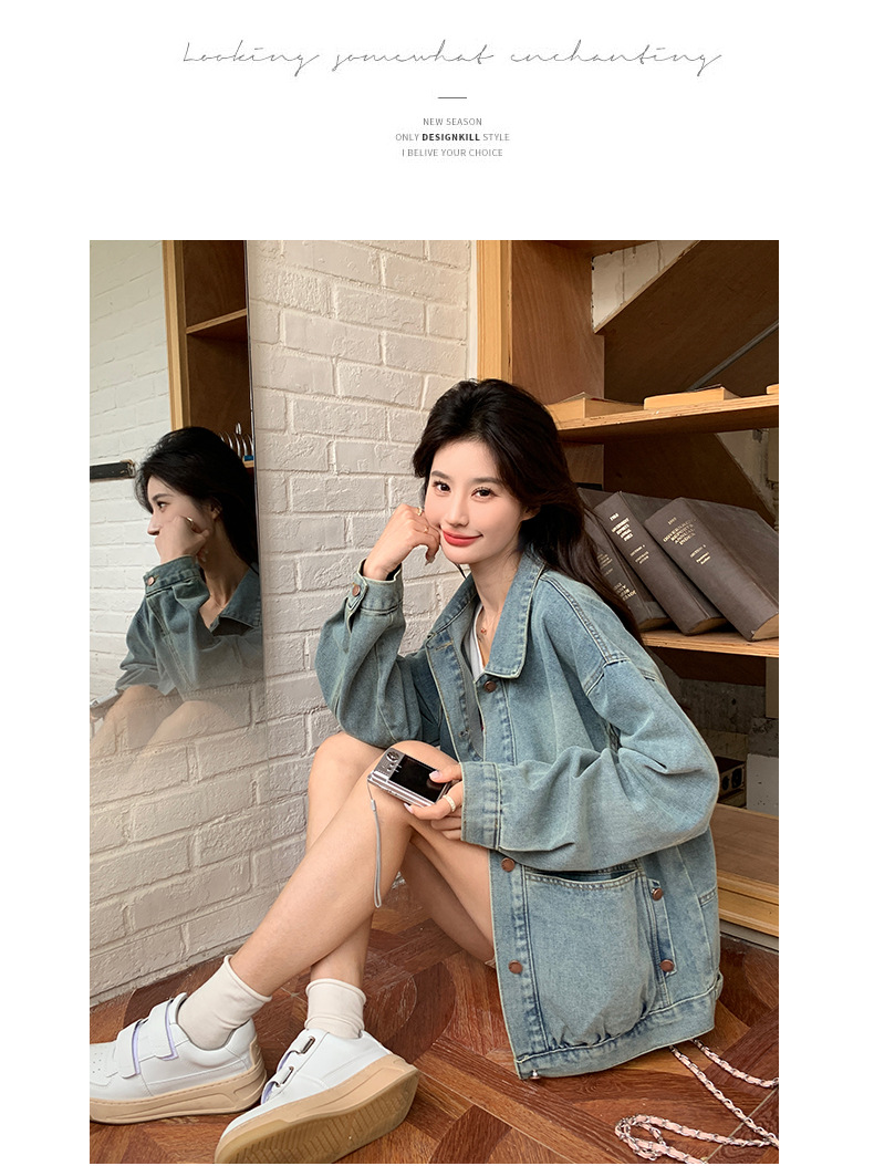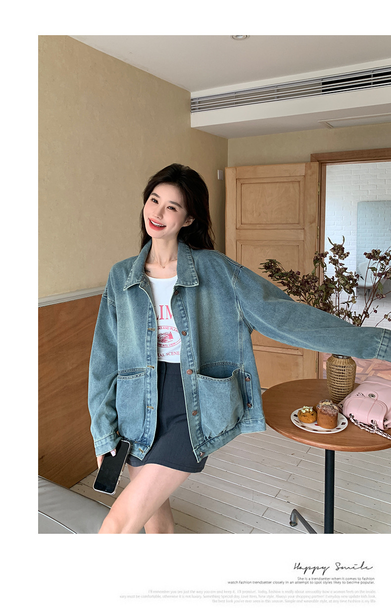 블루 레트로 데님 재킷 여자 2024 봄 새 한국 캐주얼 올 매치 BF 스타일 재킷 탑