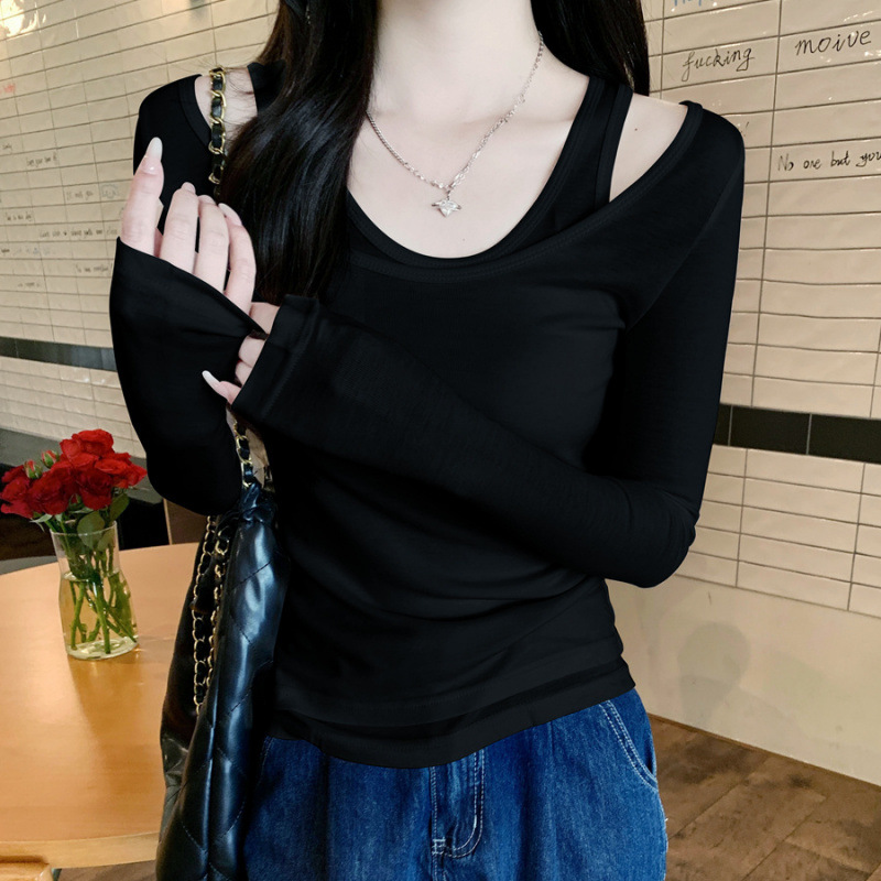 순수한 욕망 스타일 짧은 마이크로 투명 가짜 투피스 셔츠 여성의 2024 여름 한국식 스트레치 슬림 얇은 선 스크린 탑