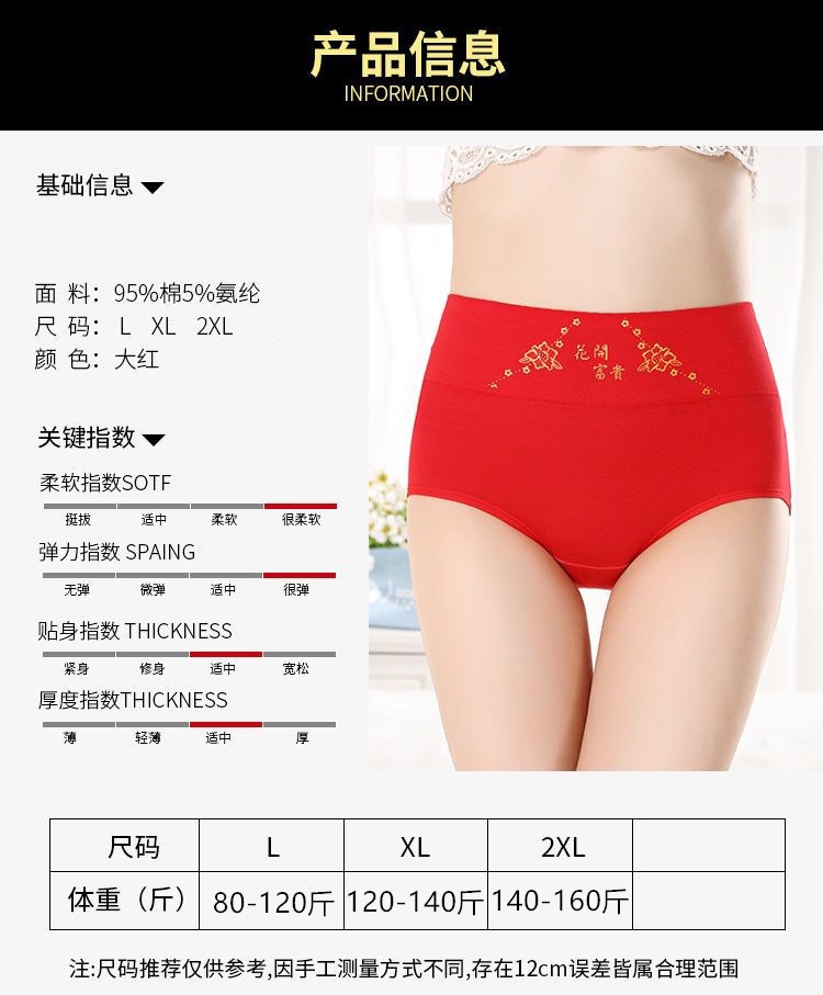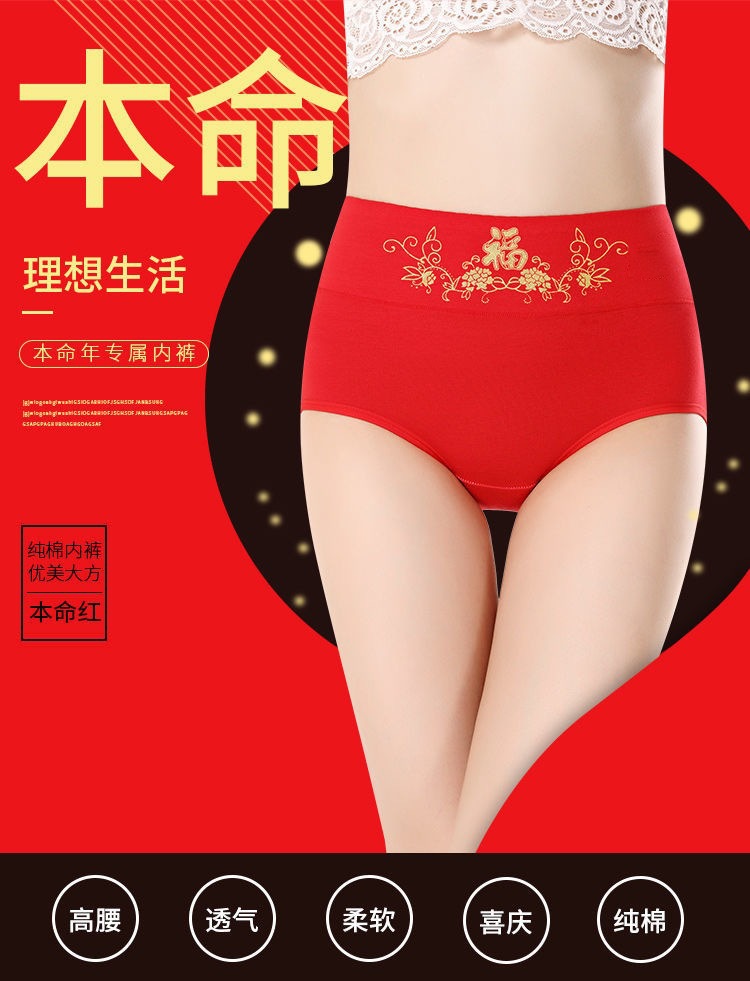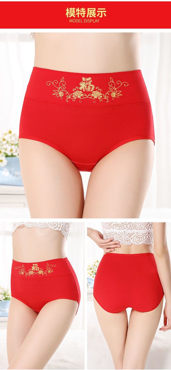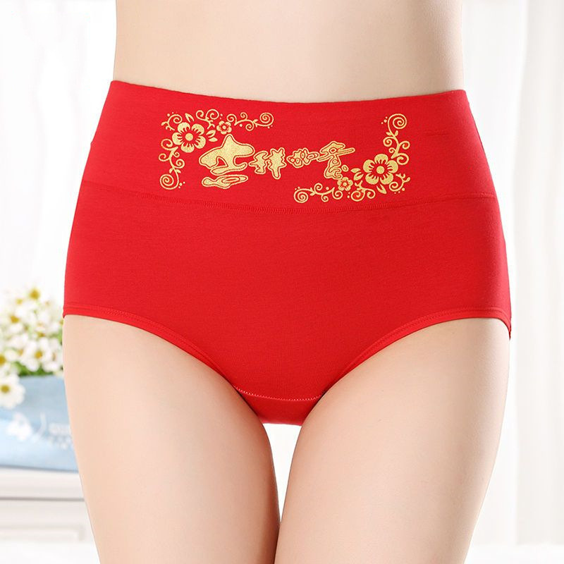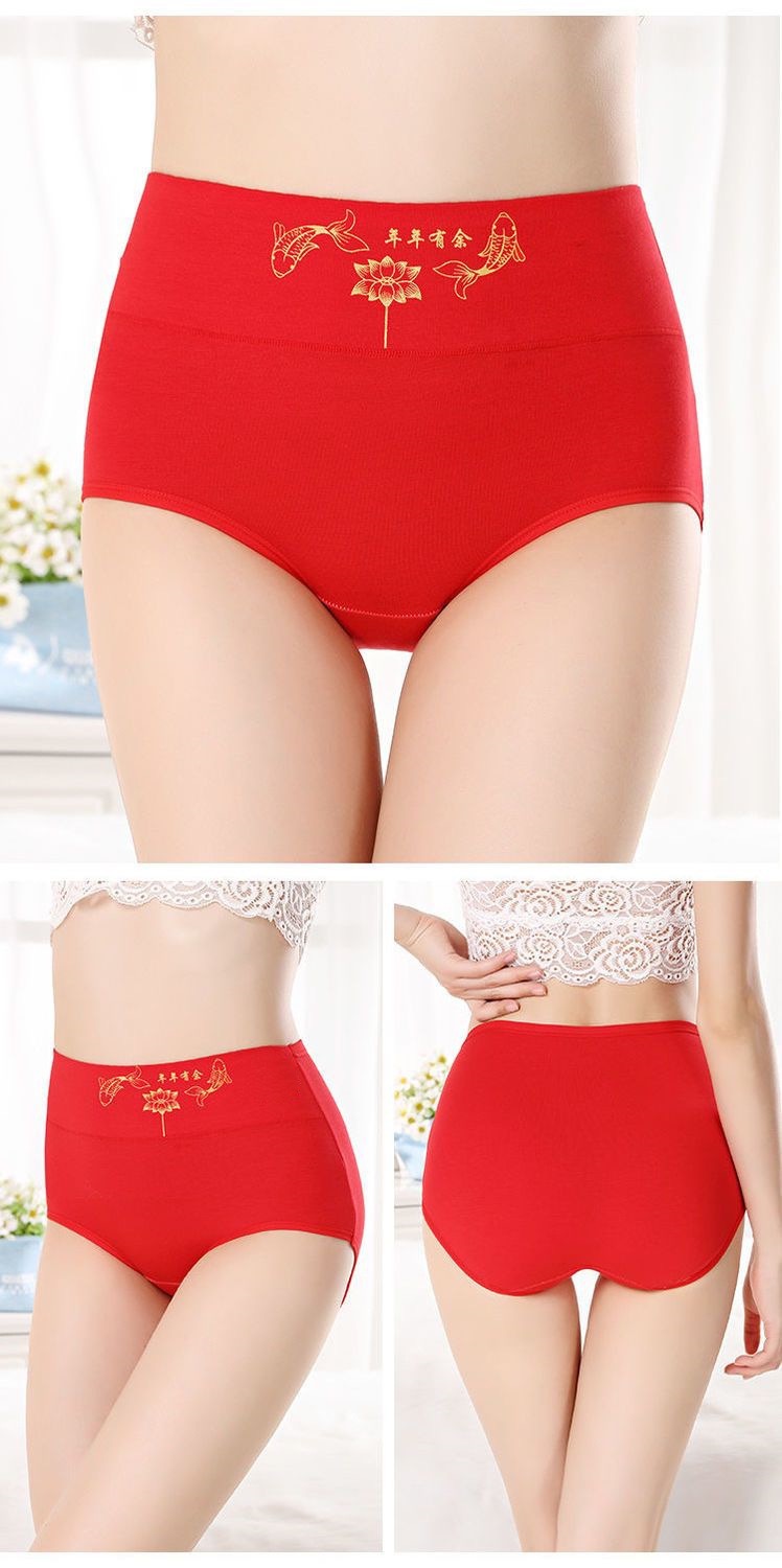브닝 니언 레드 속옷 여성의 순수한면 항균 높은 허리 복부 팔 편안한 통기성 면화 여성용 브리프스토어 가기
