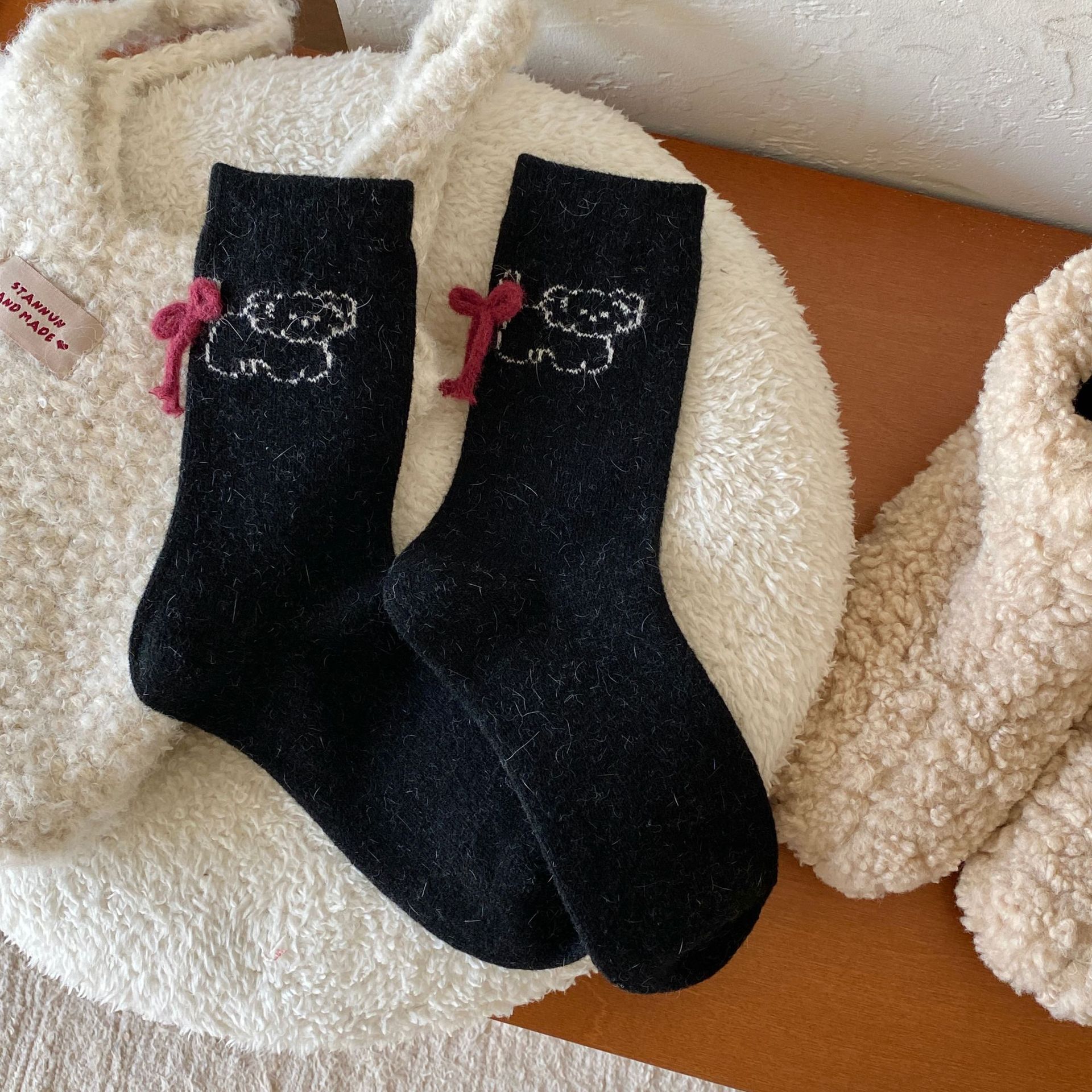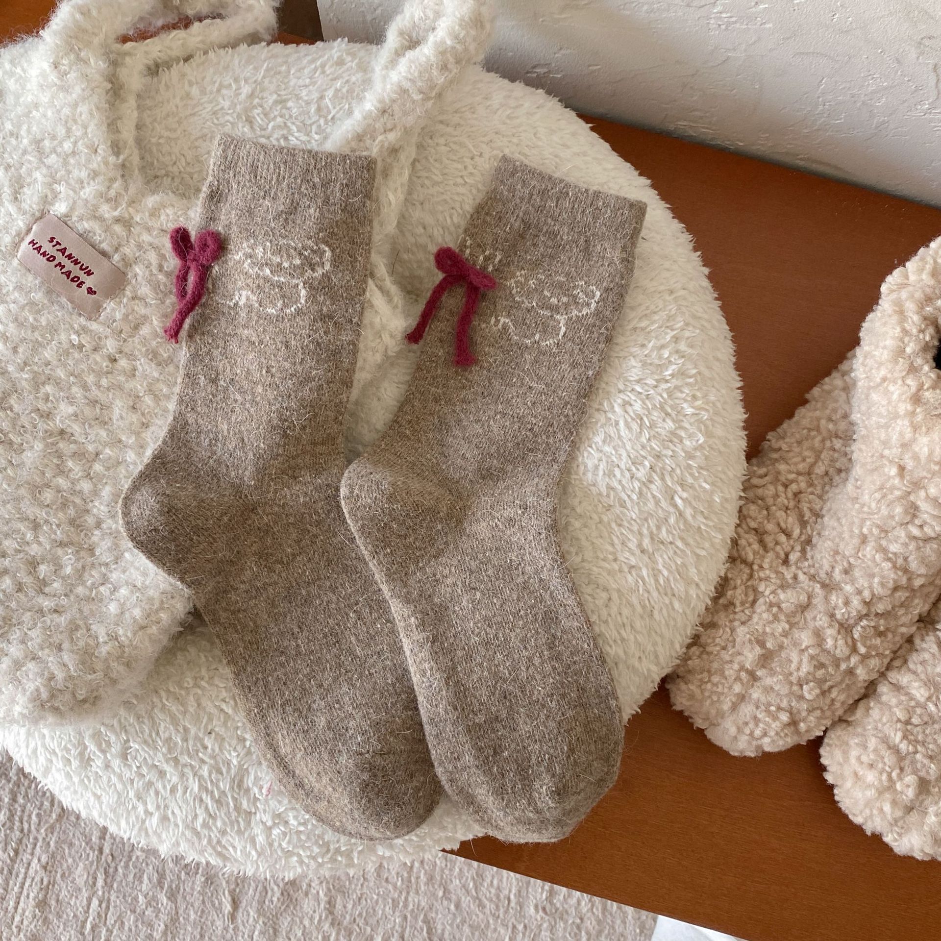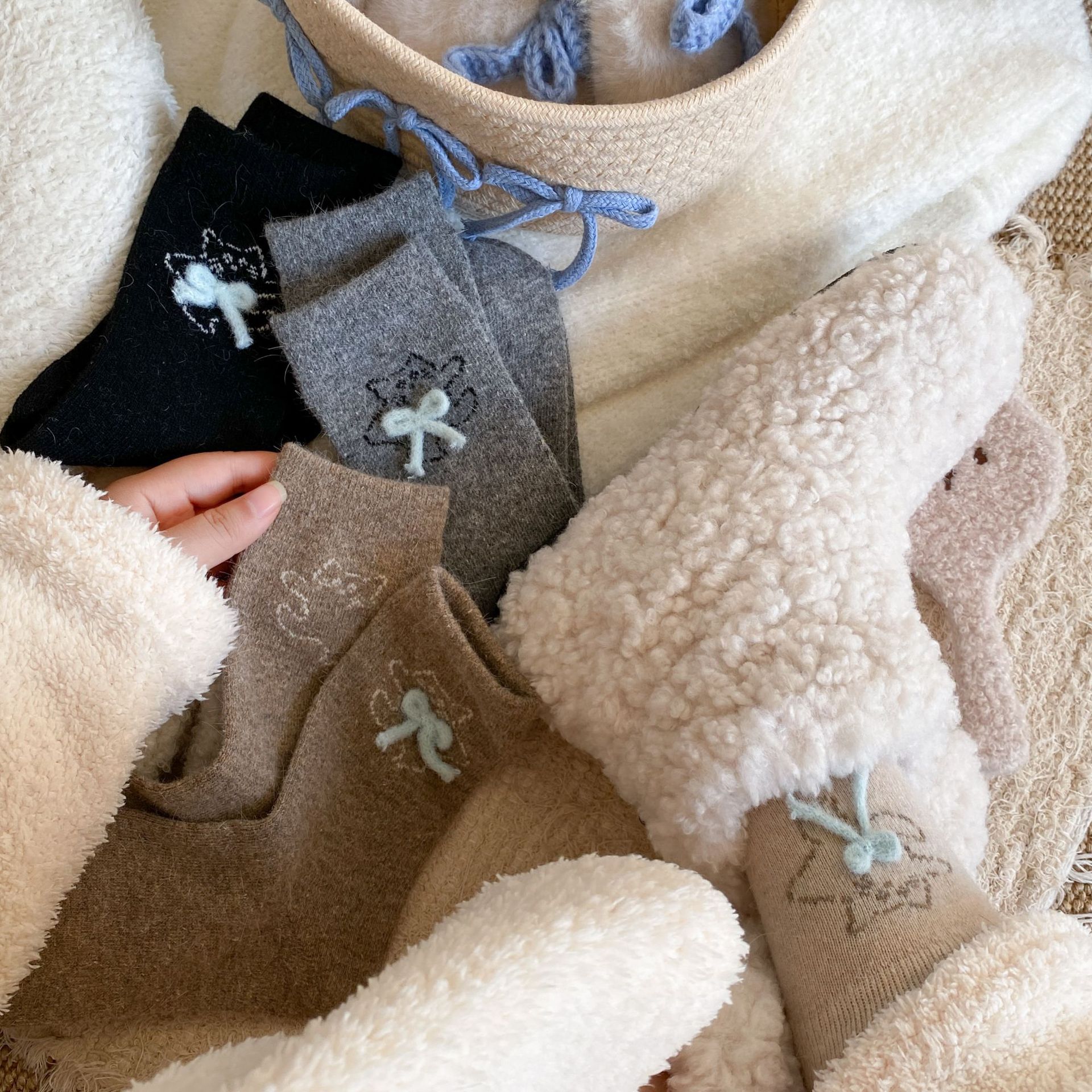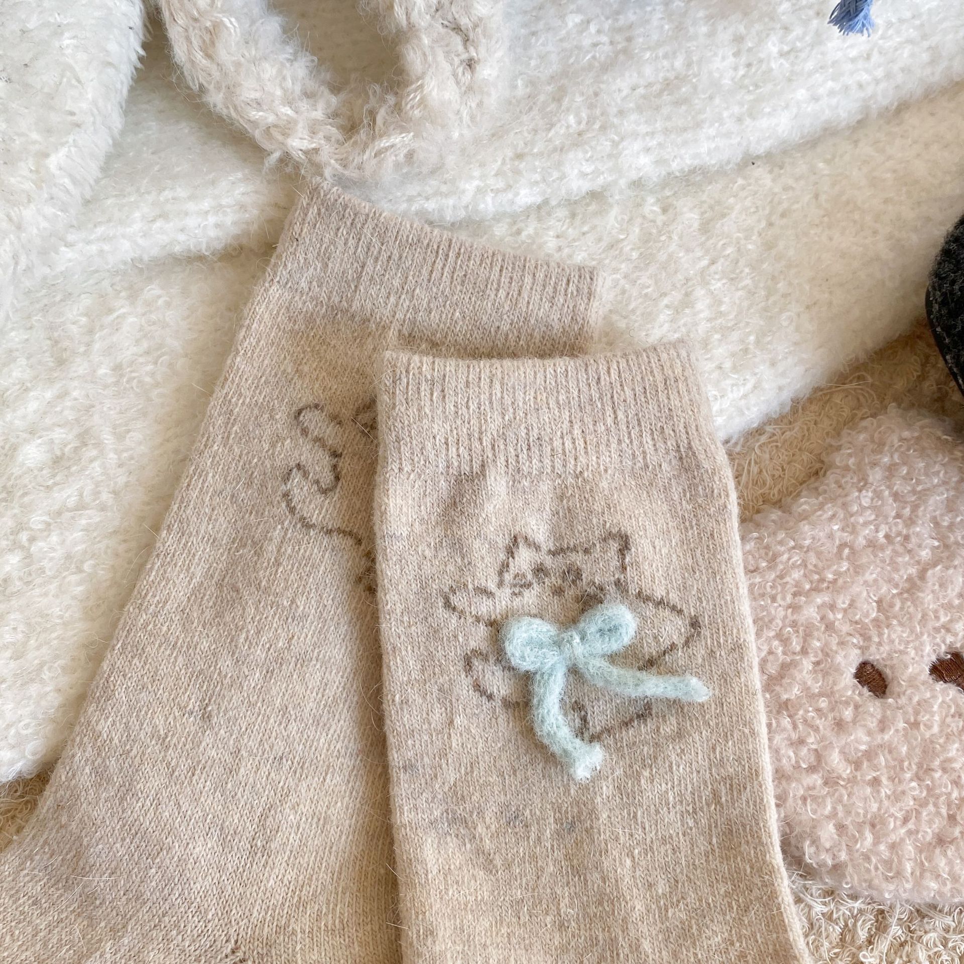 Bowknot 개 고양이 양말 여성 양말 토끼 모피 가을과 겨울 두꺼운 기모 따뜻한 겨울 스타킹 양말