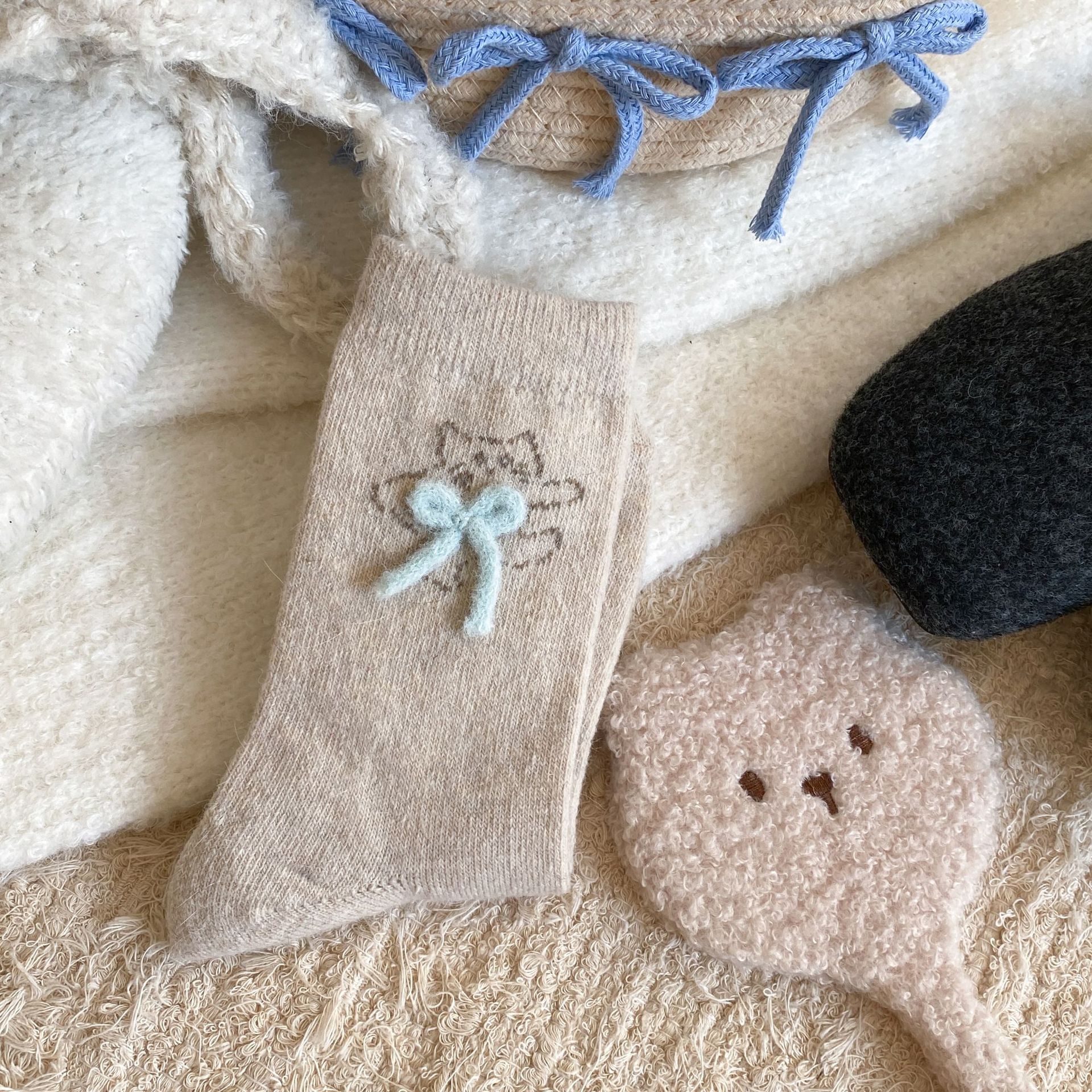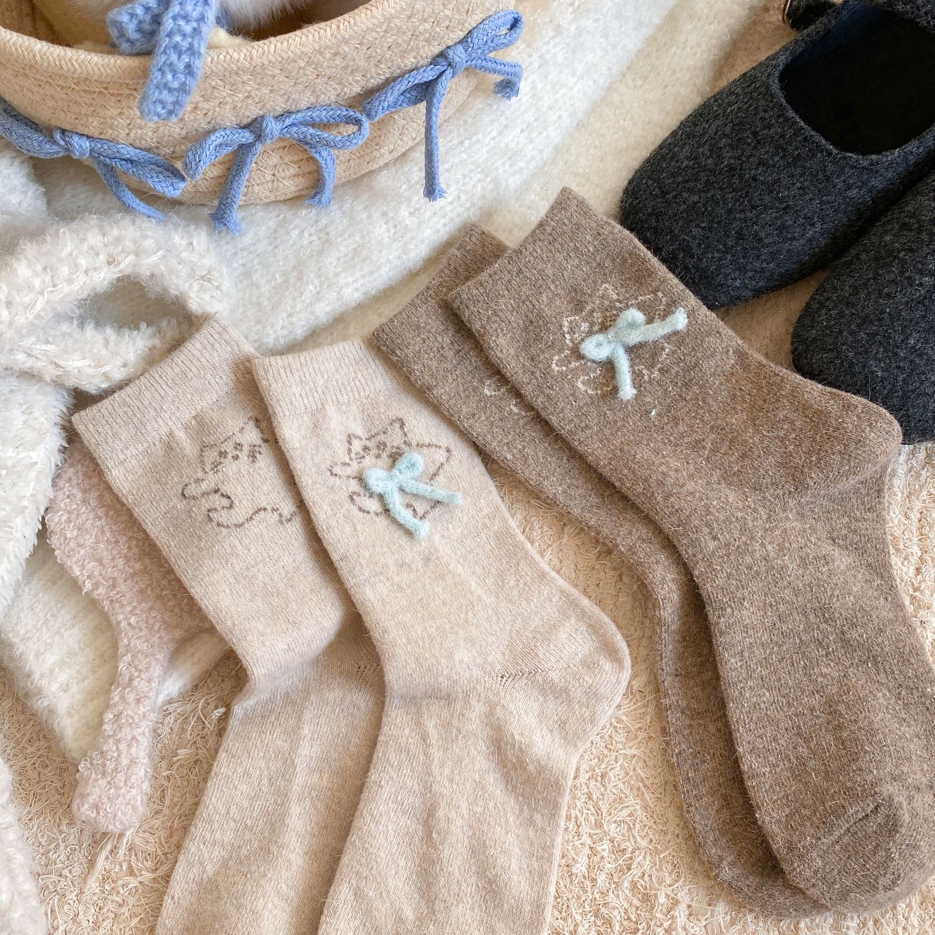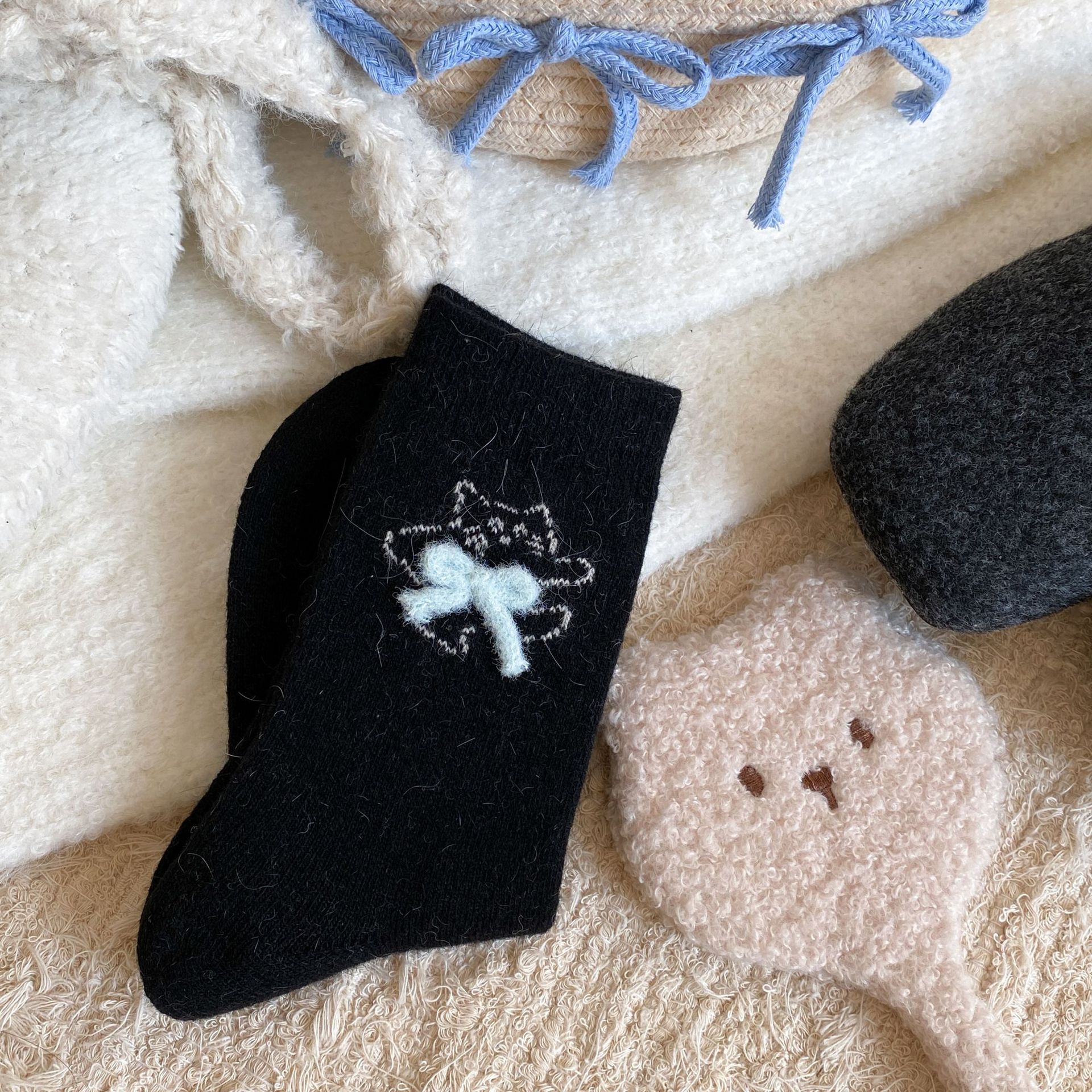 Bowknot 개 고양이 양말 여성 양말 토끼 모피 가을과 겨울 두꺼운 기모 따뜻한 겨울 스타킹 양말