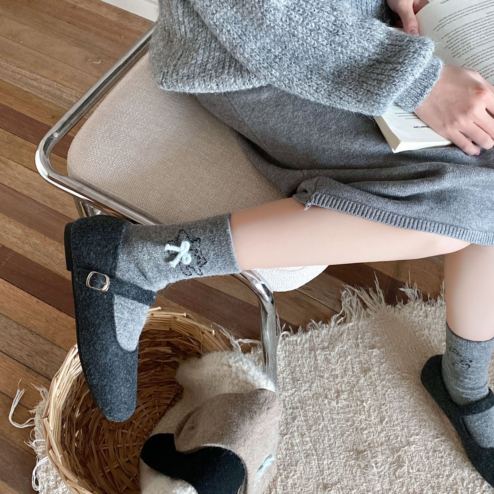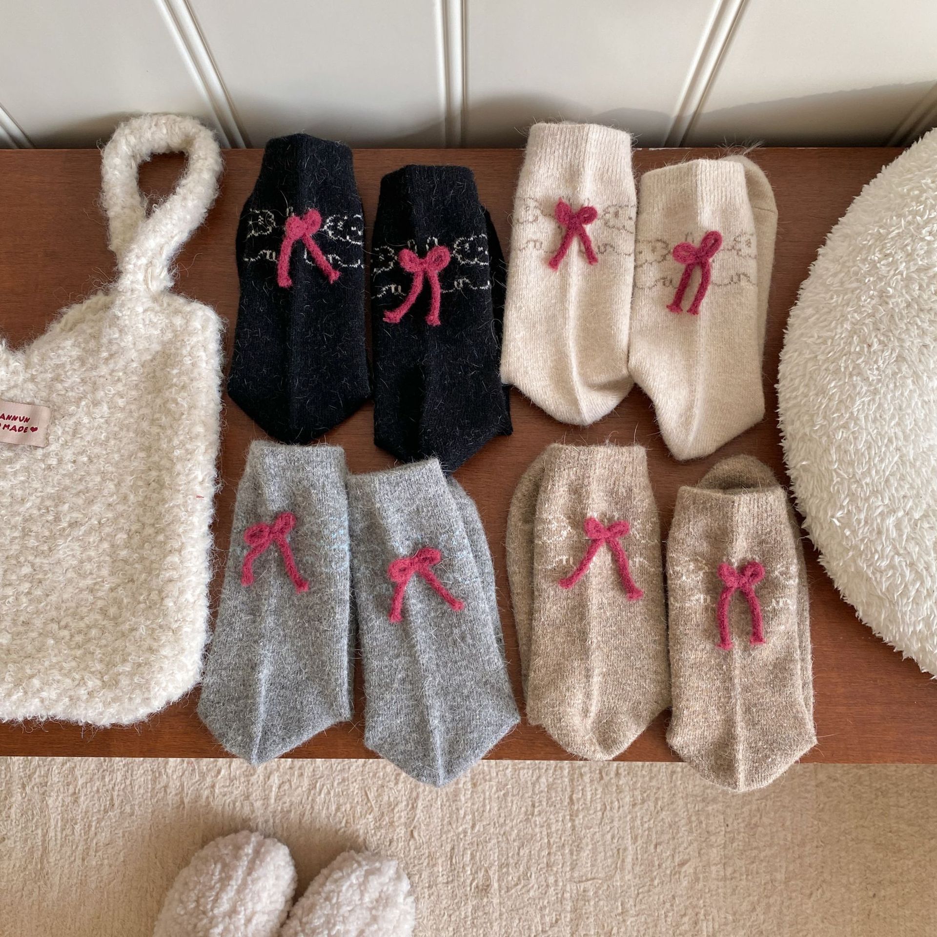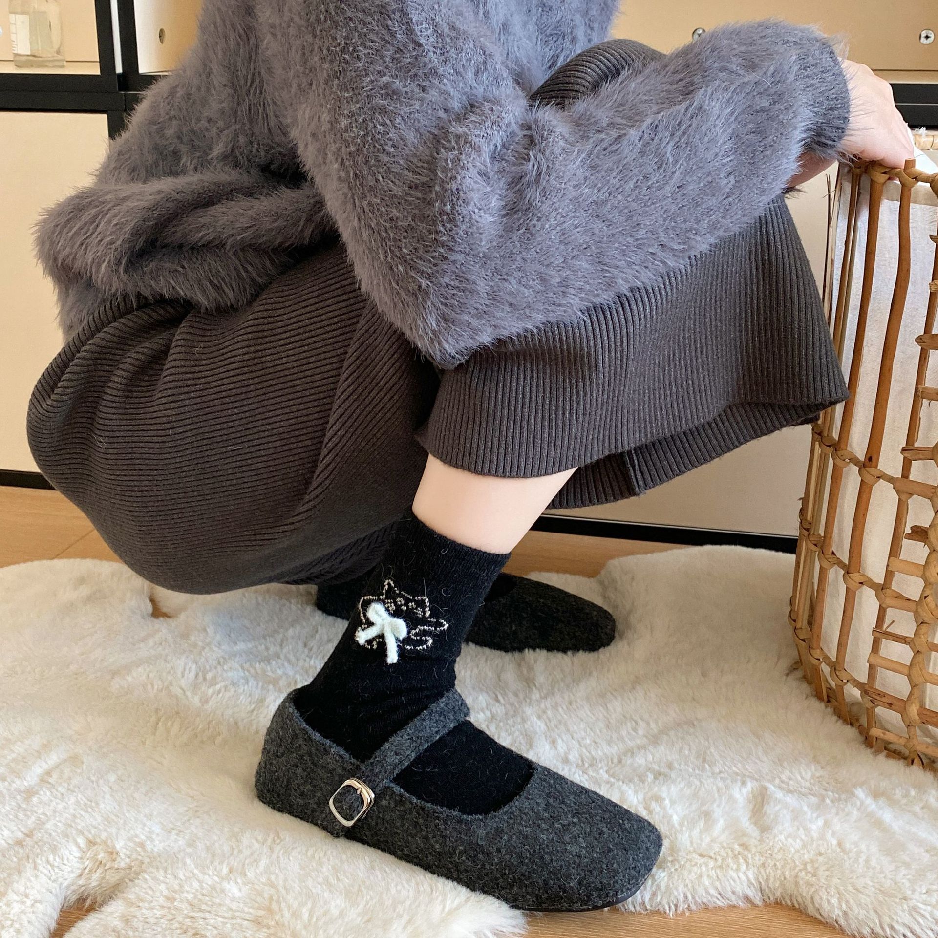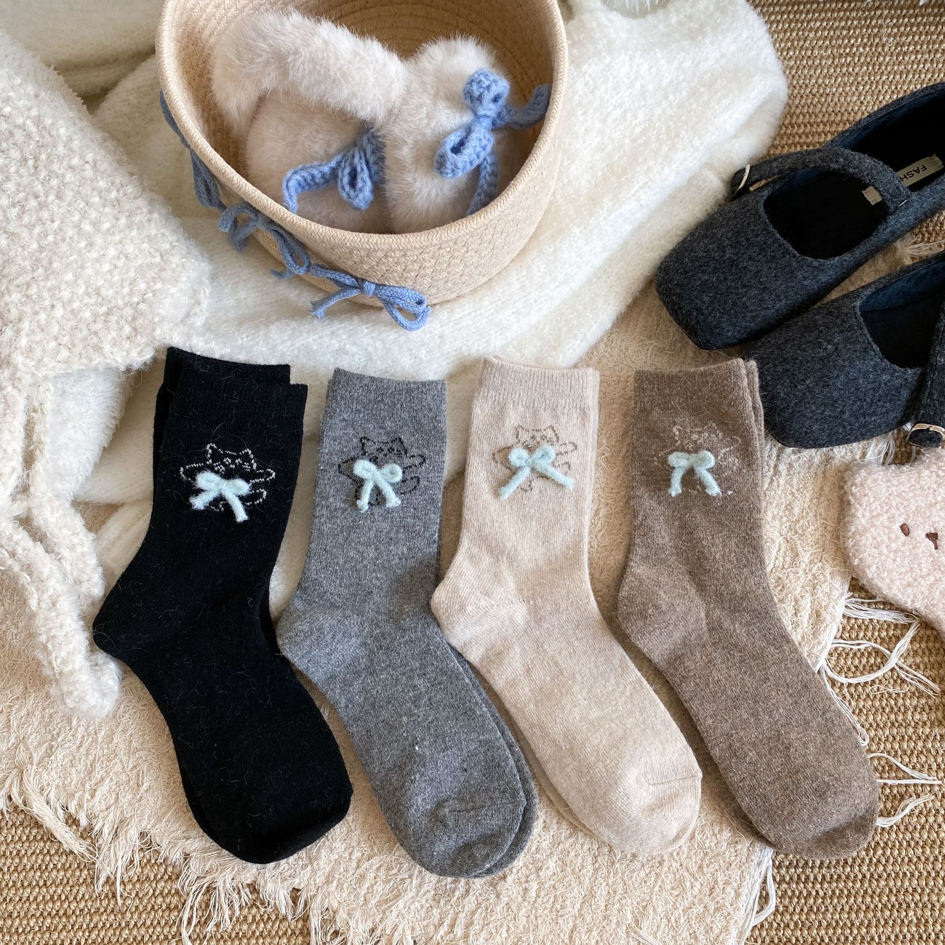 Bowknot 개 고양이 양말 여성 양말 토끼 모피 가을과 겨울 두꺼운 기모 따뜻한 겨울 스타킹 양말