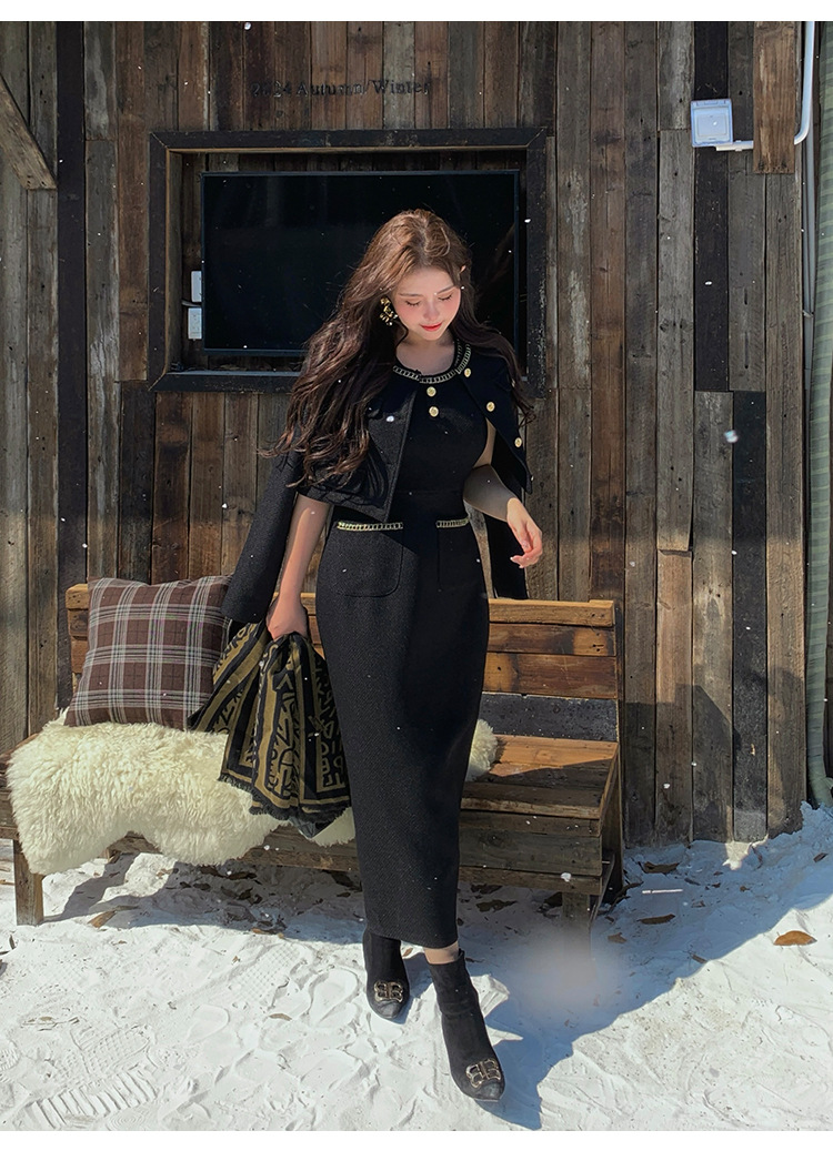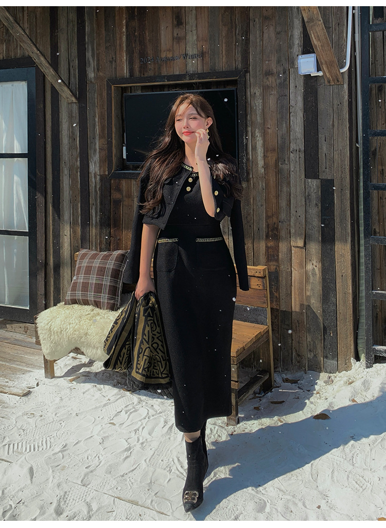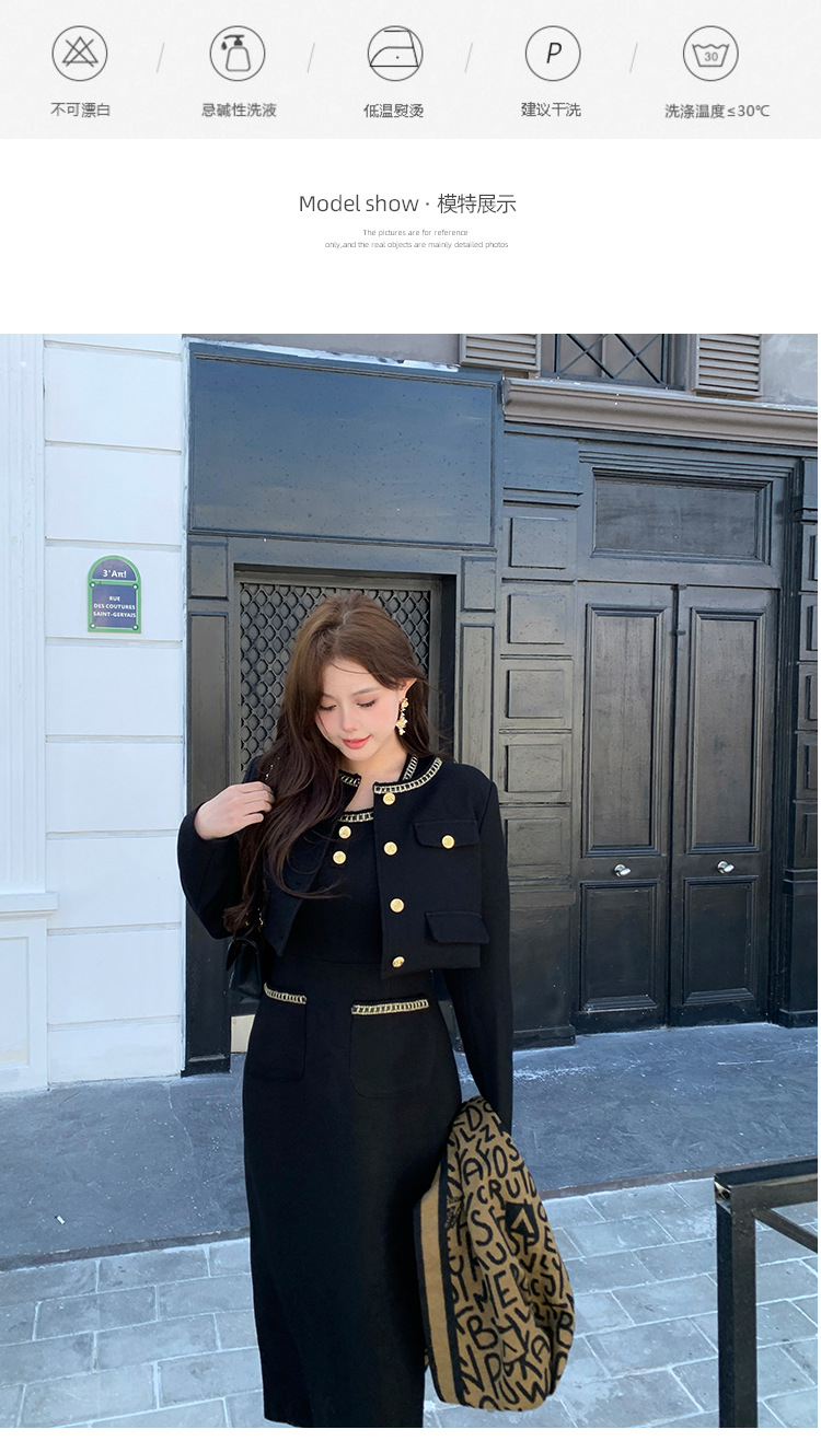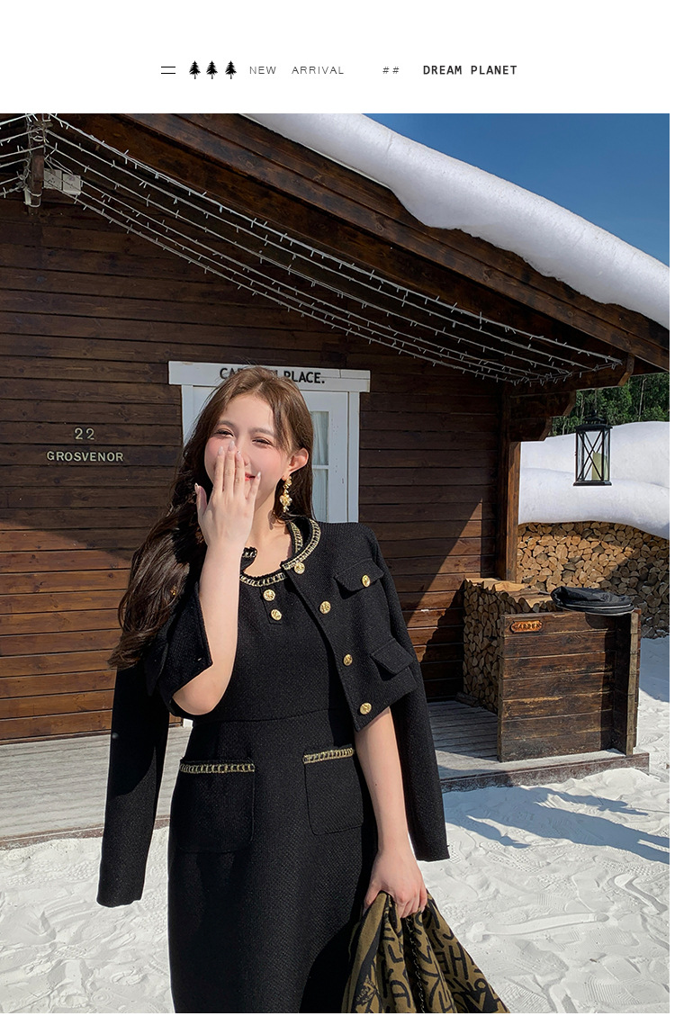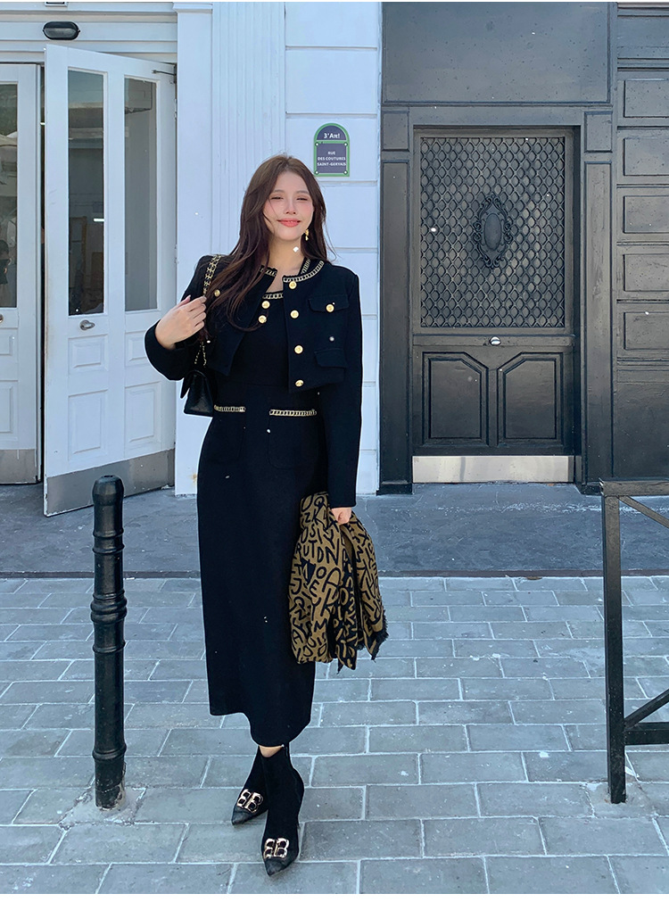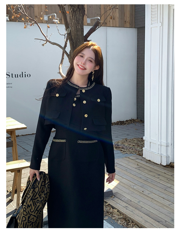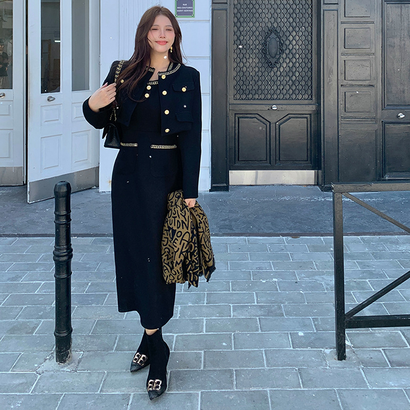플러스 사이즈 여자 고급 통통녀 프랑스 레트로 블랙 샤넬 세트 뉴 트위드 2 피스 1986